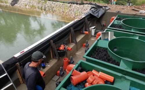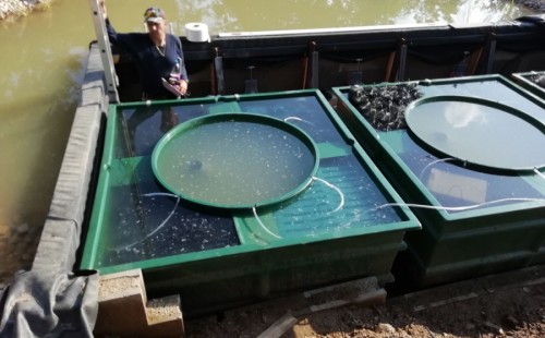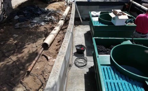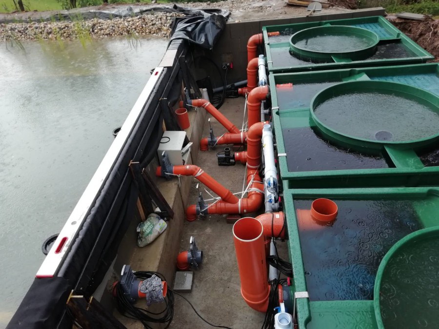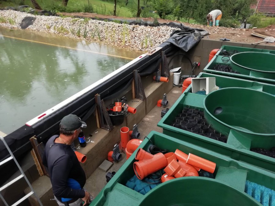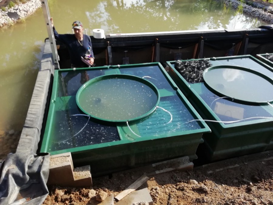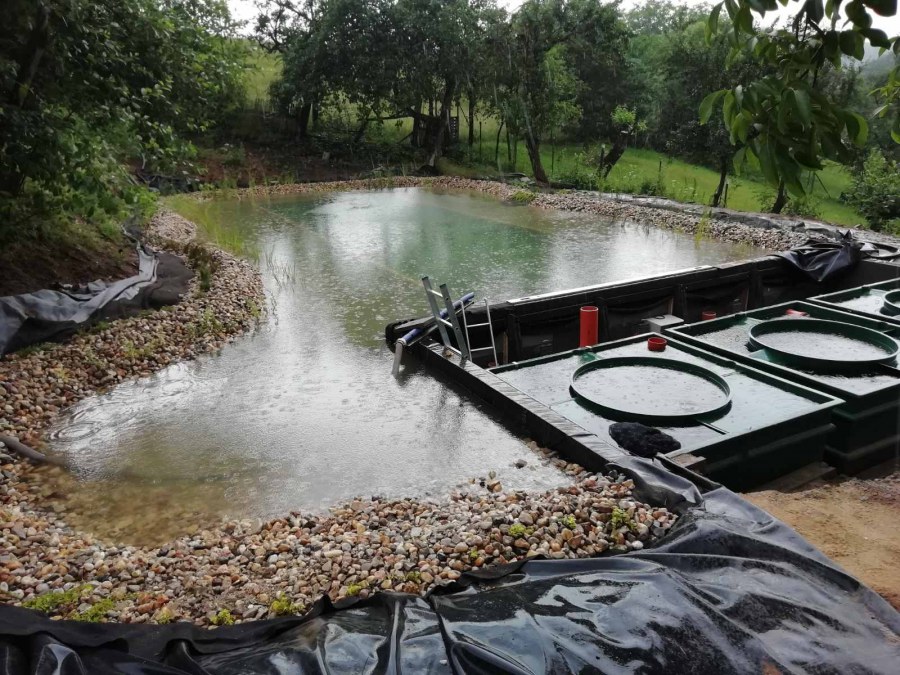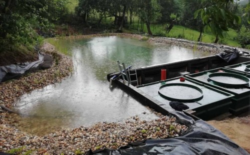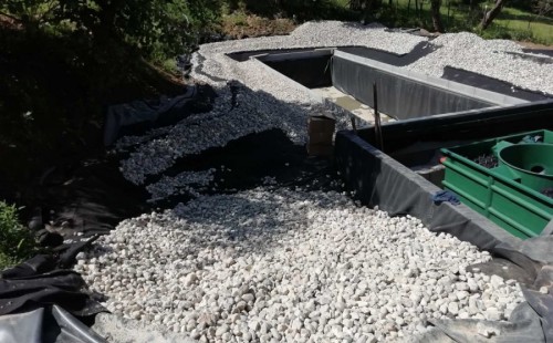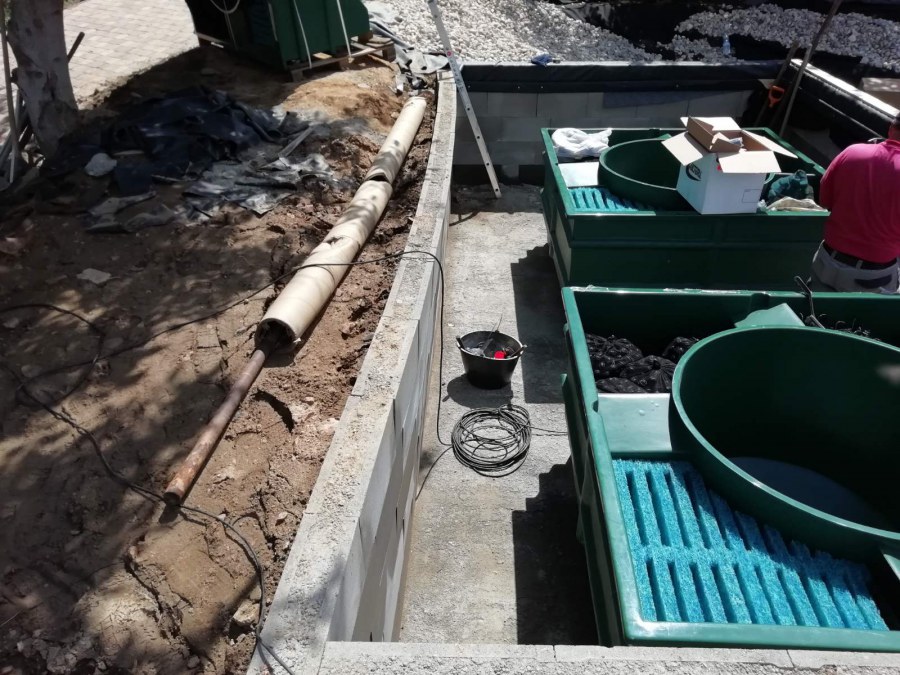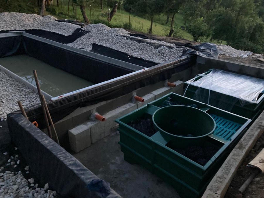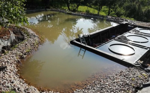 V průběhu léta jsme byli požádáni o dodání technologie k tomuto koupacímu jezírku. Po zjištění obsahu jezírka a požadavku opravdu čisté vody pro koupání jsme doporučili 3 biologicko/mechanické filtry Tripond Vortex C 115. Klient vystavil u jezírka technickou místnost dle doporučených rozměrů, tu jsme navrhli dostatečně velkou, tak aby se tam vešlo veškeré příslušenství k zapojení filtrů. Ke každému z těchto filtrů se napojila UV lampa TMC ProClear 110W a čerpadlo Oase AquaMax Gravity 20000, které vrací vodu zpět do jezírka. Vzduchování do filtrů jsme zvolili AquaForte V-60.