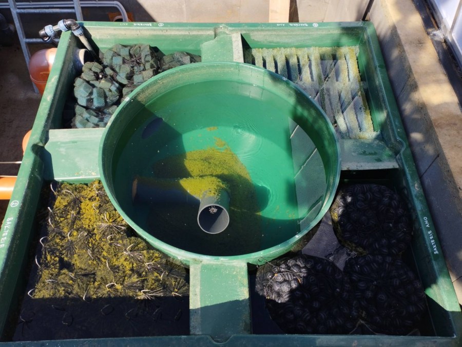 Aktualizace: po velmi dlouhém a tropickém létě jsme do filtru přidali ponorné UV lampy XClear 75W, které pomohou i do budoucna udržet vodu křišťálově čistou a bez sinic.