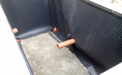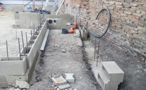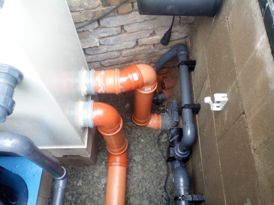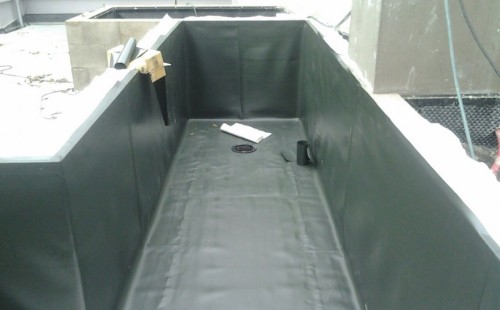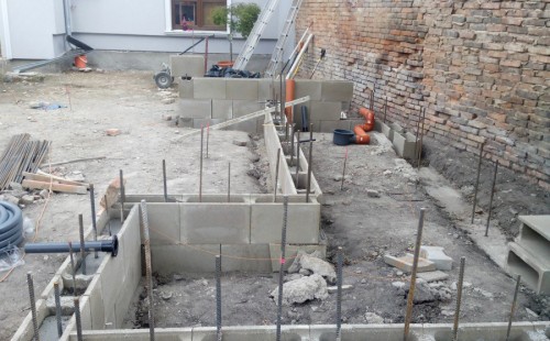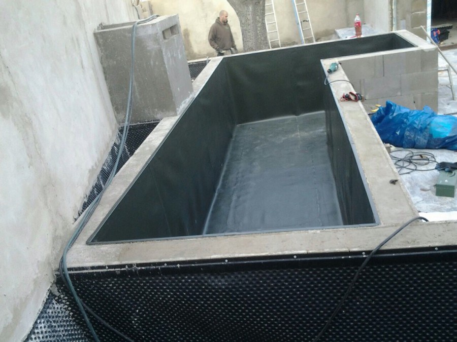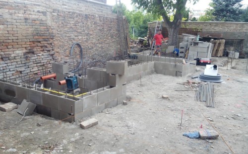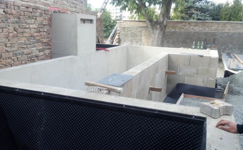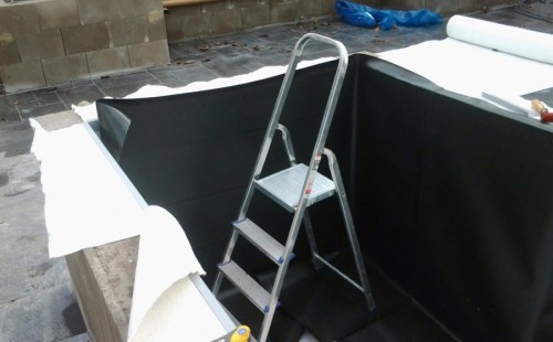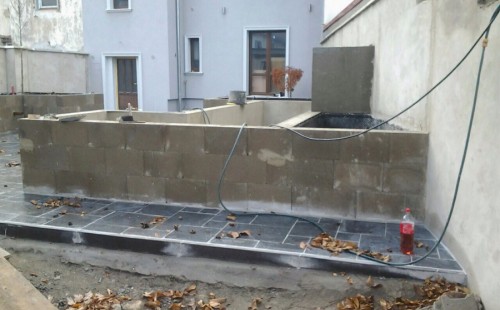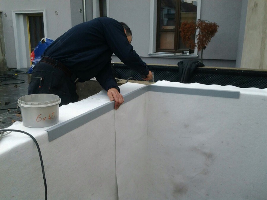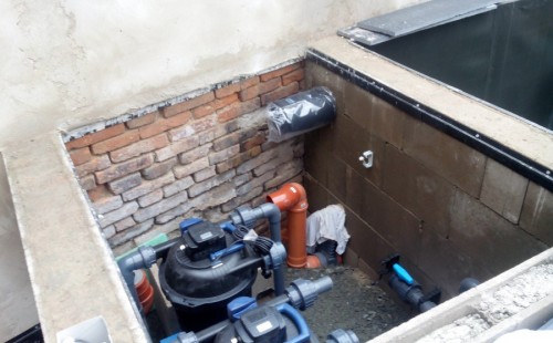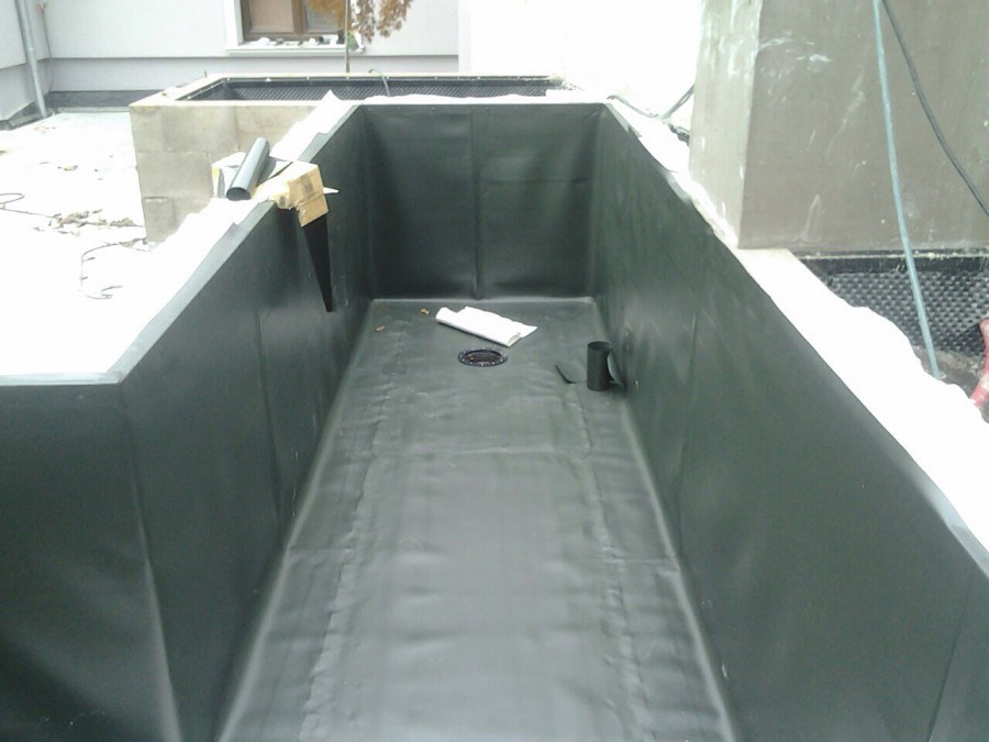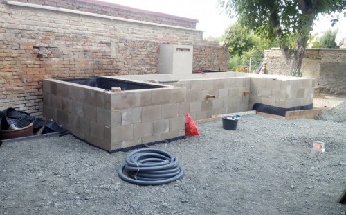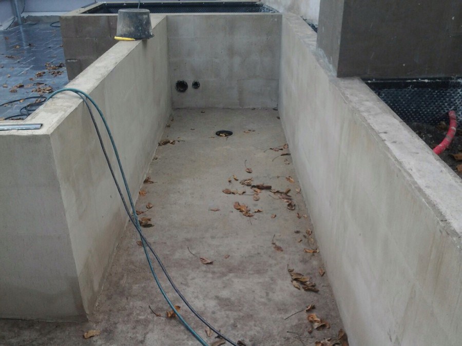 Tato realizace probíhala v Lounech a šlo o položení technologie, vyfóliování a dodávku technologie do okrasného vodního prvku na dvorku řadového domu. Při výstavbě této moderní stavby byla položena technologie (KG potrubí, gula dnová a fóliové příruby pro skimmer Oase AquaSkim Gravity), dále pak proběhla dostavba tohoto okrasného prvku. Poté byla natažena geotextílie 500g a osadily se speciální lišty k připevnění fólie Aquaplast 805 1,5mm. Na přání zákazníka byl navržen nerezový chrlič Oase Waterfall 60 včetně osvětlení Oase Waterfall Illumination 60. Po vyfóliování se začala zapojovat v technické místnosti technologie. Pro tento systém bylo navrženo: 2x filtr Oase Filtoclear 30000, čerpadlo pro systém Aquaking ECO-FTP 3200, čerpadlo pro efekt vodopádu Aquaking ECO-FTP 13000, obě čerpadla jsou uložena v čerpadlové šachtě vyrobené na míru. Efekt a světla budou ovládána dálkovým ovladačem Oase Inscenio Profi-Master.
