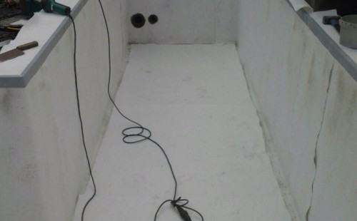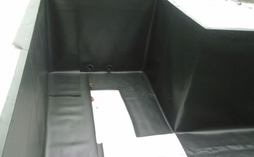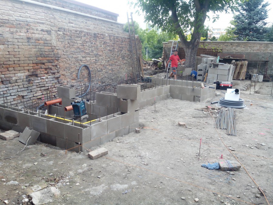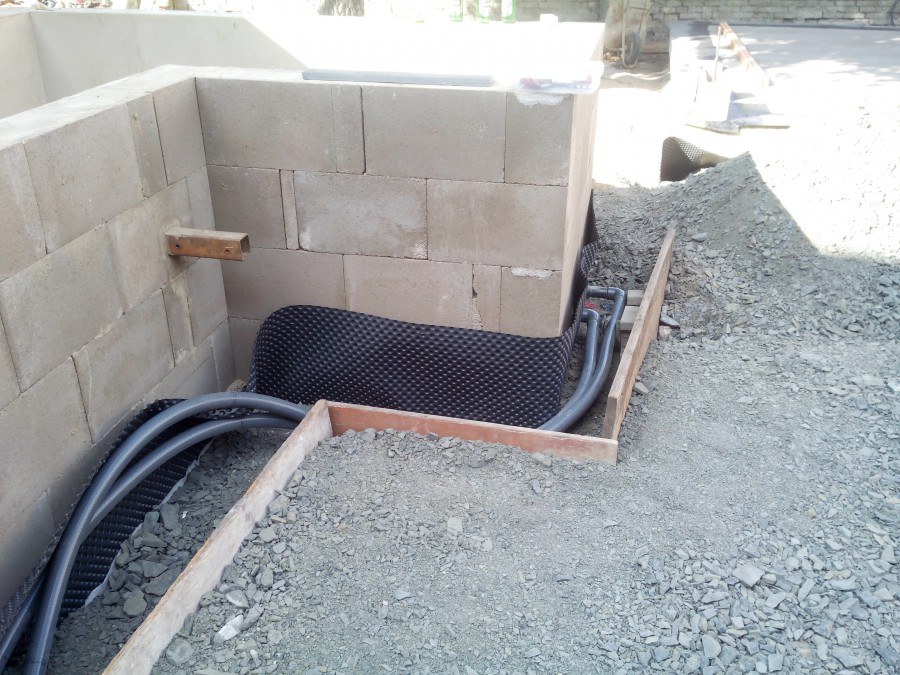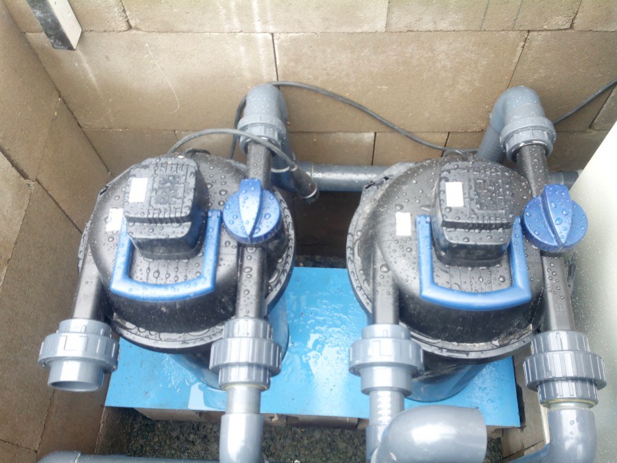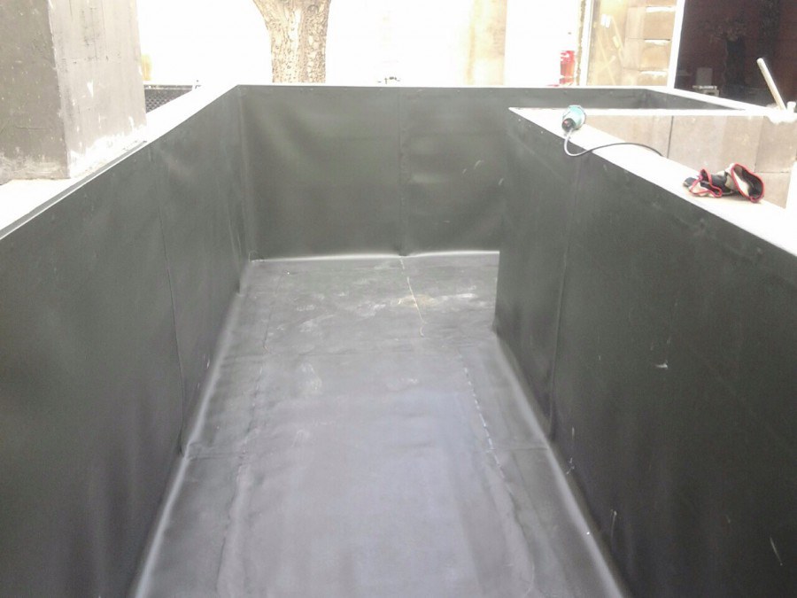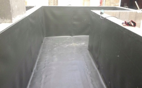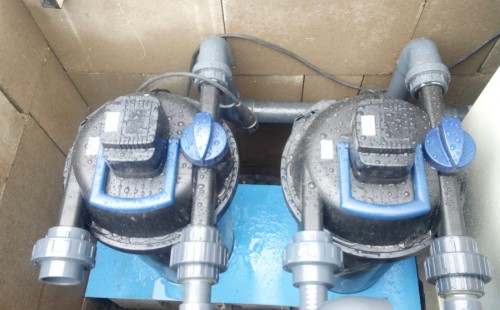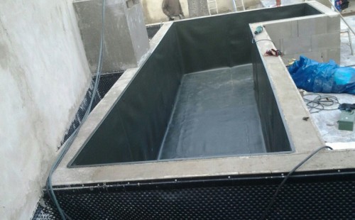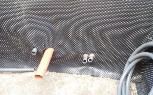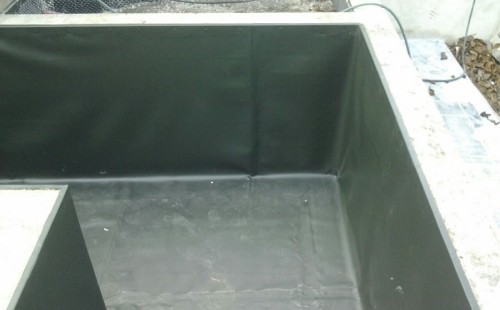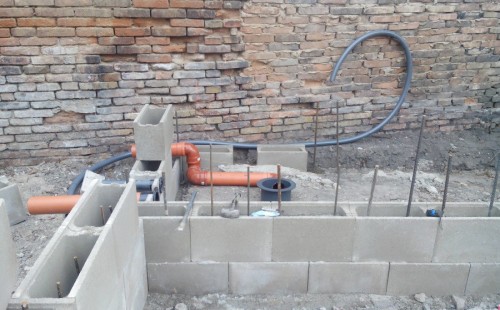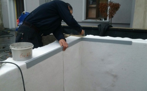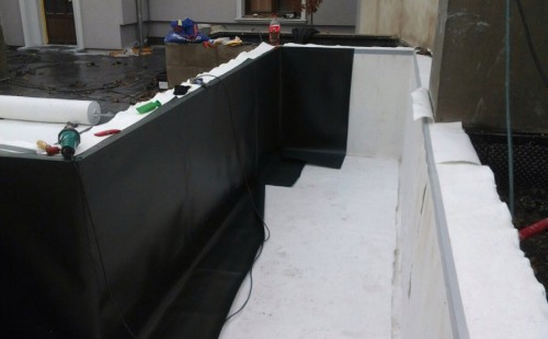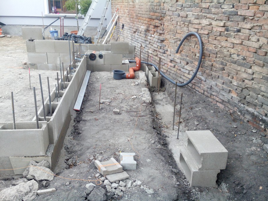 Tato realizace probíhala v Lounech a šlo o položení technologie, vyfóliování a dodávku technologie do okrasného vodního prvku na dvorku řadového domu. Při výstavbě této moderní stavby byla položena technologie (KG potrubí, gula dnová a fóliové příruby pro skimmer Oase AquaSkim Gravity), dále pak proběhla dostavba tohoto okrasného prvku. Poté byla natažena geotextílie 500g a osadily se speciální lišty k připevnění fólie Aquaplast 805 1,5mm. Na přání zákazníka byl navržen nerezový chrlič Oase Waterfall 60 včetně osvětlení Oase Waterfall Illumination 60. Po vyfóliování se začala zapojovat v technické místnosti technologie. Pro tento systém bylo navrženo: 2x filtr Oase Filtoclear 30000, čerpadlo pro systém Aquaking ECO-FTP 3200, čerpadlo pro efekt vodopádu Aquaking ECO-FTP 13000, obě čerpadla jsou uložena v čerpadlové šachtě vyrobené na míru. Efekt a světla budou ovládána dálkovým ovladačem Oase Inscenio Profi-Master.