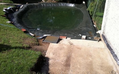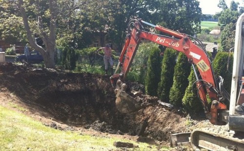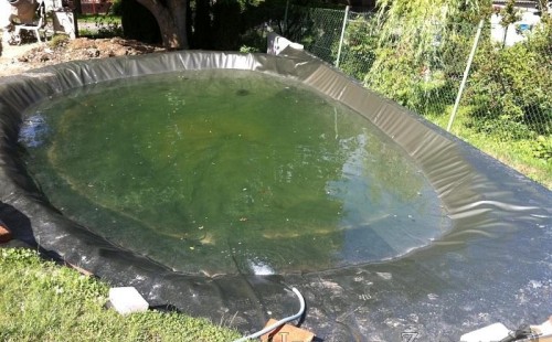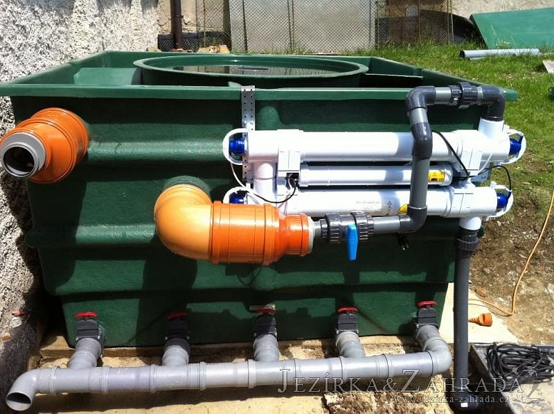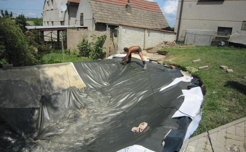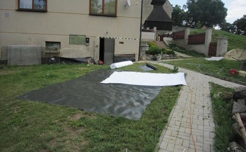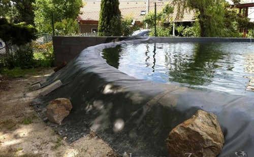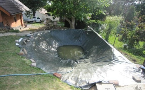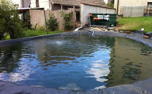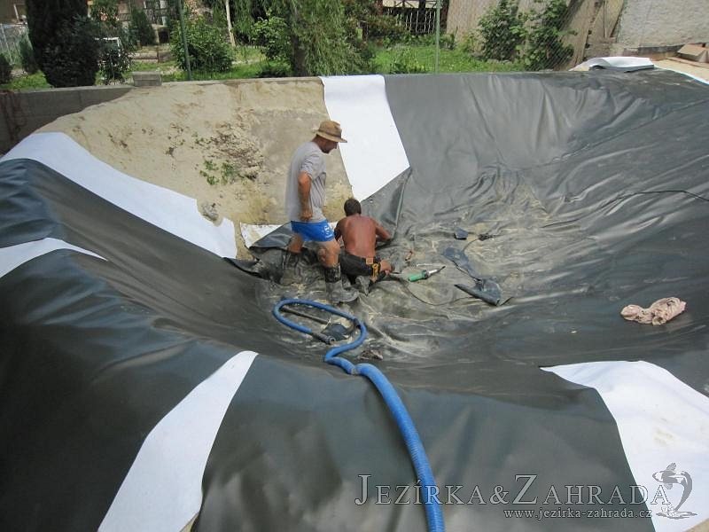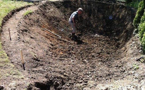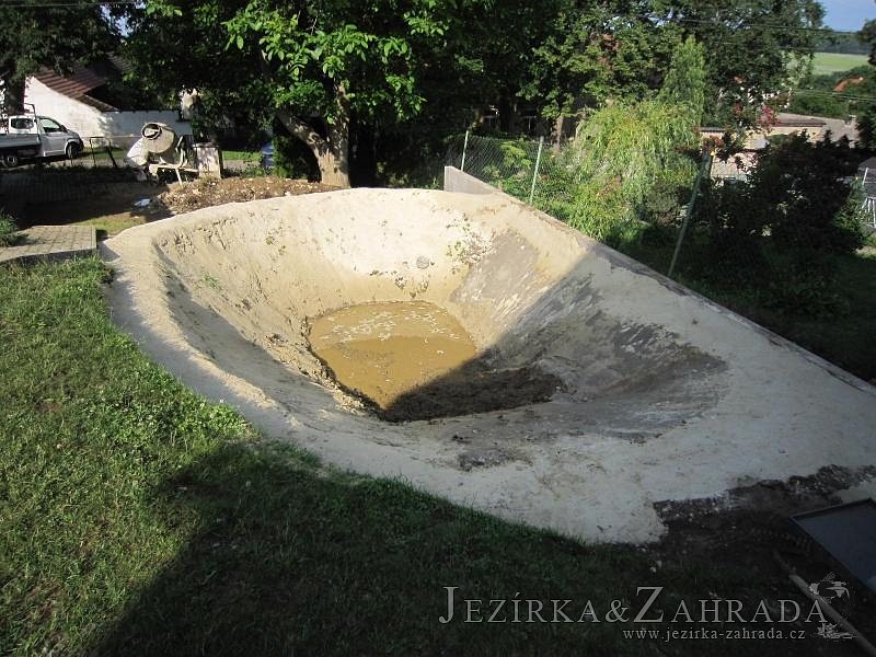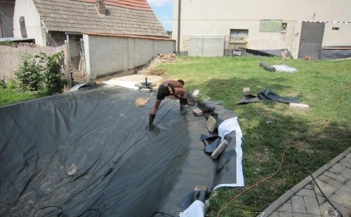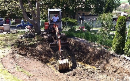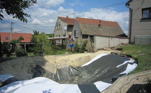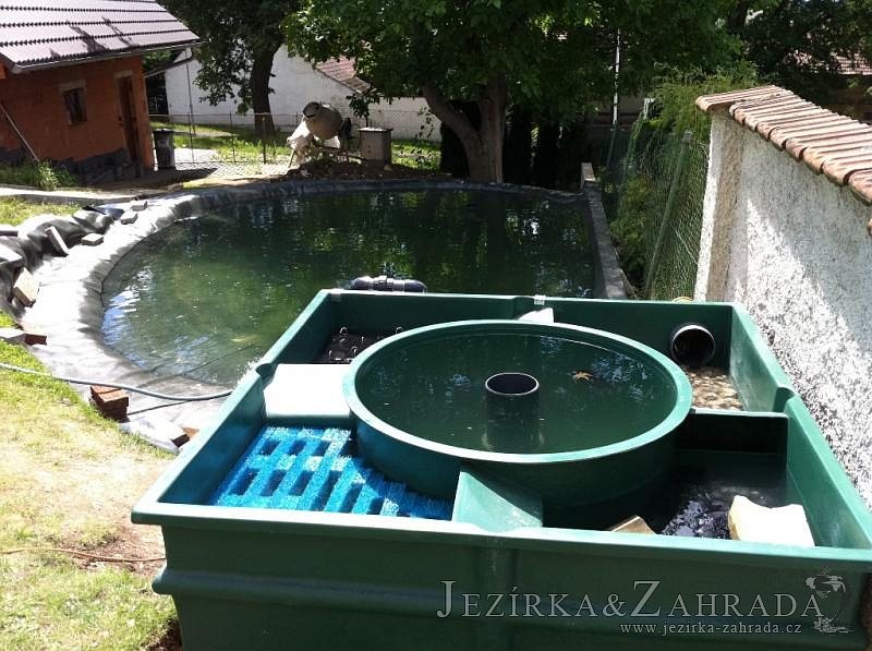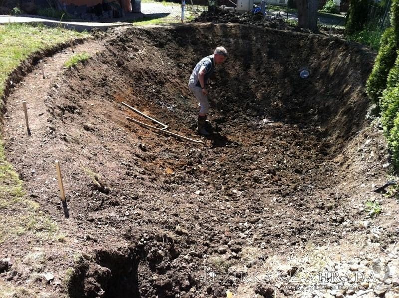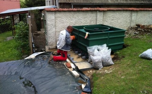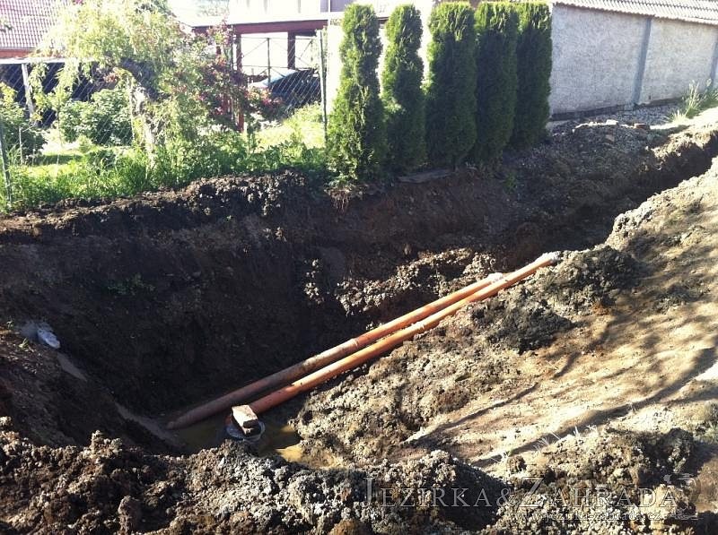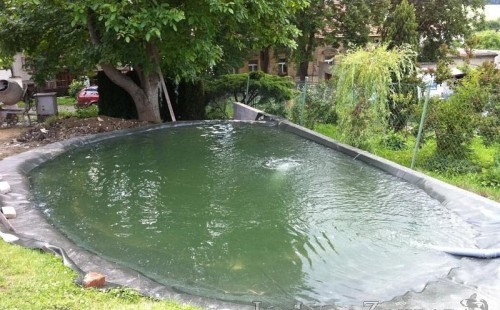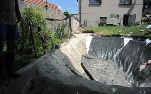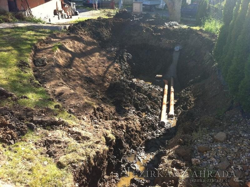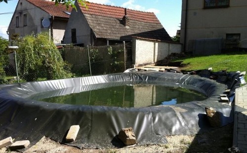 Klient si přál vystavět jezírko o velikosti 25m3. Po vytýčení tvaru jezírka došlo k položení gule, fóliové příruby pro skimmer Oase Aquaskim Gravity a potřebného potrubí k čerpadlové šachtě. Následně se vypískovalo kopaným pískem, položila se geotextílie 500g a svařila se jezírková fólie Fatra Aquaplast 805/V 1,5mm olivově zelená. K tomuto systému byla navržena technologie: biologicko-mechanická filtrace Tripond Center-Vortex C80 (umístěná nad jezírkem), čerpadlo Resun PG 18000, UV lampa TMC Pro Pond Advantage 110W, vzduchovací zařízení AquaForte V-60 s plackou 200mm. U tohoto jezírka byl trochu problém se spodní vodou. Konečný design jezírka si klient tvořil sám.