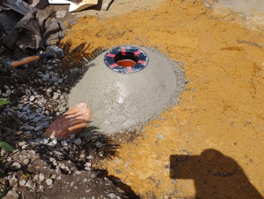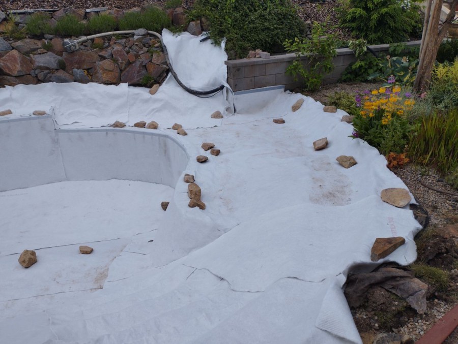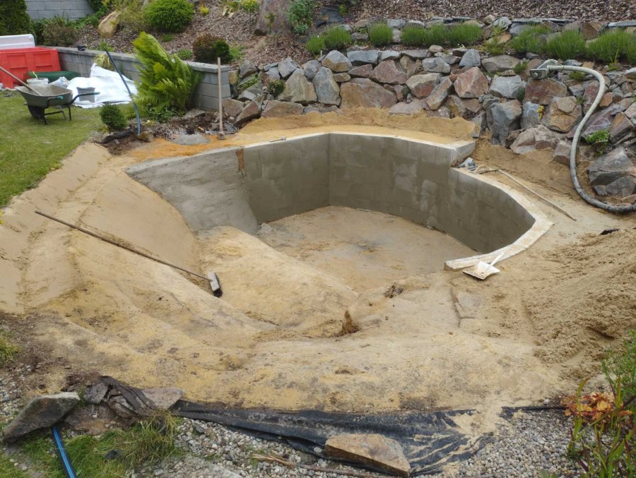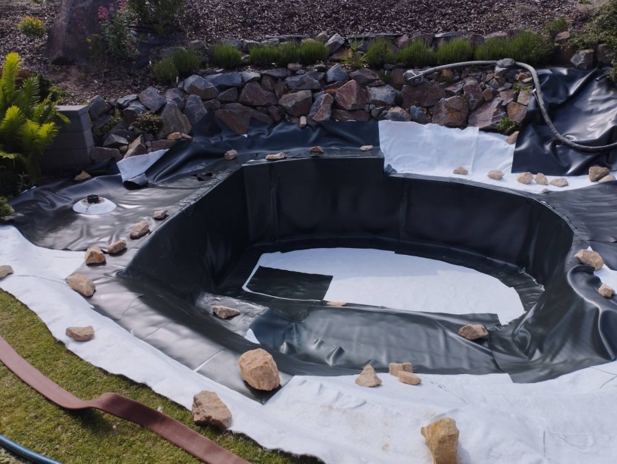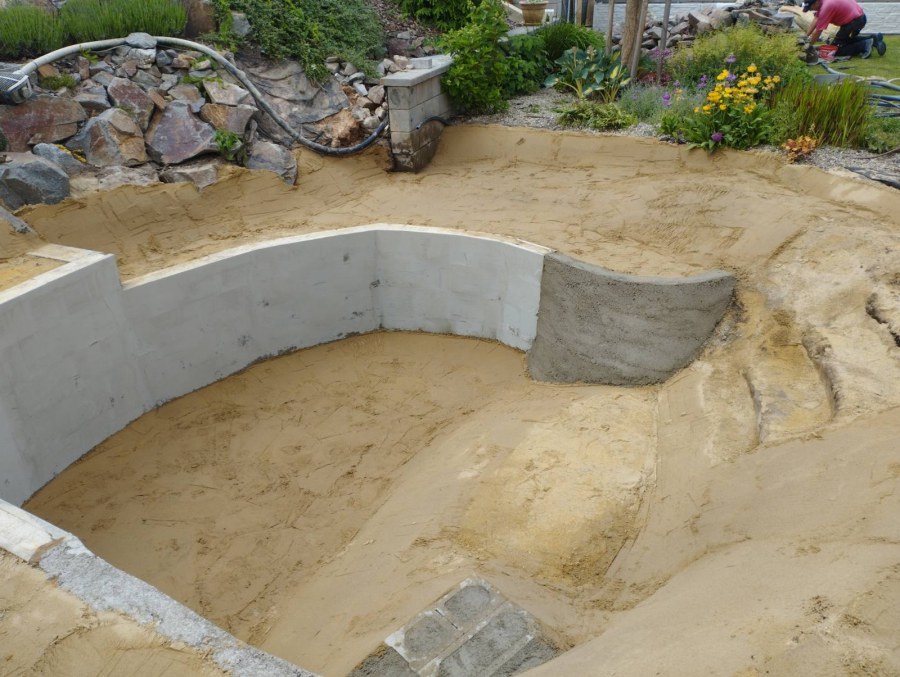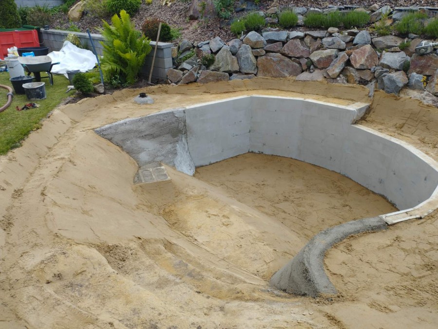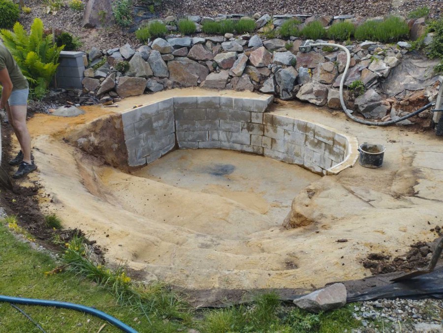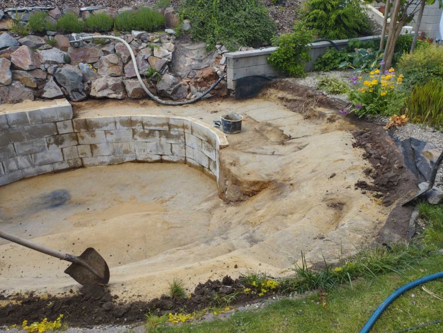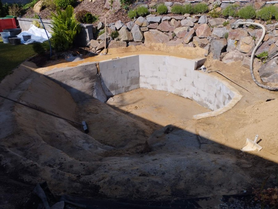 Rekonstrukce starého, nefunkčního jezírka u rodinného domku. Po konzultaci s majiteli jsme začali s kompletní rekonstrukcí na klíč. První krok byl vypustit vodu z jezírka, přelovit rybky do saku, zredukovat vodní květiny a odstranit kameny a kačírek. Poté přišla na řadu likvidace staré fólie a geotextílie. Čistý povrch jezírka se upravil, začistil a místy pokryl novým betonem. Nakonec se jezírko vypískovalo kopaným pískem, na něj se položila geotextílie 500g a nakonec se začala svařovat jezírková fólie Fatra Aquaplast 805/V olivově zelená. Po dokončení fóliování začali naši technici zapojovat stávající technologii. Na dno jezírka položili dvouvětvé čerpadlo které napojili na trubkový skimmer Oase AquaSkim. Toto čerpadlo bere nečistoty jak ze dna jezírka, tak saje nečistoty z povrchu pomocí skimmeru. Čerpadlo pak žene vodu do filtrace, odkud se vyčištěná vrací zpět. Začali napouštět vodu a mezi tím pokládali na pobřežní zónu kameny a vodní květiny. Po napuštění vody, aplikovali přípravek na úpravu vody Oase Safe Care, aby mohli ihned vrátit ryby do jezírka.