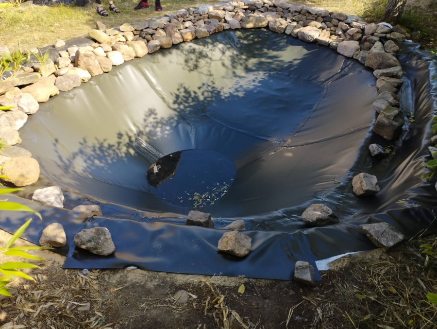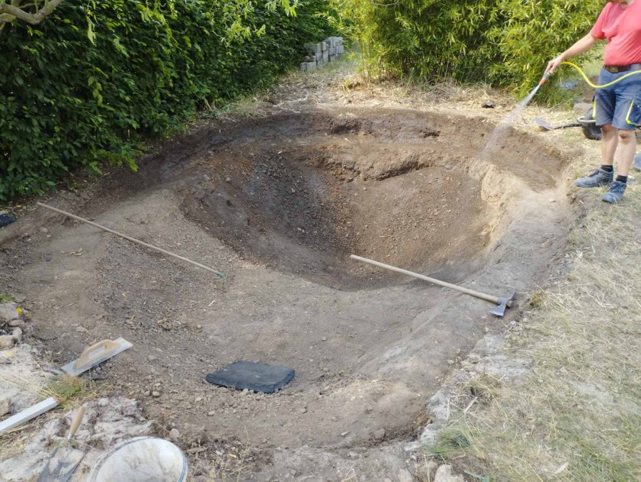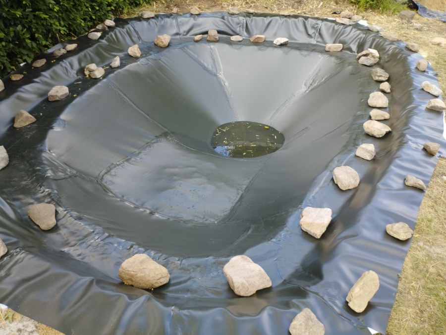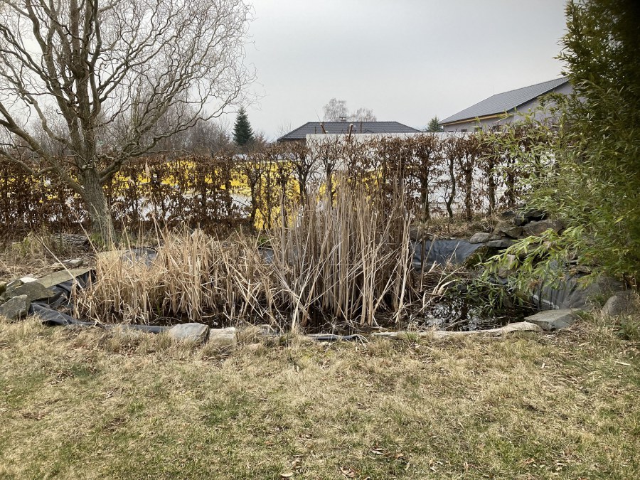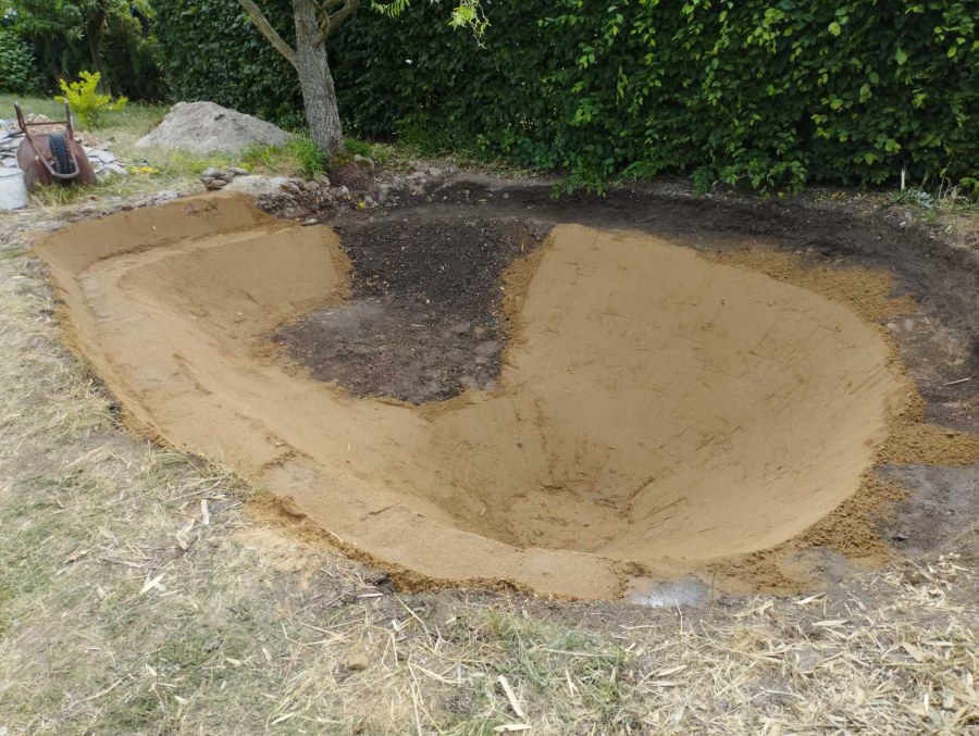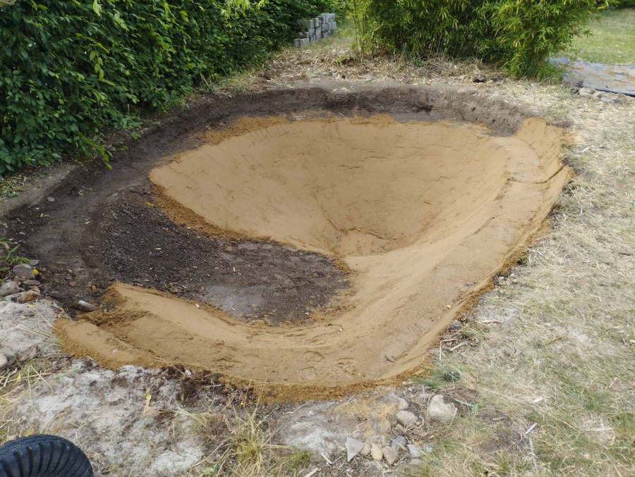V roce 2022 jsme začali plánovat rekonstrukci 20 let starého jezírka u rodinného domku v Lomu u Mostu. S majitelkou jsme domluvili kompletní rekonstrukci na klíč. Bourání jezírka obnášelo likvidaci starých rostlin, odvoz kamení a staré plachty. Zvětšení, prohloubení a úprava povrchu jezírka. Před vyfóliováním se jezírko pokrylo vrstvou kopaného písku, na ten se natáhla geotextílie 500g a na ni se začala svařovat fólie Fatra AquaPlast 805/V olivově zelená do požadovaného tvaru. Po napuštění jsme do pobřežní zóny položili Kubo kameny a kačírek, do kterého jsme zasadili vodní květiny.
