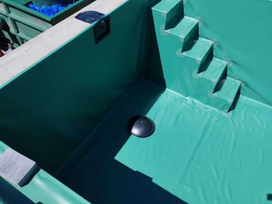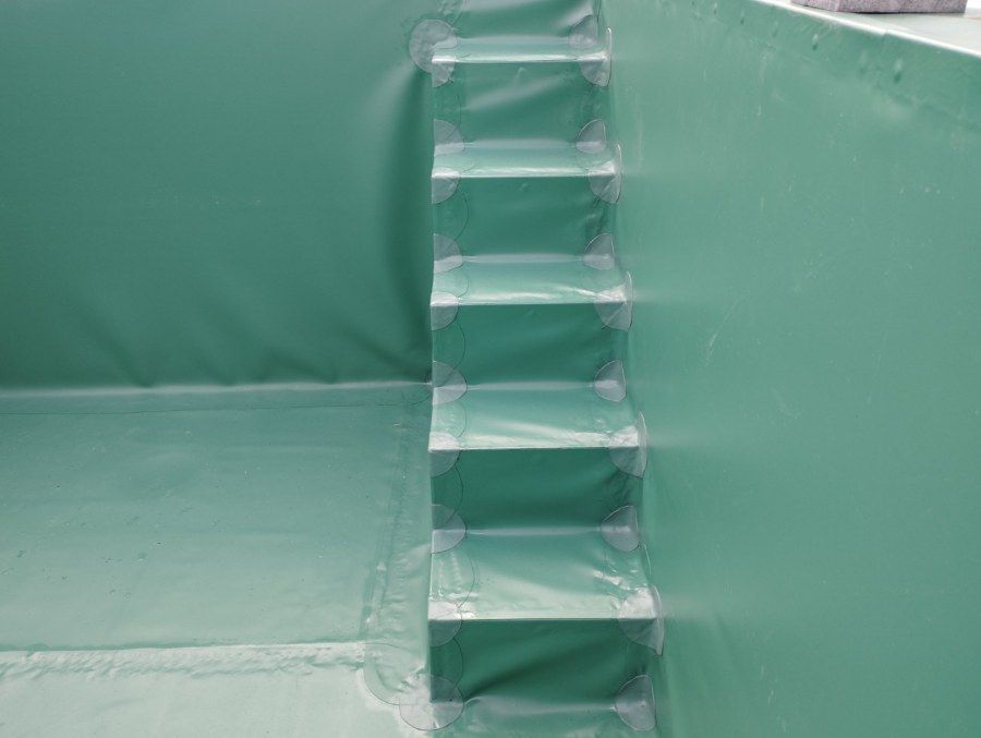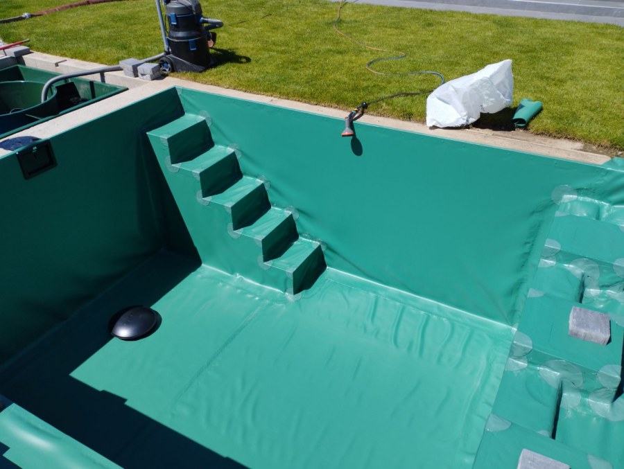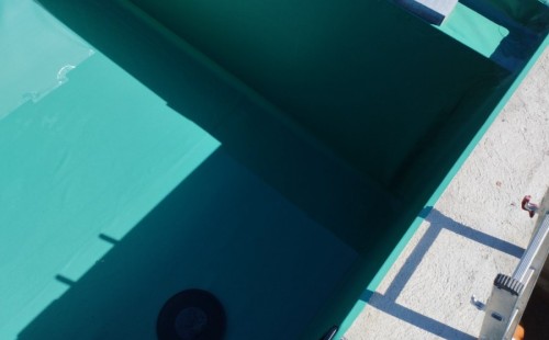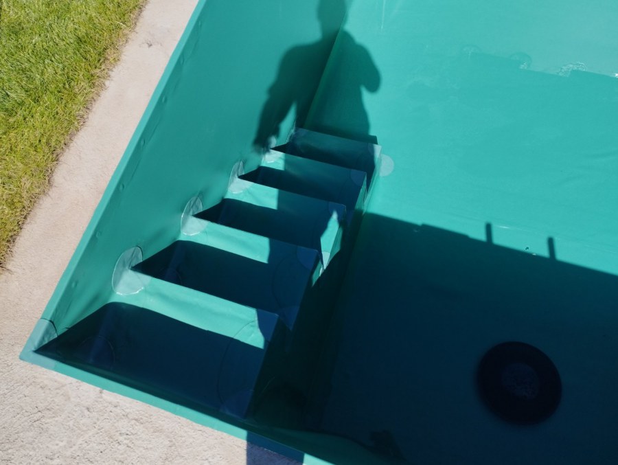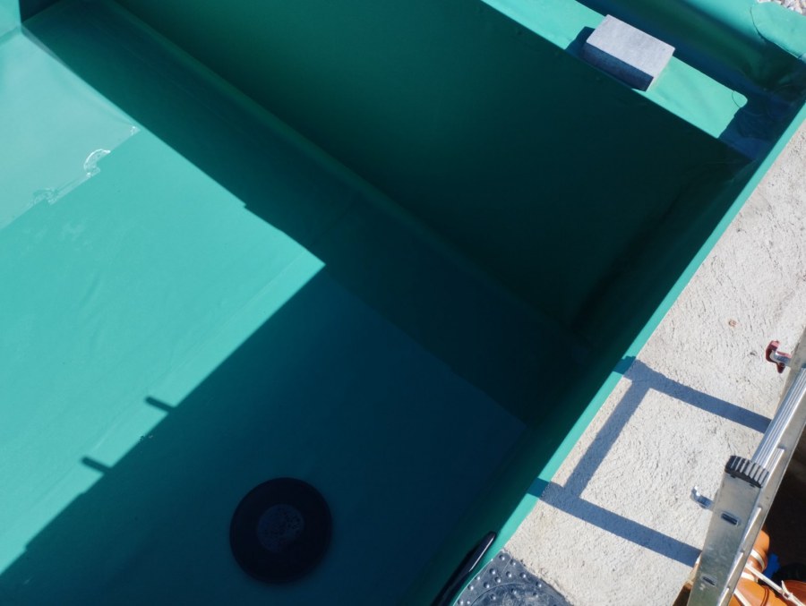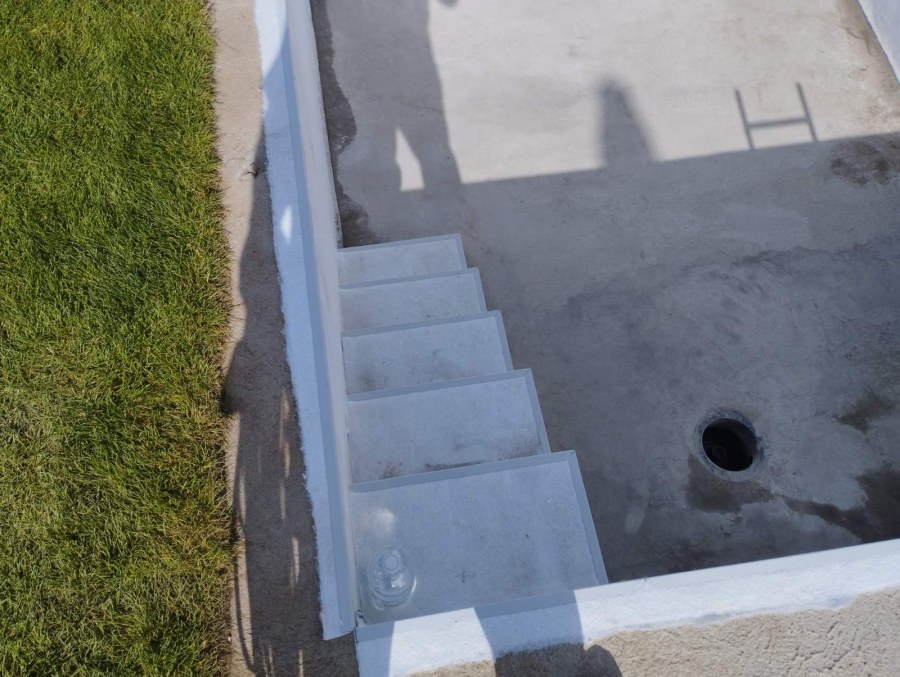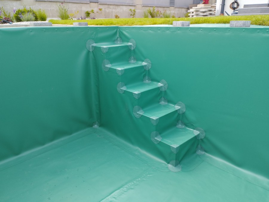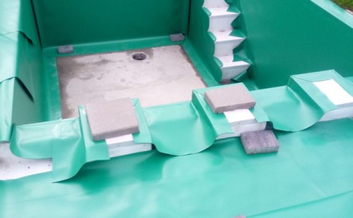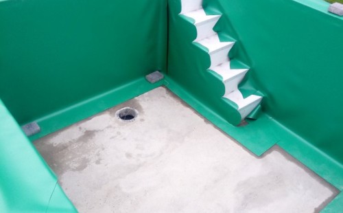 Stavba tohoto koupacího jezírka byla velmi rychlá. Po rychlé schůzce, při které se naplánoval tvar, technologie a postup stavby si klient svépomocí, malým bagříkem, vyhloubil tvar jezírka. Poté postavil ze ztraceného bednění zdi a vylil podlahu betonem. Do podlahy před tím ale zabudoval gulu a potrubí od ní natáhl do technické místnosti. Na hranu zdi u technické místnosti se připevnil jezírkový skimmer Oase ProfiSkim Wall 100. Po těchto úpravách mohli začít naši technici s foliováním. Nejprve natáhli geotextílii 500g, poté na hrany zdí a schodů navrtali speciální fóliové lišty Fatra Fatranyl PP a na ně následně navařili jezírkovou fólii Fatra AquaPlast 805/V světle zelenou.