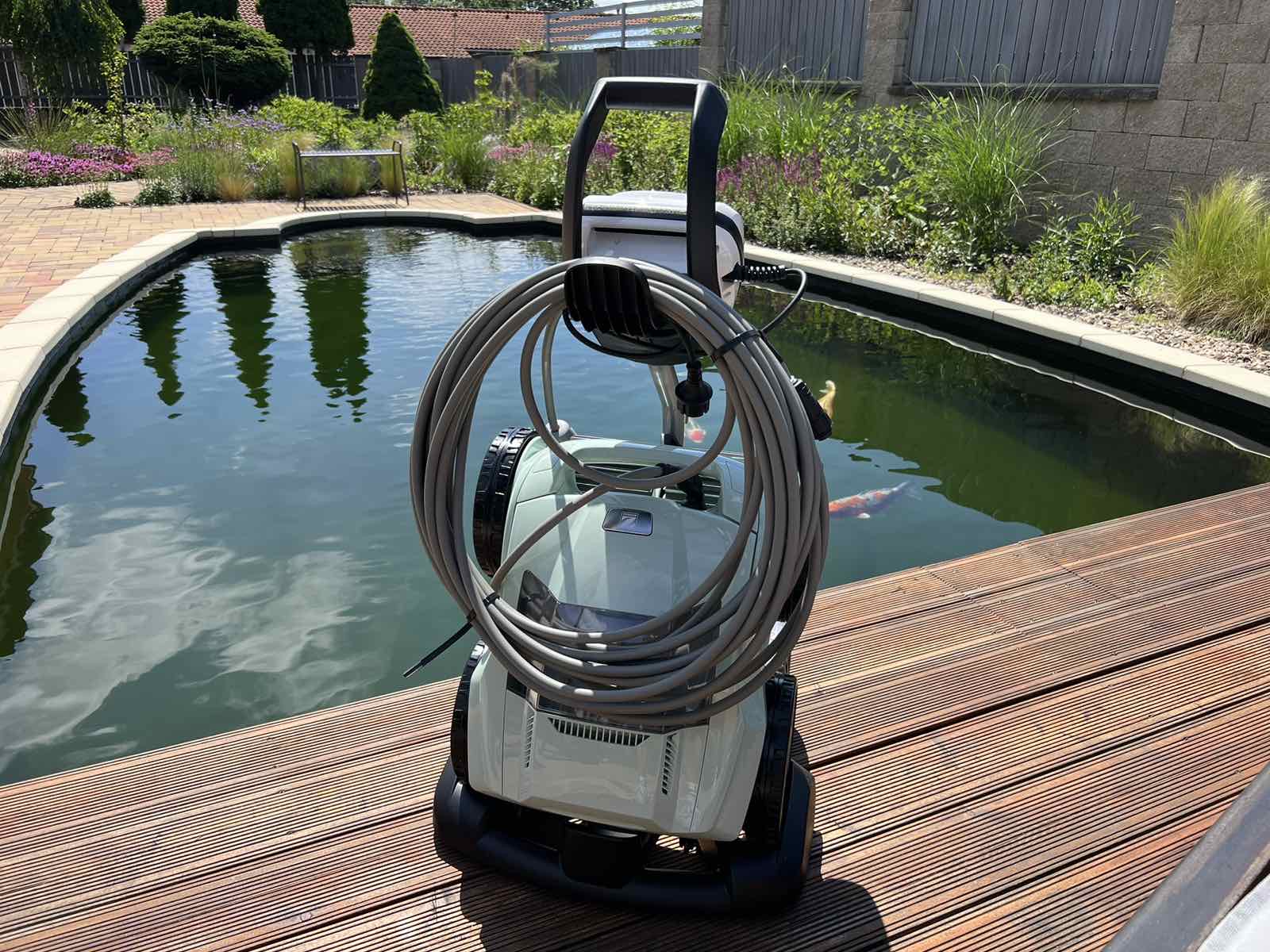 Do technické místnosti jsme zapojili biologicko – mechanický filtr Tripond Vortex-Center C80, systémové čerpadlo Oase AquaMax Gravity Eco 15000 a UV lampa TMC Pro Pond Advantage 110W. Pro snadnější údržbu čistoty v jezírku a hlavně na fólii doporučujeme pravidelně používat jezírkový robotický vysavač Zodiac RA 63 iQ Bio Alpha.