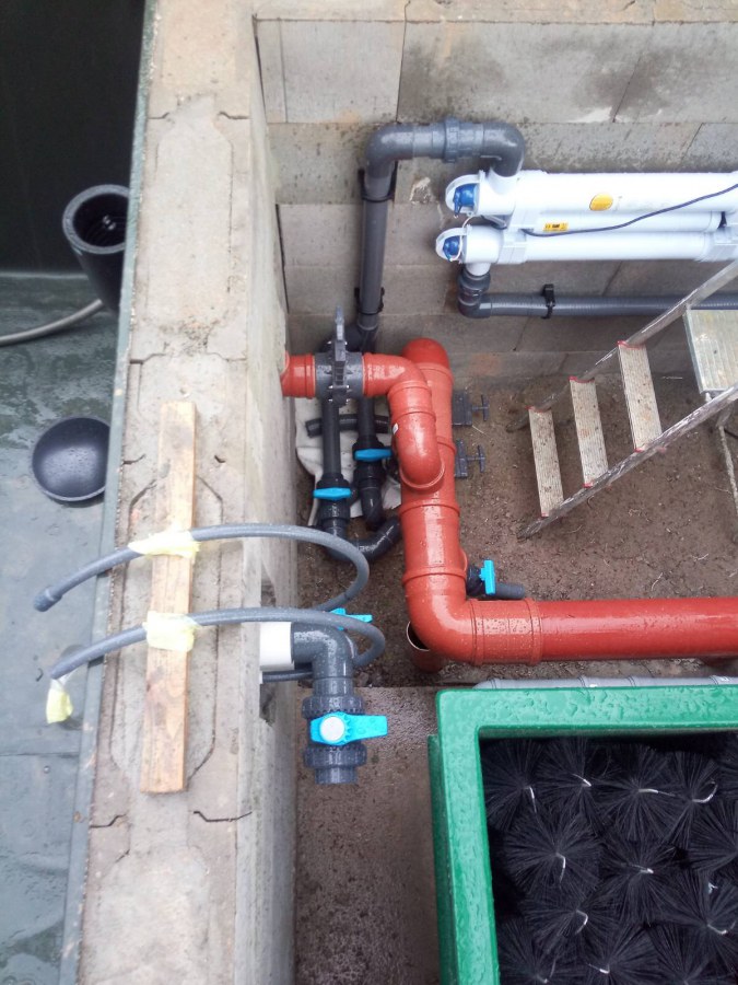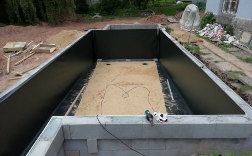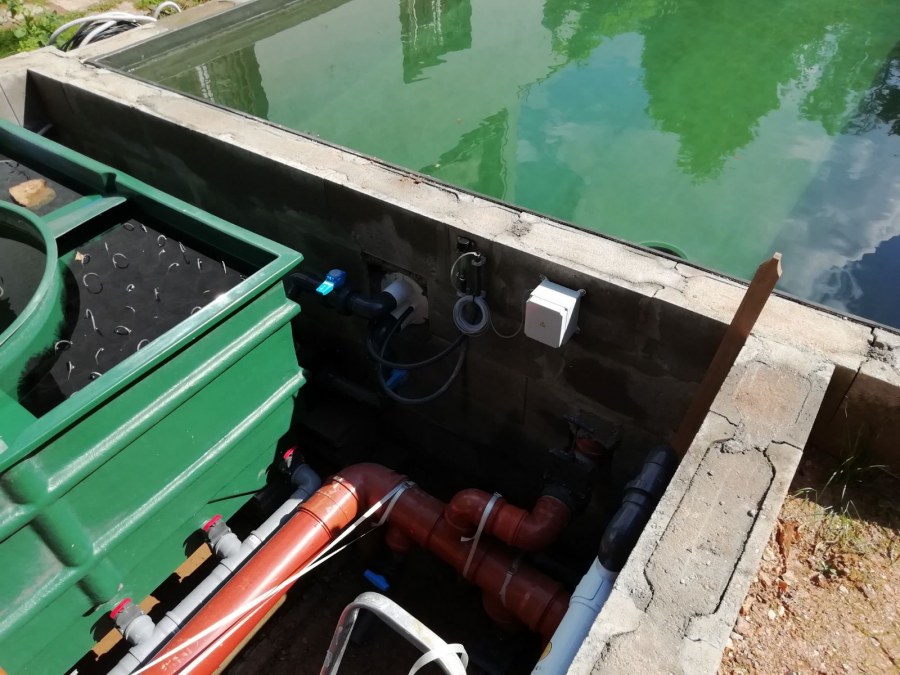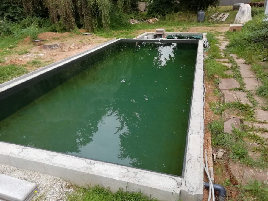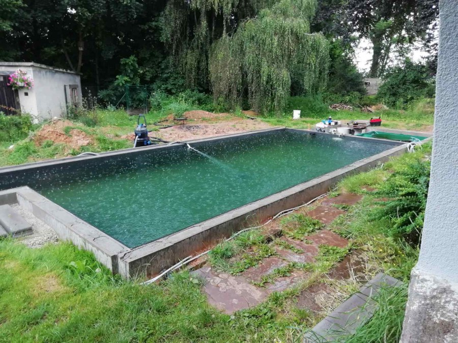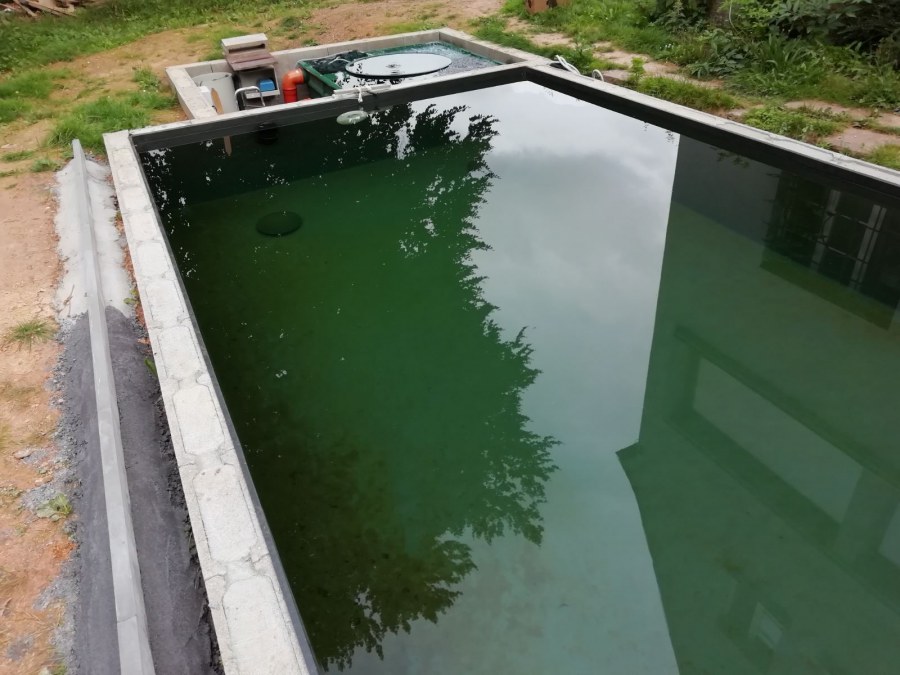 Tento rok přál koupacím jezírkům, postavili jsme jich mnoho. Například toto koupací jezírko v Chebu. Opět jsme vše dozorovali, od prvních nákresů přes výkop, hrubou stavbu, položení gulí, potrubí do technické místnosti, uložení fóliových přírub pro skimmery Oase AquaSkim Gravity a pro protiproud V-JET až po obezdění jezírka a technické místnosti ztraceným bedněním. Dno se pokrylo kopaným pískem. Klient si všechny tyto práce zajistil sám v místě bydliště. Naši technici přijeli po dokončení těchto prací, upravili povrch jezírka, dodělali odborné práce a začali s pokládkou jezírkové fólie. Nejdříve položili geotextílii 500g poté na hrany navrtali fóliové lišty a na ty začali navařovat fólii Fatra Aquaplast 805/V olivově zelenou. Ta se svařuje na místě dle tvaru jezírka. Po dokončení těchto prací je důležité co nejdříve napustit vodu aby se fólie vlivem počasí nedeformovala. Filtr jsme zvolili biologicko/mechanický Tripond Center Vortex C115 na něj jsme napojili UV lampu TMC Pro Clear 110W a čerpadlo Oase AquaMax Gravity Eco 20000. Vzduchování jak do jezírka, tak i do filtru jsme doporučili Hailea V-60. Pro lepší údržbu těchto koupacích jezírek doporučujeme používat automatický vysavač Dolphin Supreme Bio nebo Dolphin Supreme M500. Dokončovací práce jako je obložení hran a terénní úpravy okolo jezírka si klient již udělá sám.