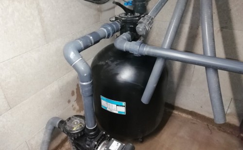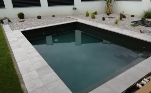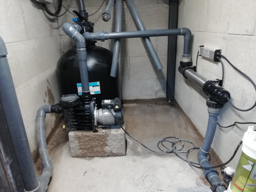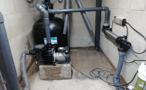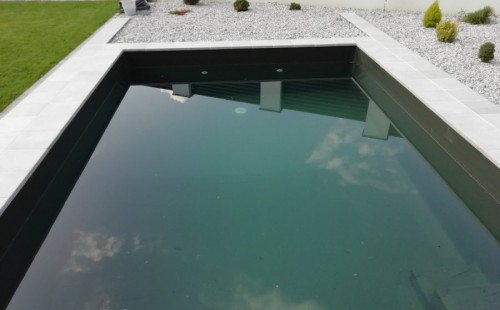 Protože klient už dopředu věděl, že ve vodě nebudou žádné rostliny ani ryby doporučili jsme bazénovou technologii, i vzhledem k tomu, že u domu není moc místa na velkou technickou místnost pro odpovídající jezírkový filtr. Zvolili jsme pískovou filtraci Azur KIT 560, UV lampu Eco Tech 40W, čerpadlo Badu Magic 11m3 a dávkovač tablet Rainbow 320.