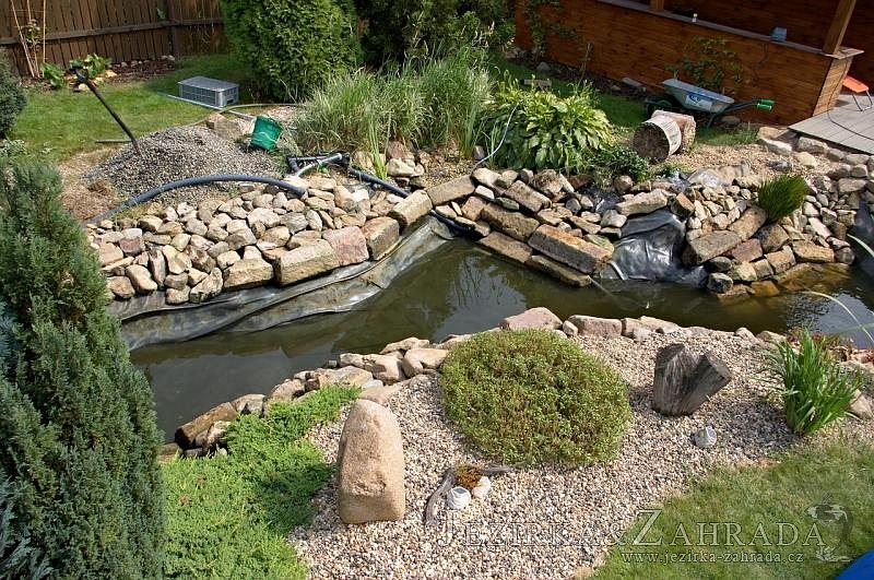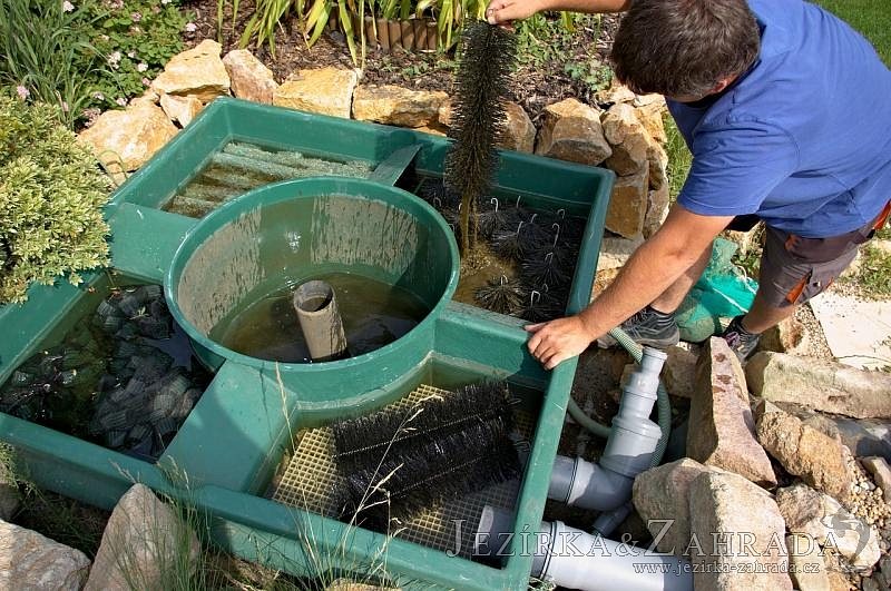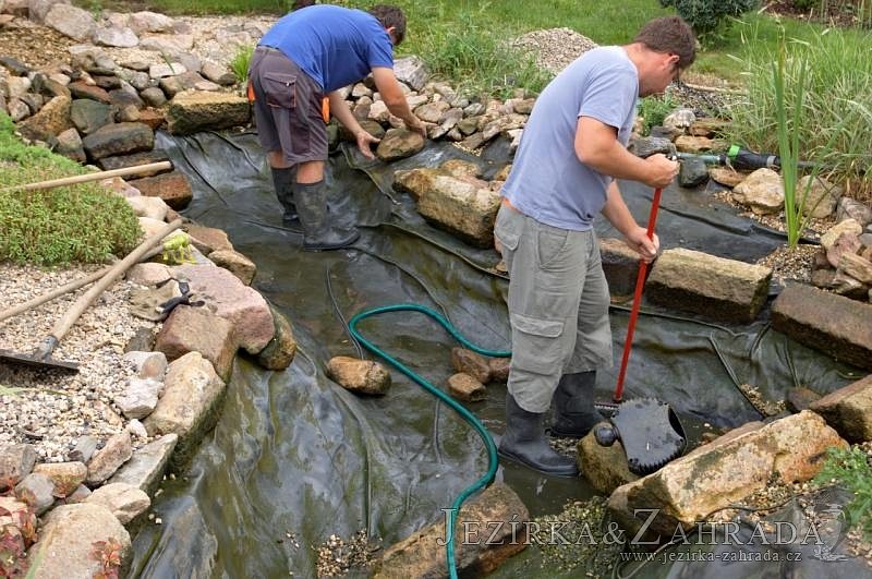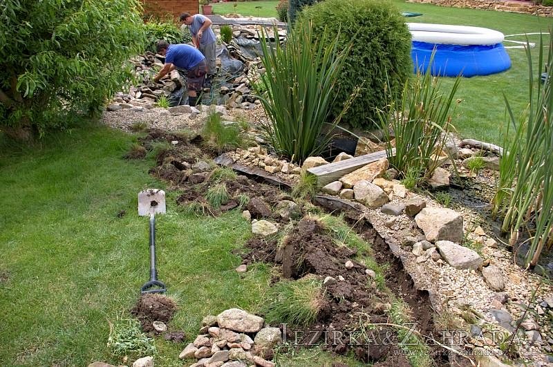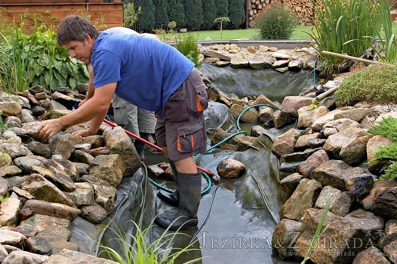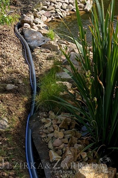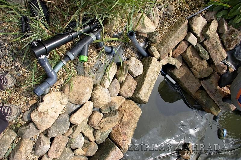 Na přání zákazníka byly vyměněny hadice s malým průměrem a při té příležitosti se vyčistilo celé jezírko i s potokem a technologie.