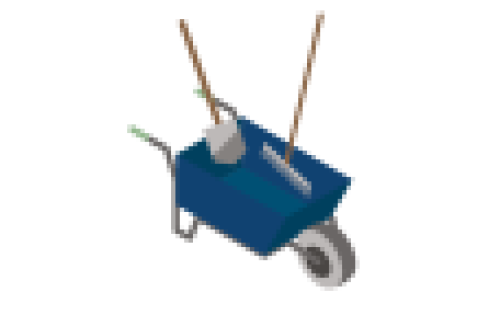 nářadí jako lopatu a rýč, kolečko, kropičku nebo
