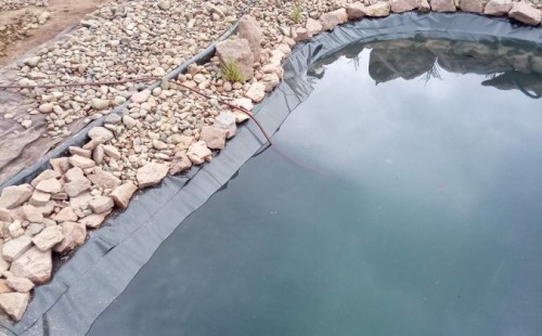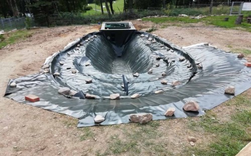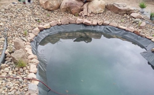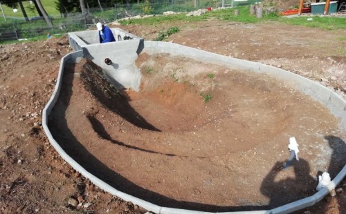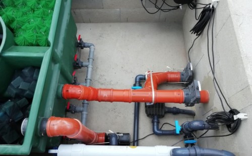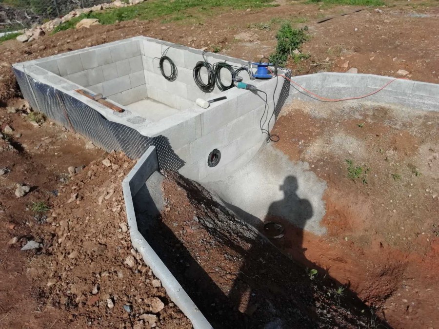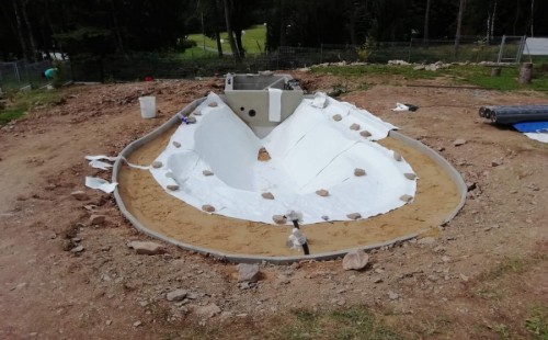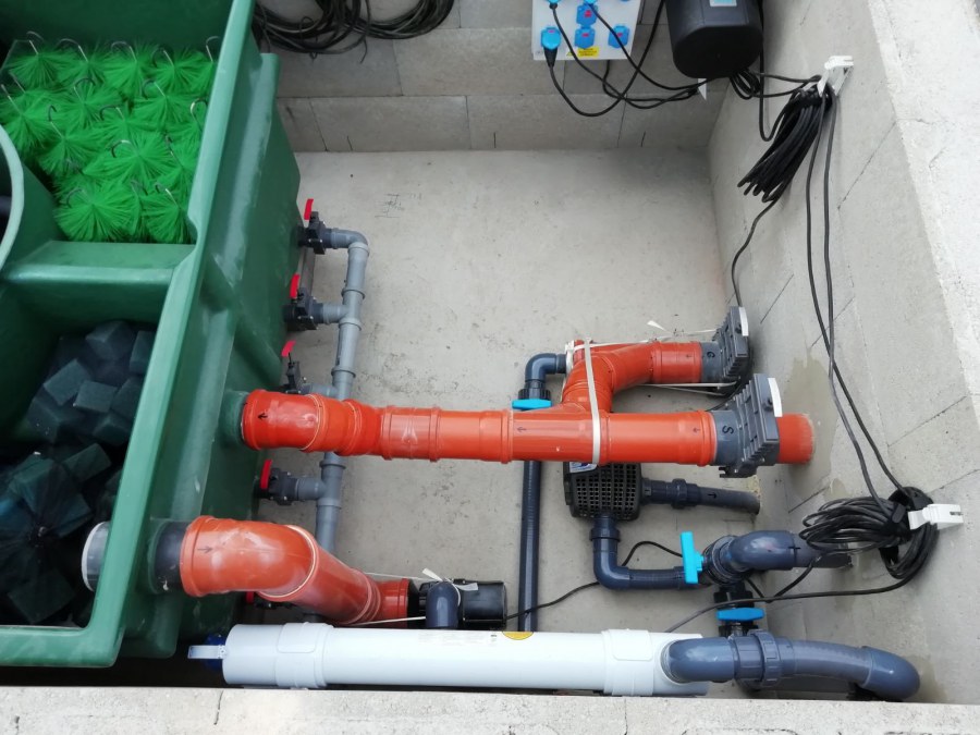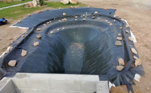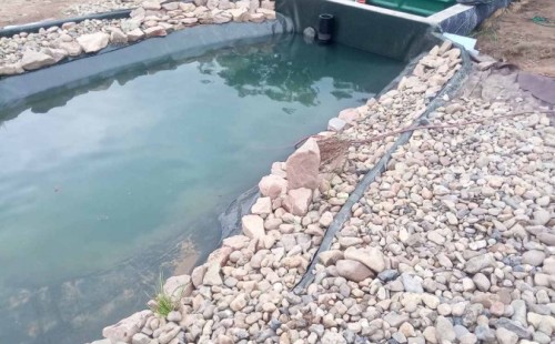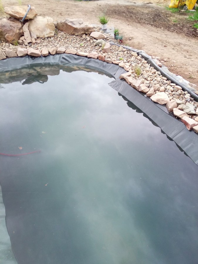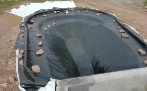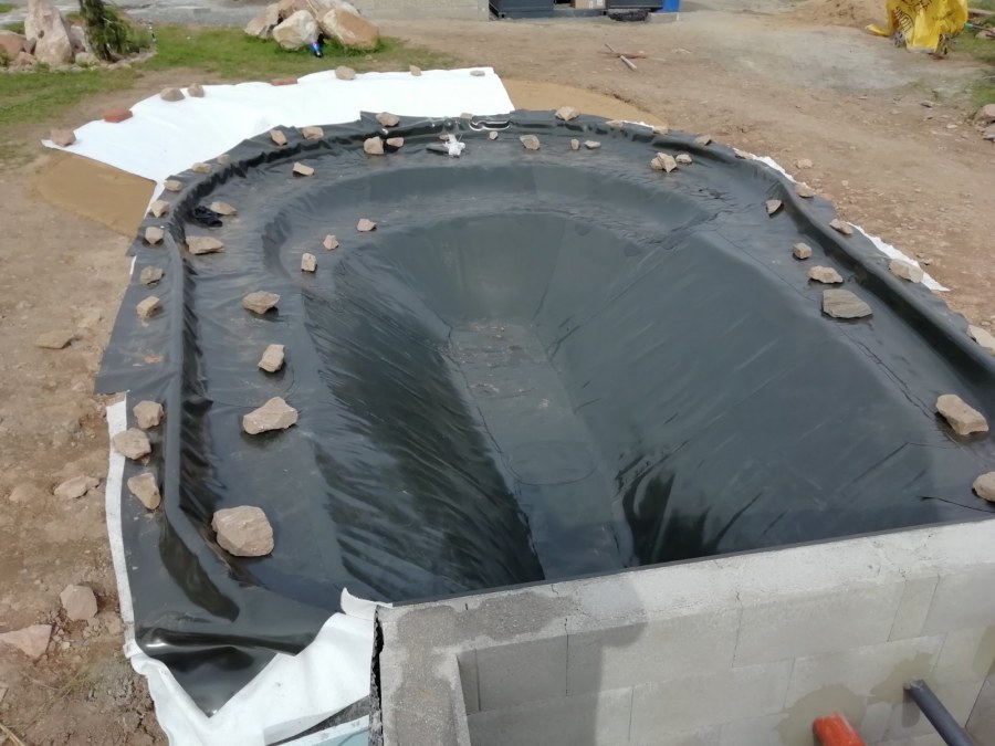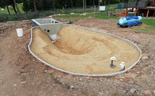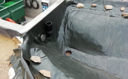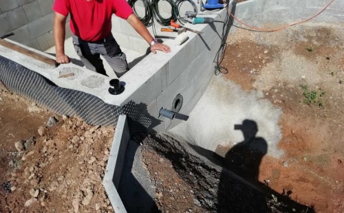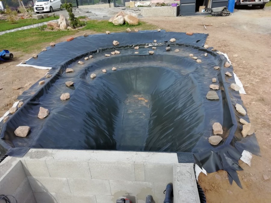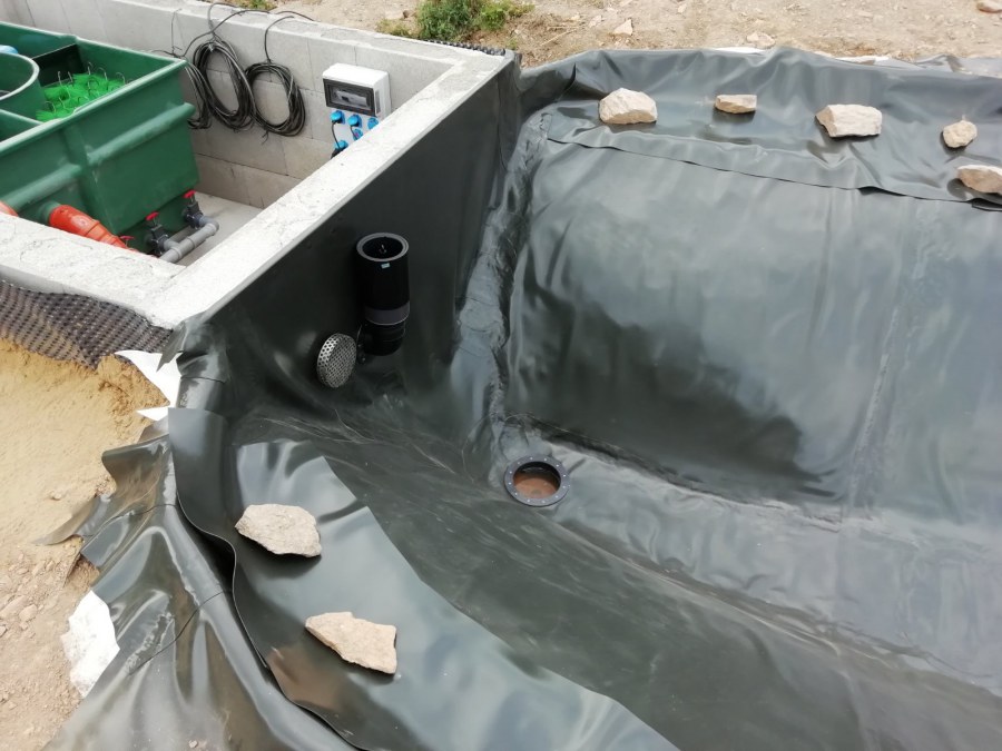 Na začátku léta nás oslovila klientka s přáním o realizaci jezírka na Klínech. Po konzultaci s klientkou na místě realizace jsme navrhli polohu, tvar a technologii. Abychom urychlili průběh prací oslovili jsme externí firmu, která pro nás vykopala hrubý tvar jezírka a postavila technickou místnost ze ztraceného bednění. Poté už naši technici mohli usadit guly, natáhnout potrubí do technické místnosti a připravit vývod pro skimmer Oase AquaSkim Gravity. Pak se dno jezírka vypískovalo kopaným pískem aby se zarovnali nerovnosti, natáhla se geotextílie 500g a začala se svařovat jezírková fólie Fatra Aquaplast 805/V olivově zelená. Jezírko má po napuštění 15m3. Zvolili jsme proto biologicko-mechanický filtr Tripond Center Vortex C50, UV lampu TMC Pro Clear 110W, systémové čerpadlo Oase AquaMax Eco Gravity 10000, na vodopád žene vodu čerpadlo Oase Aquamax Eco 9000C. Vzduchovací motor jak do jezírka, tak do filtru jsme zvolili AquaForte/Hailea V-30. Dokončení břehů a osazení květinami si klientka dodělá sama.
