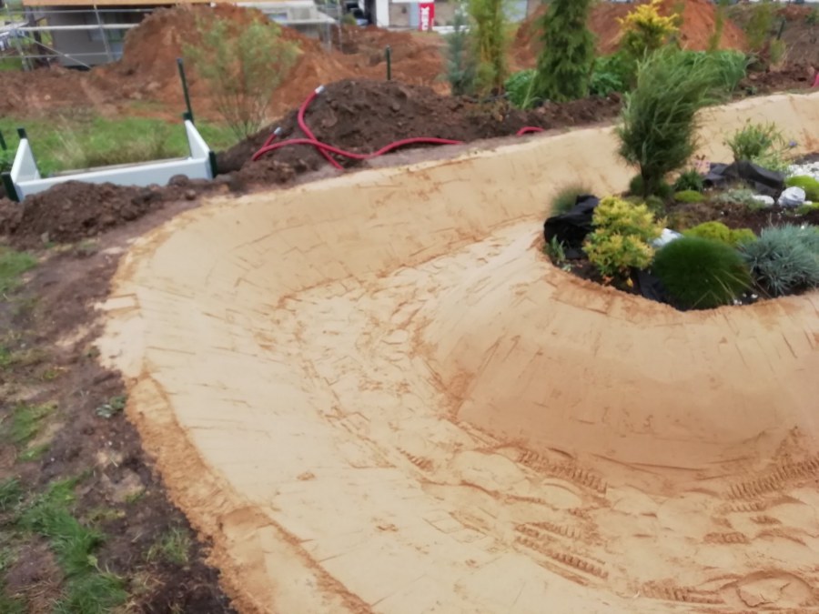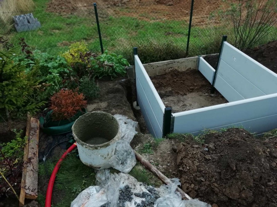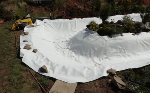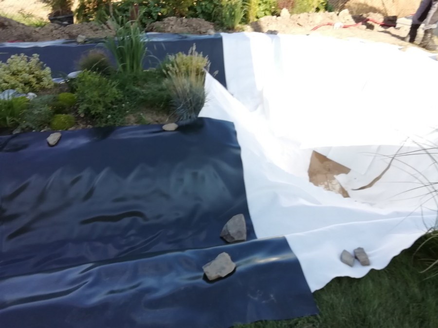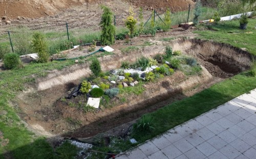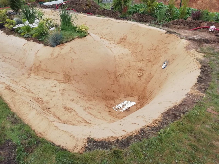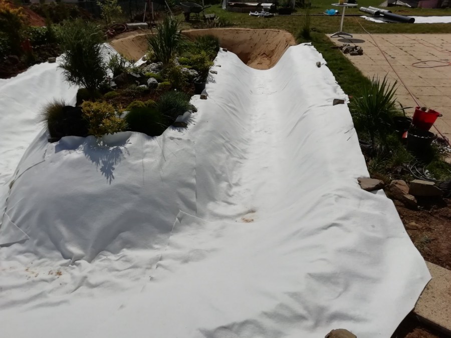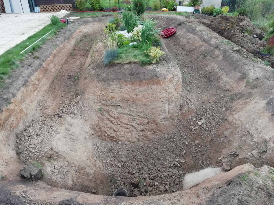 Velmi rádi jsme přijali realizaci tohoto okrasného jezírka. Majitelé nás oslovili s tím, že mají hrubou stavbu připravenou, náš úkol byl jezírko upravit po technické stránce, položit fólii a zapojit technologii. Nejprve bylo nutné upravit povrch, který byl nahrubo vykopaný, usadit guly a potrubí od gule k čerpadlové šachtě a také potrubí pro skimmer Oase AquaSkim Gravity. Čerpadlová šachta se zakopala cca 2m od břehu jezírka, tam se uloží čerpadlo, které požene vodu do filtru. Pro filtr se vystavěla malá technická místnost v rohu zahrady. Po zabetonování gule a fóliové příruby pro skimmer se celé jezírko pokrylo kopaným pískem tak, aby se zarovnali nerovnosti na povrchu. Poté se začalo s pokládkou geotextílie 500g a následně se začala svařovat jezírková fólie Fatra Aquaplast 805/V olivově zelená 1,5mm. Po dokončení fóliování se jezírko začalo napouštět vodou, mezi tím naši technici usadili mechanicko-biologický filtr Tripond Center-Vortex C-50, na něj připojili UV lampu TMC Pro Clear 55W. Vodu k filtru požene čerpadlo Oase AquaMax Eco Classic 11500 uložené v čerpadlové šachtě. Dokončení jezírka jako je usazení kamenů a květin si již klienti udělají sami.
