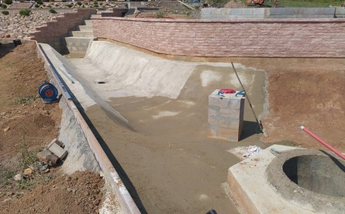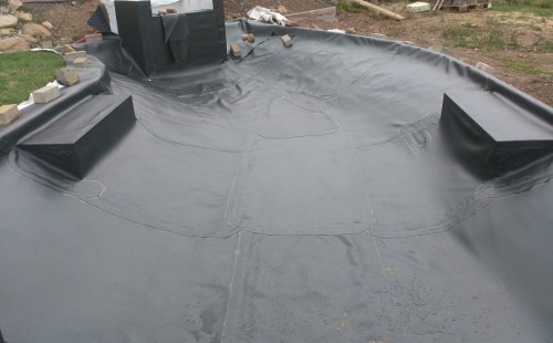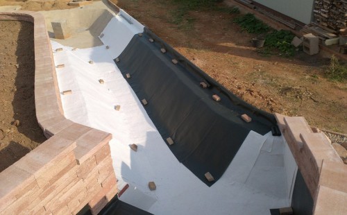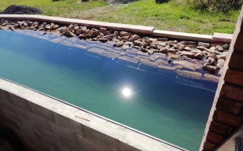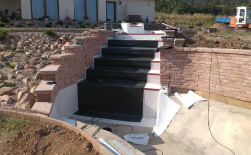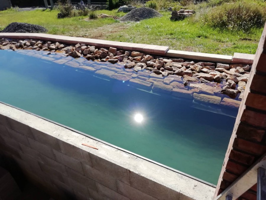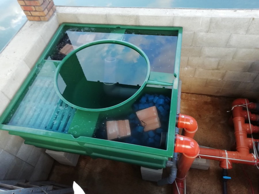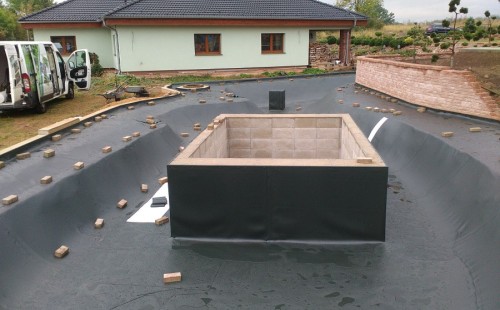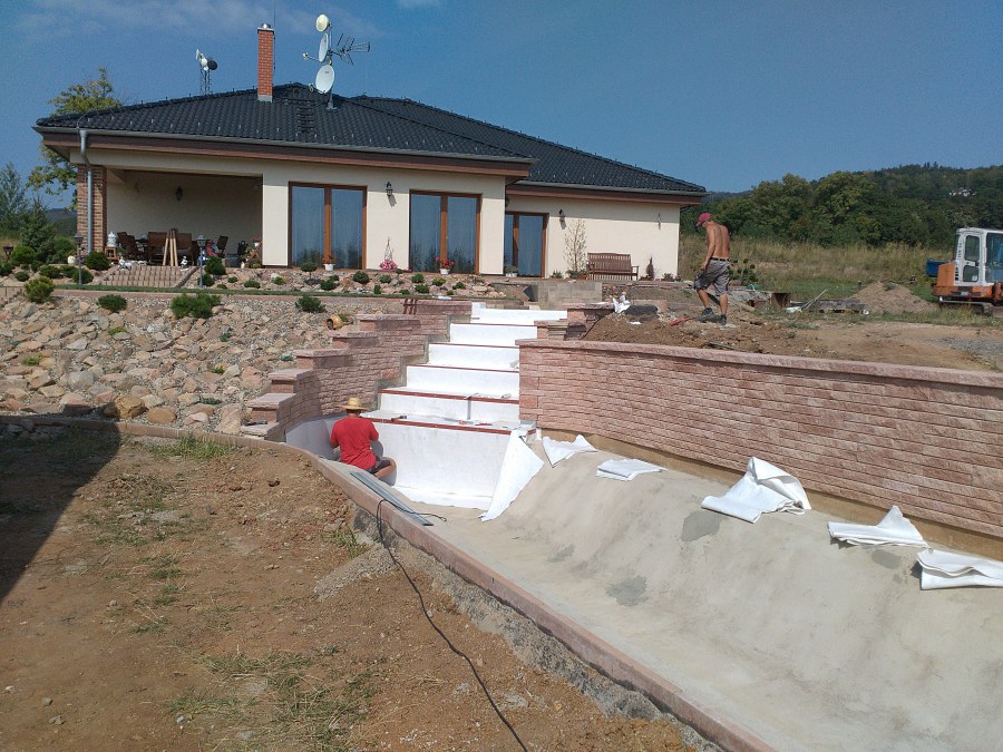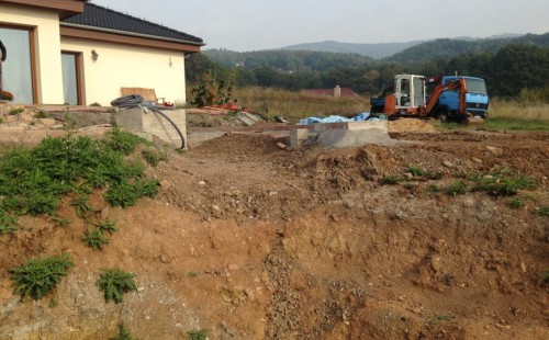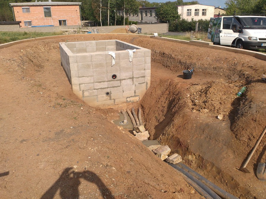 V roce 2018 jsme začali s realizací stavby rozsáhlého komplexu jezírek u Teplic. Opět se začalo zaměřením a přesným rozplánováním prací. Pozemek je kaskádovitý, takže stavba vodopádu byla samozřejmá. V první části prací se zaměřovalo a bagrovalo, dále se postavila technická místnost, zcela netypicky uprostřed jezírka, usadili se gule a udělali se rozvody potrubí k technické místnosti. Po zarovnání nerovných povrchů se jezírko zapískovalo a pokrylo slabou vrstvou betonu. Poté se začala pokládat geotextílie 500g a svařovat jezírková folie Fatra Aquaplast 805/V olivově zelená dle tvaru jezírka. Nakonec se začali na okraje skládat kameny. Dále si klient sám dolaďoval detaily jako dostavbu technické místnosti, stavbu mol, osazování květinami apod. Nakonec jsme dodali technologii, celý komplex má cca 70m3, vhodný filtr necháme vyrobit na míru, prozatím byl nainstalován biologicko-mechanický filtr Tripond Vortex C115, 2x UV lampa TMC Pro Pond Advantage 110W a systémové čerpadlo Oase AquaMax Eco Expert 44000 a efektové čerpadlo Oase AquaMax Eco Titanium 51000.