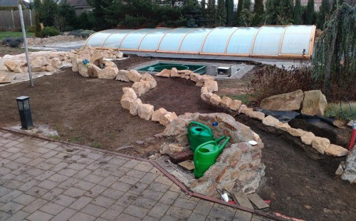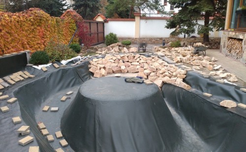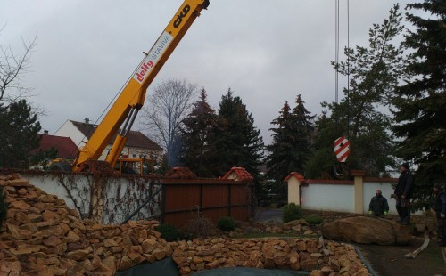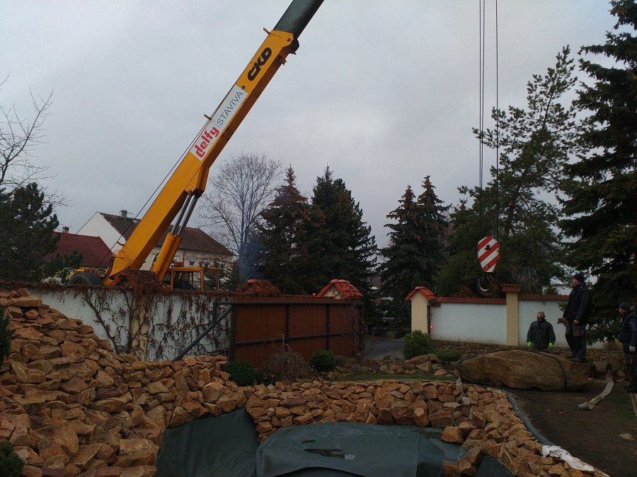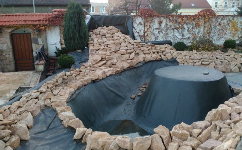 Tento rok pokračujeme v úpravě vodopádu, ten dostává konkrétní tvar dle přání klienta. Vodopád se tyčí do výšky cca 2 metrů a je vyskládaný z kamenů kubo, kterými je vyskládáno z větší části i jezírko. Na vodopád jsme zvolili silné čerpadlo Oase AquaMax Eco Expert 44000 aby byl efekt opravdu pěkný.