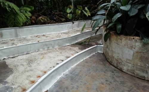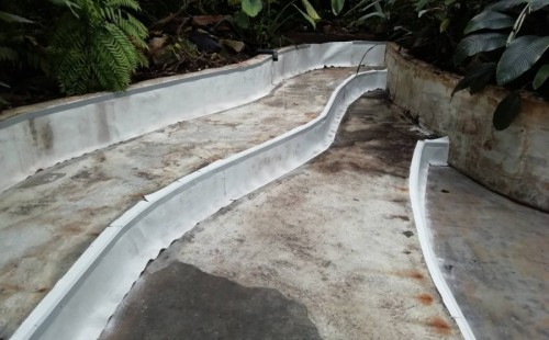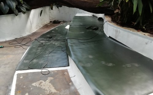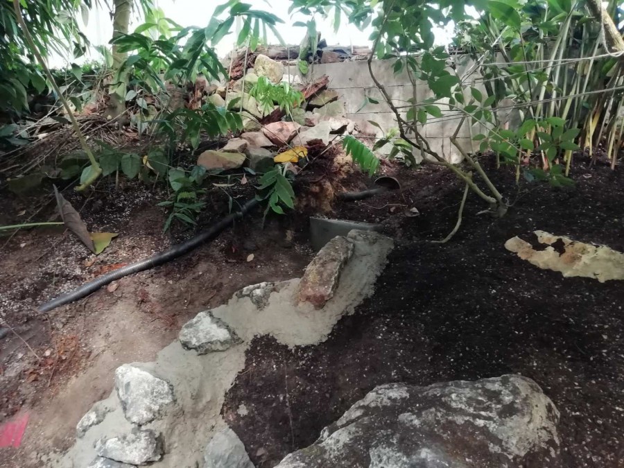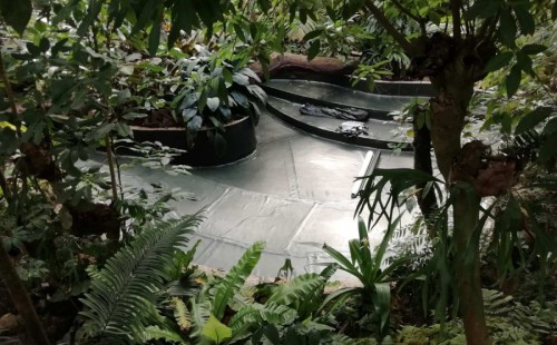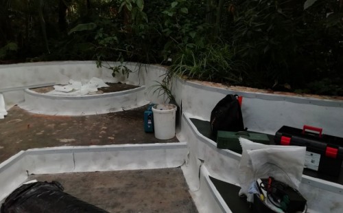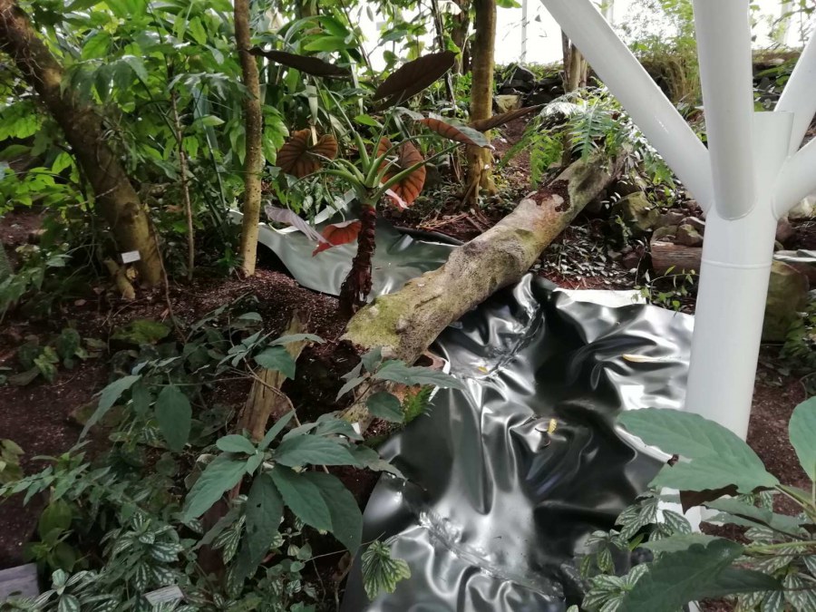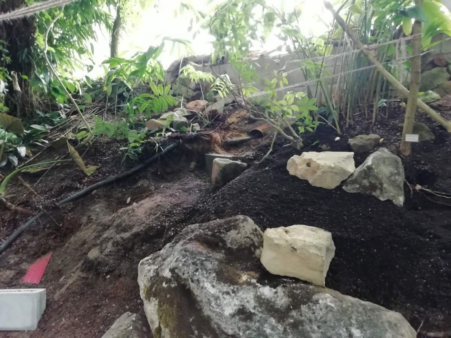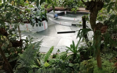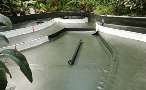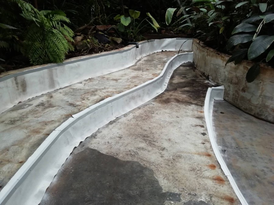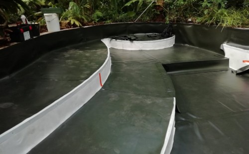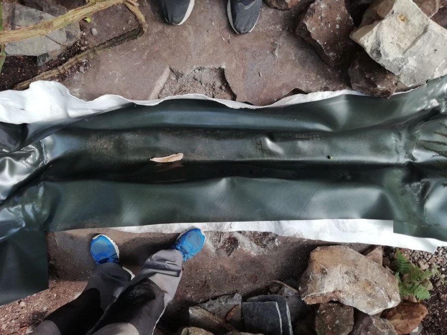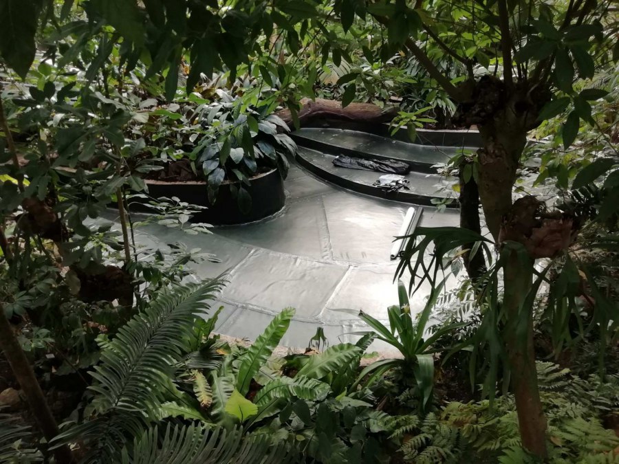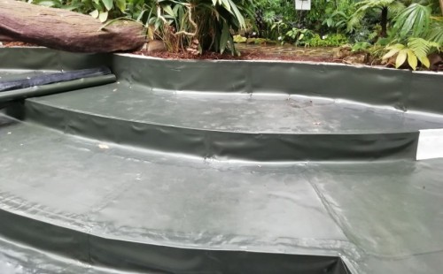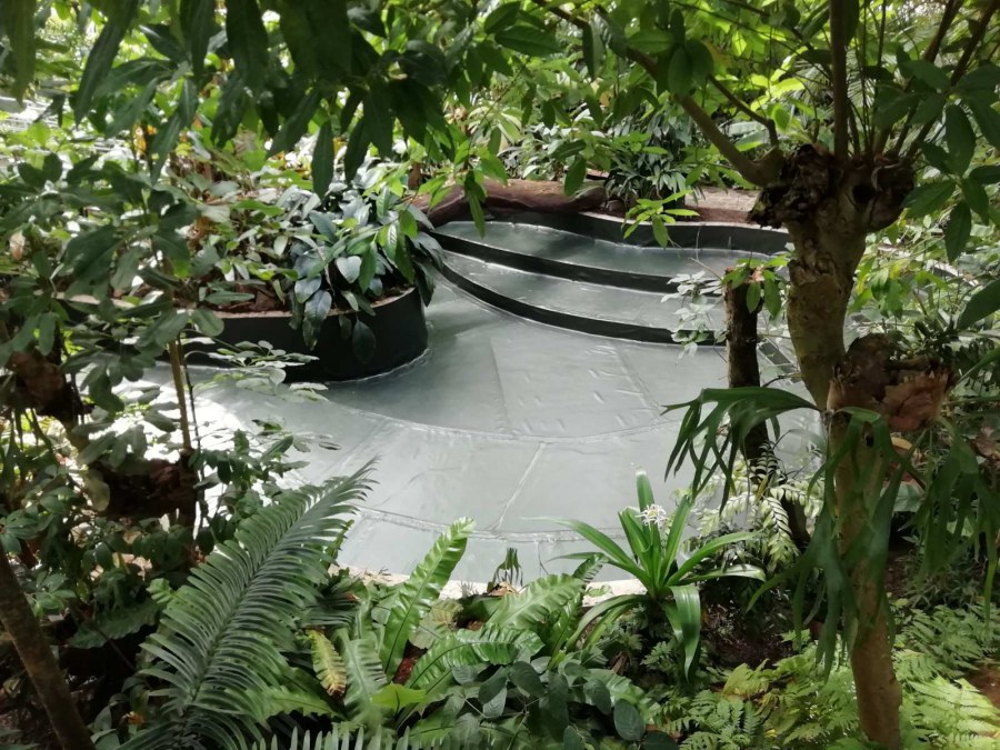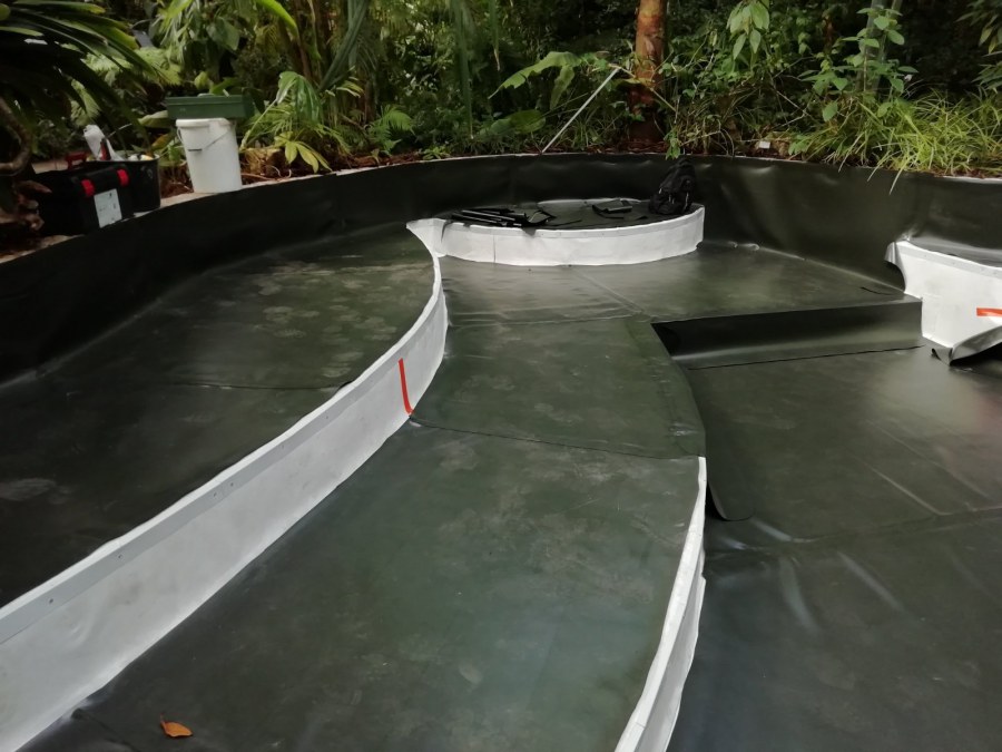 Velice rádi jsme přijali tuto zakázku opravy a vyfóliování jezírka v Botanické zahradě v Teplicích. Při konzultaci na místě jsme domluvili, že zaměstnanci sami zlikvidují starou fólii a vyčistí dno jezírka a potoky. Poté mohli začít naši technici s pokládkou fólie. Nejprve se položila fólie do potoků a pak se začalo s pokládkou fólie do jezírka. Jako první se položila geotextílie 500g, na hrany se přivrtali fóliové lišty a na ně se navařila fólie Fatra Aquaplast 805/V olivově zelená, přesně dle tvaru jezírka. Jezírko je zatím bez technologie.