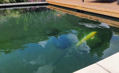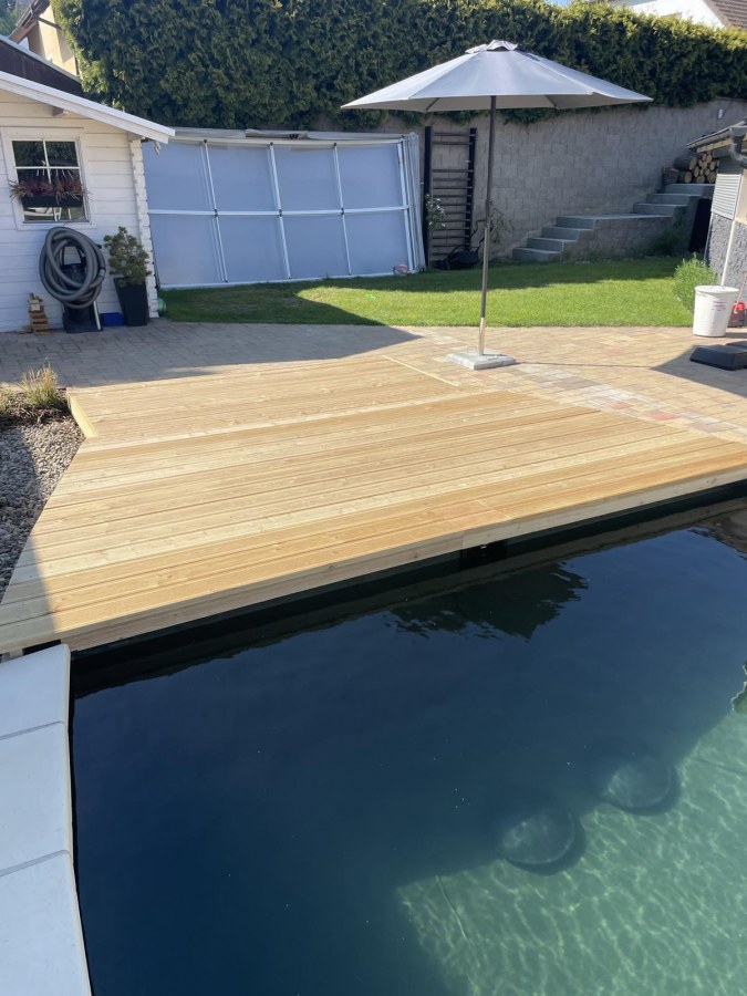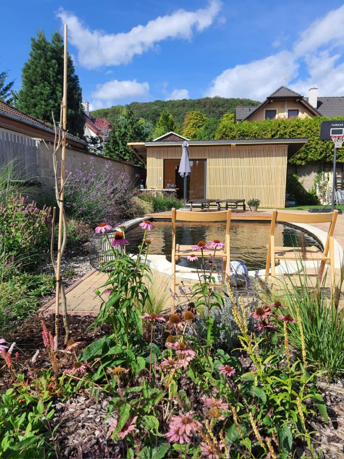 Přestavba nevyužívaného bazénu na koupací jezírko. Tato stavba byla v plánu již několik let. Až tento rok na jaře došlo na její realizaci. Z nevyužitého bazénu se při minimálních nákladech postavilo krásné okrasné jezírko s možností koupání.