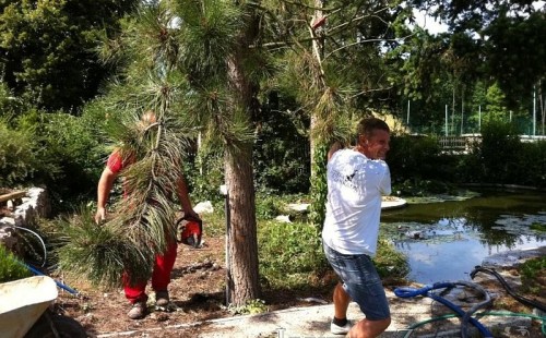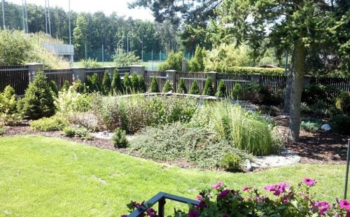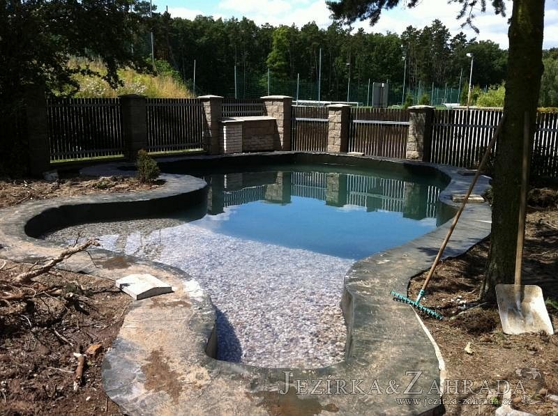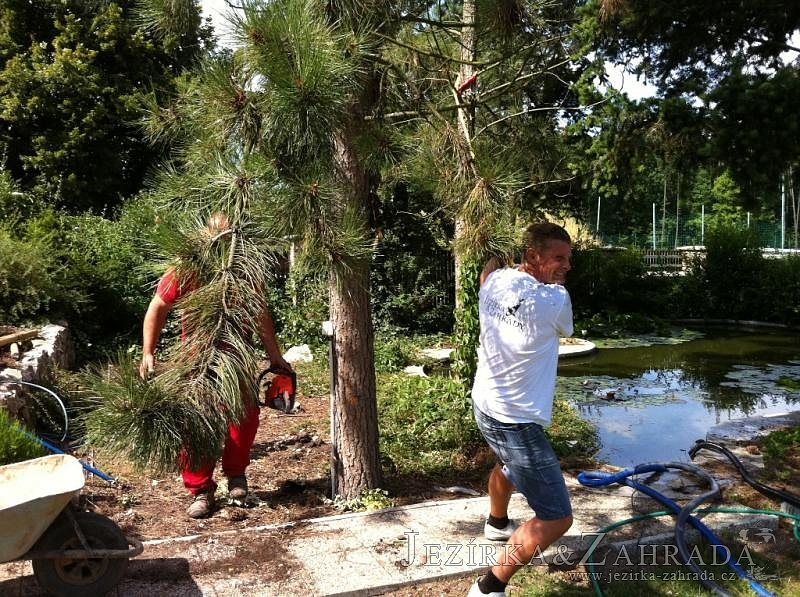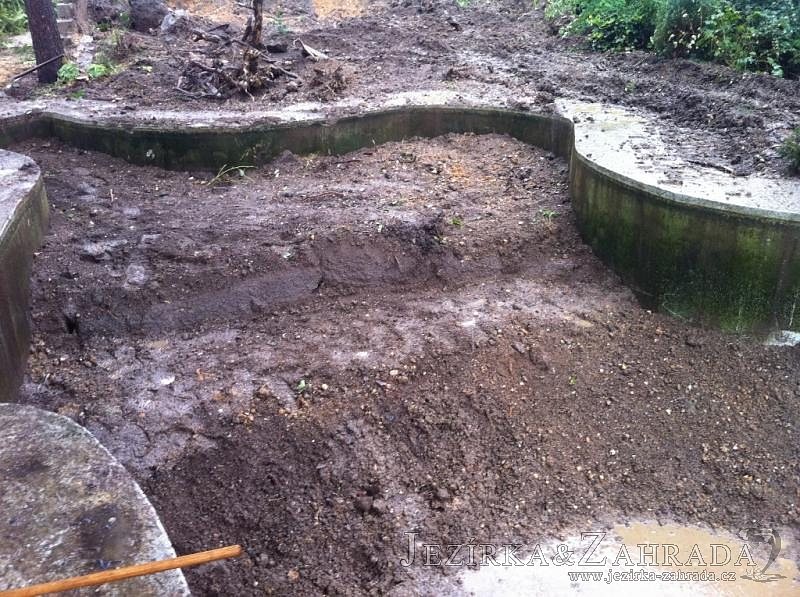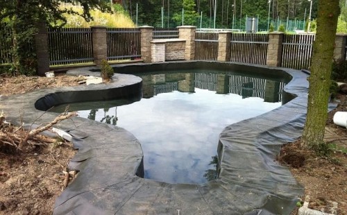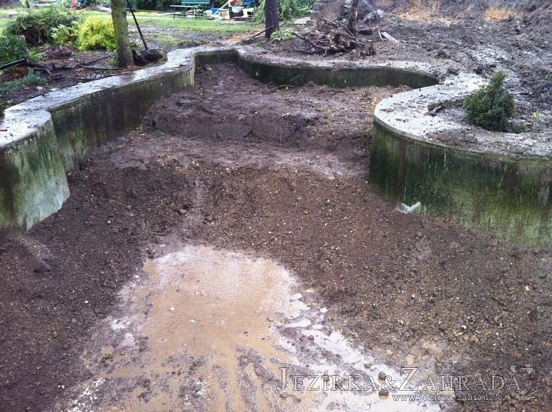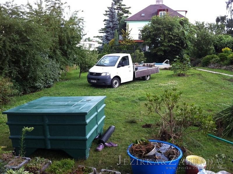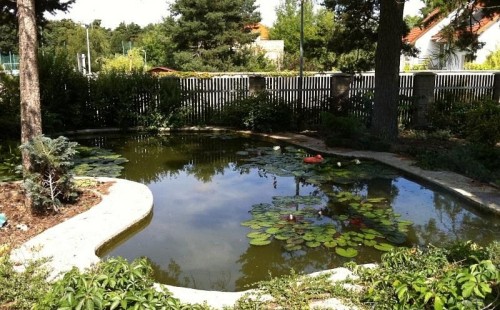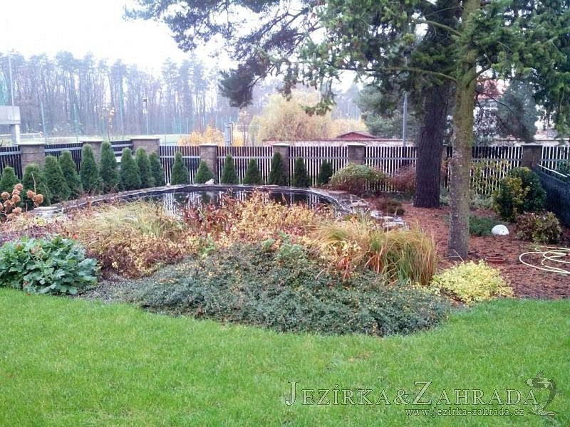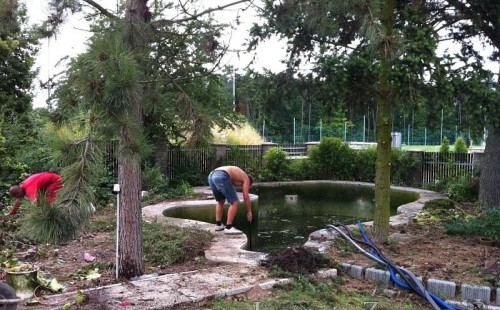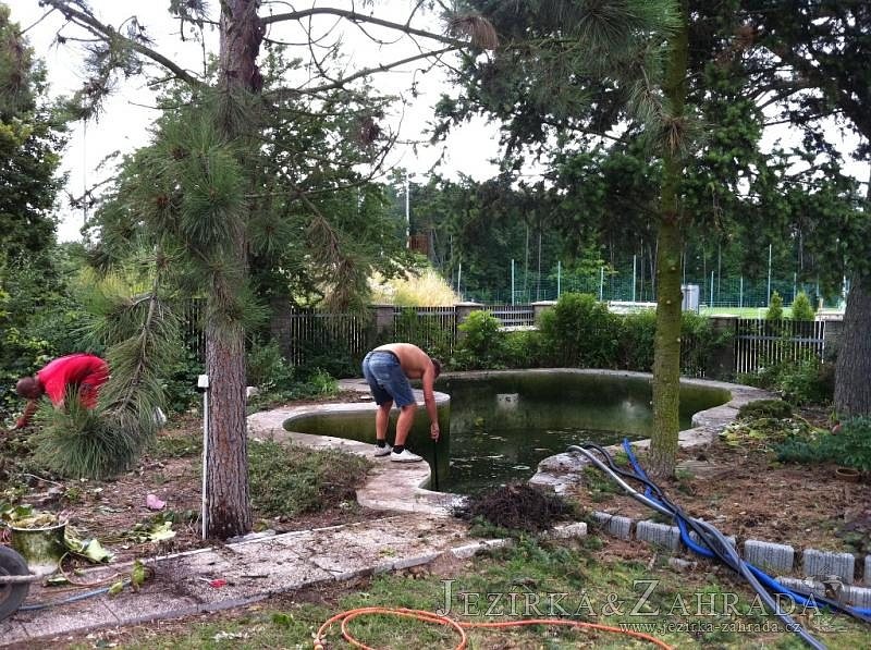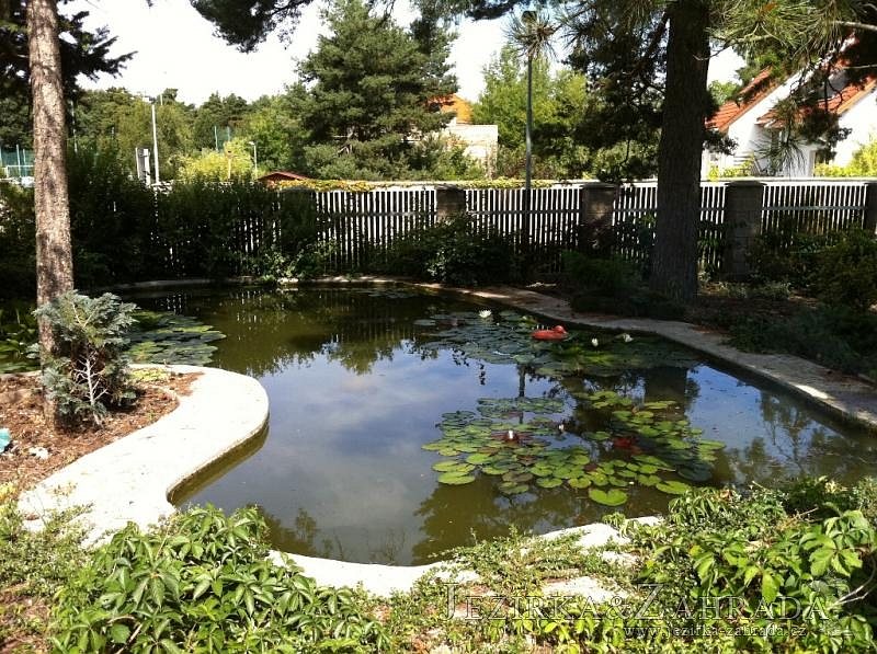 Dle přání zákazníka došlo k rekonstrukci staršího betonového jezírka. Celé jezírko bylo vyčištěno od letitých kalů, dále pak bylo částečně zmenšeno a vytvořili se pobřežní zóny. Položila se geotextílie 500g a svařila na míru kvalitní jezírková fólie Fatra Aquaplast 805 1,5mm olivově zelená. Do nově vytvořené pobřežní zóny se usadil skimmer Oase ProfiSkim 100, od něj se natáhla hadice k filtru, který se postavil cca 5m od břehu jezírka k plotu, kde bude přístupný ale nebude vidět. Použili jsme biologicko-mechanický filtr Tripond Center-Vortex C80, UV lampu TMC Pro Pond Advantage 110W, čerpadlo Jebao ECO-AMP 18000, vzduchovací motor Hailea HAP-80. K propojení technologie byla použita profi hadice 63mm.