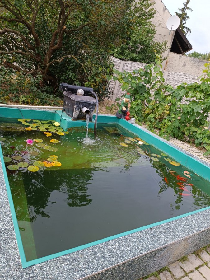 Již na podzim jsme u našich dlouholetých klientů naplánovali rekonstrukci tohoto malého jezírka. Jezírko bylo betonové, natřené impregnací proti průsaku vody, po letech bylo toto řešení nedostačující a tak jsme na jaro, před spuštěním technologie naplánovali jezírko vyfóliovat.