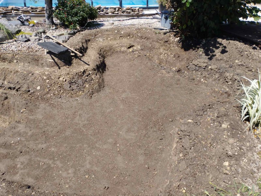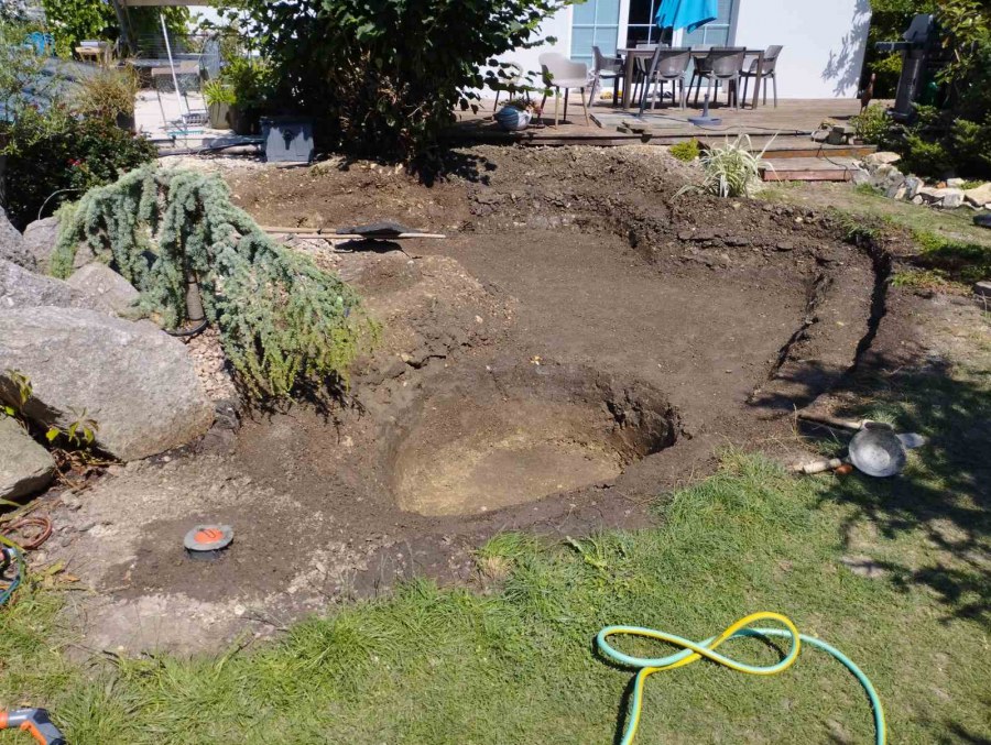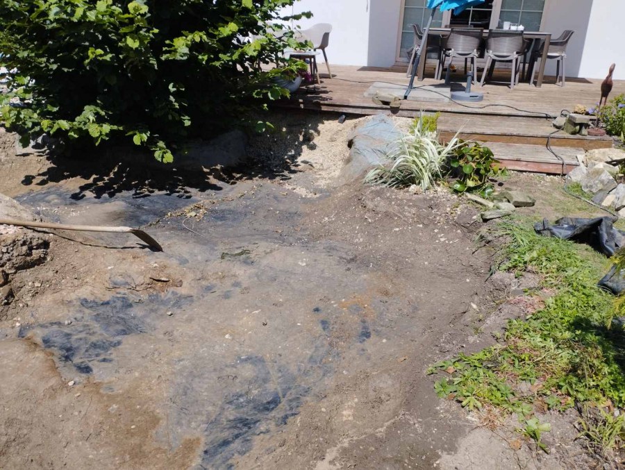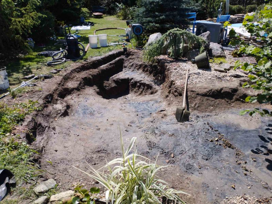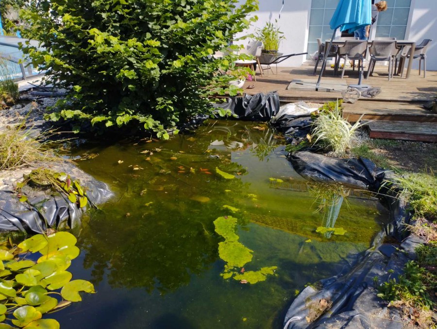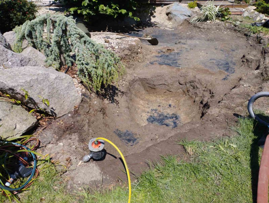 Rekonstrukce tohoto jezírka na klíč probíhala velmi rychle….klient se s žádostí o rekonstrukci trefil do zrovna uvolněného okna v našem kalendáři. Muselo se ale vše velmi rychle domluvit a začít s pracemi. Již za pár dní byl jasný plán prací. Jezírko se muselo vypustit, vylovit ryby, odstranit a uchovat vodní květiny…hlavně lekníny a zlikvidovat starou fólii. Poté se ručně upravil tvar jezírka, prohloubilo se a upravili se pobřežní zóny. Následně se na celý povrch dal kopaný písek, na který se položila geotextílie 500g na kterou se začala navařovat jezírková fólie Fatra Aquaplast 805/V olivově zelená. Po dokončení se mohli dát do pobřežních zón kameny Kubo a zasadit květiny. Hned poté se mohla začít napouštět voda. Technologii jsme zvolili jednoduchou na obsluhu filtr Oase BioSmart Screenmatic2 90000 na něj jsme pověsili UV lampu Oase Bitron C 55W a na dno jezírka jsme dali čerpadlo Jebao ECO FTP 10000, tento systém, jednoduchý na ovládání udrží vodu v jezírku krásně čistou celou sezónu.