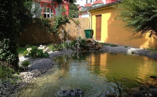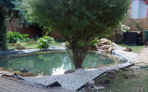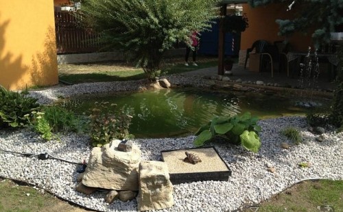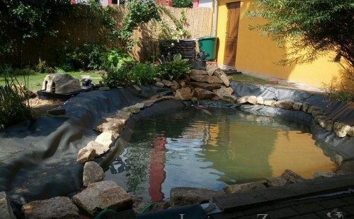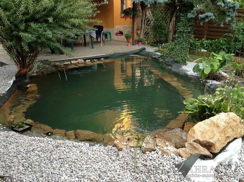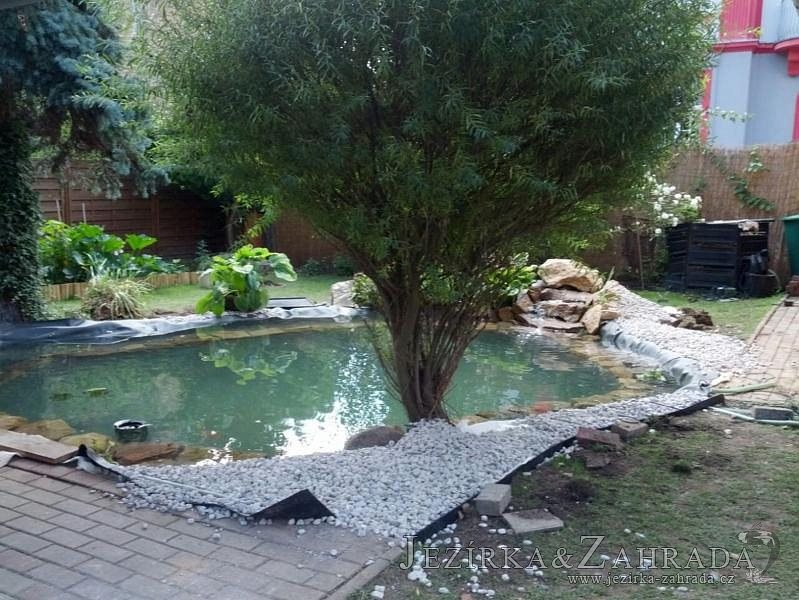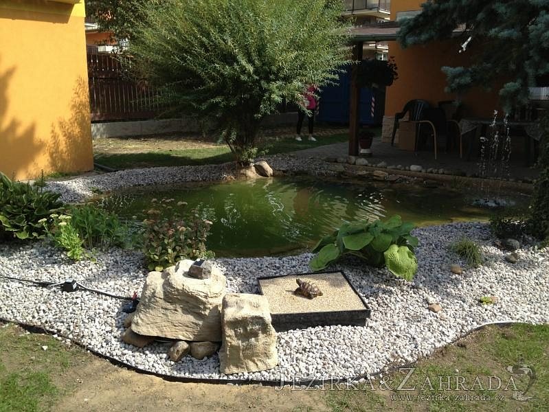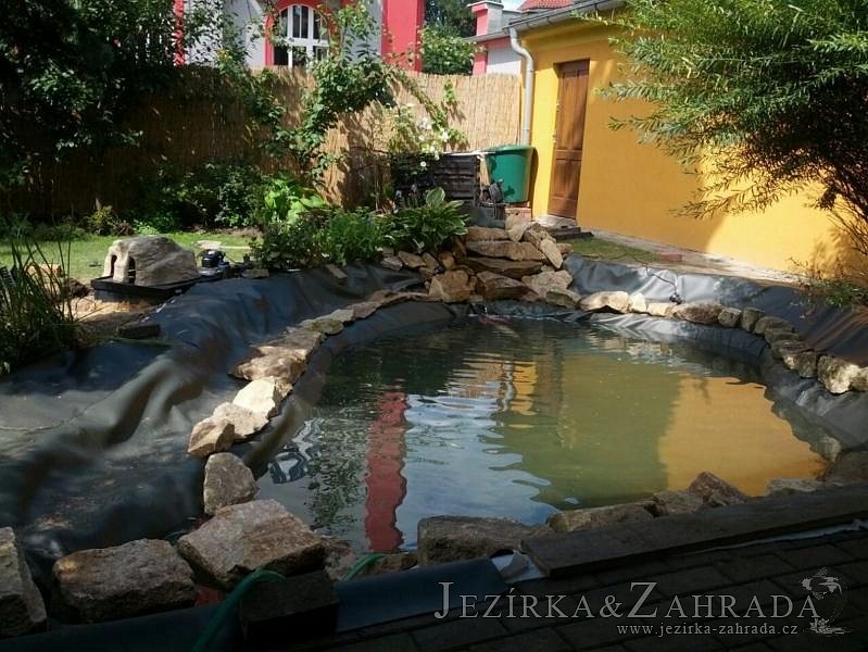 Na přání klienta bylo zvětšováno okrasné jezírko v Teplicích a s tím souviselo i dodání nové technologie. Jezírko se prohloubilo a zvětšilo, položilo se potrubí a vypískovalo se, položila geotextílie 500g a svařila jezírková fólie Fatra Aquaplast 805 1,5mm olivově zelená. Pro toto jezírko bylo navrhnuto: 1x filtr Oase FiltroClear 30000 včetně zabudované UV lampy 55W, čerpadlová šachta, čerpadlo Jebao ECO-FTP 8500, trubkový skimmer Oase AquaSkim gravity a gula dnová vpusť 110mm a na přání zákazníka fontána Oase Water Quintet. Z okrasných kamenů byl vystavěn malý vodopád a dále pak i celý obvod jezírka doplněný okrasným kačírkem.