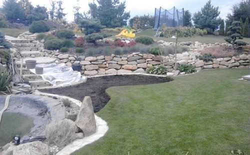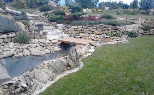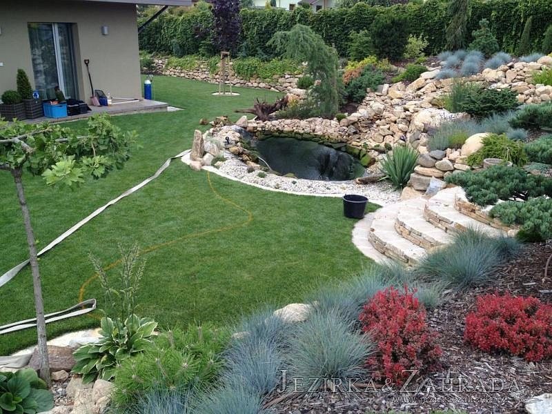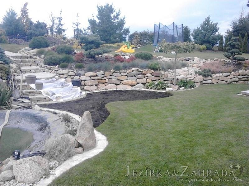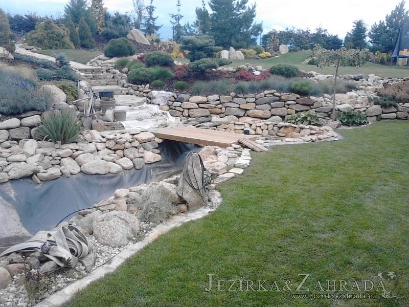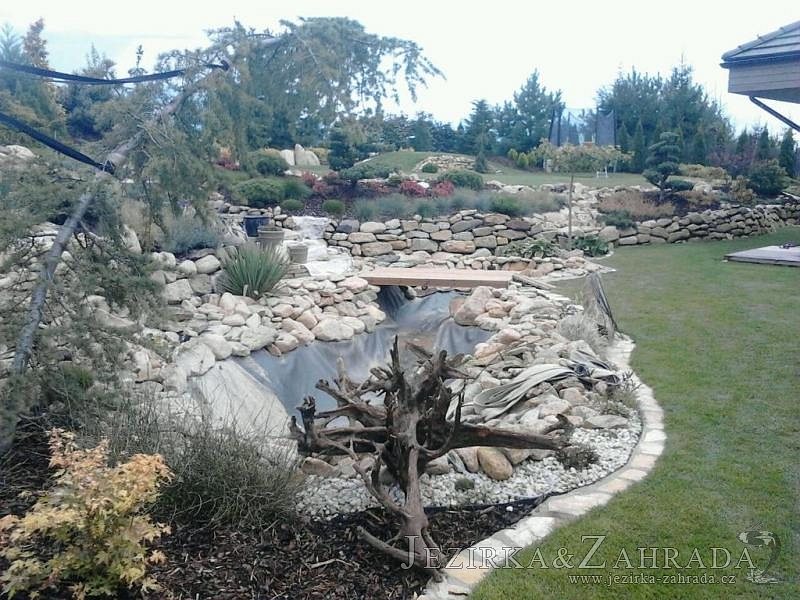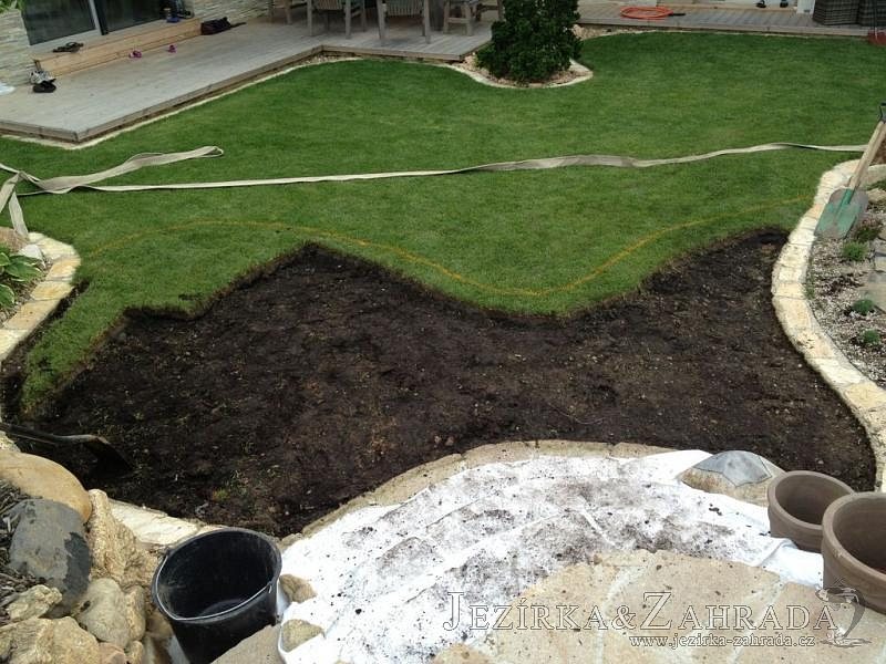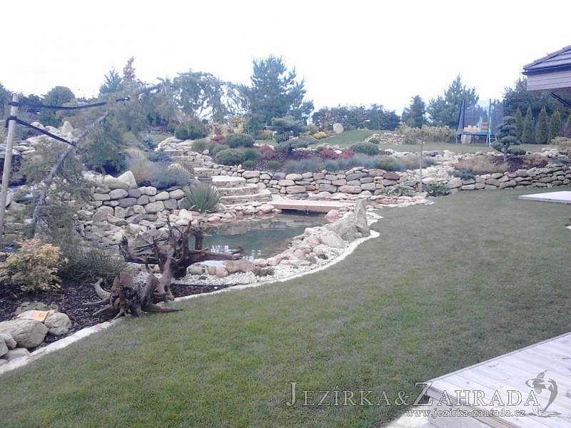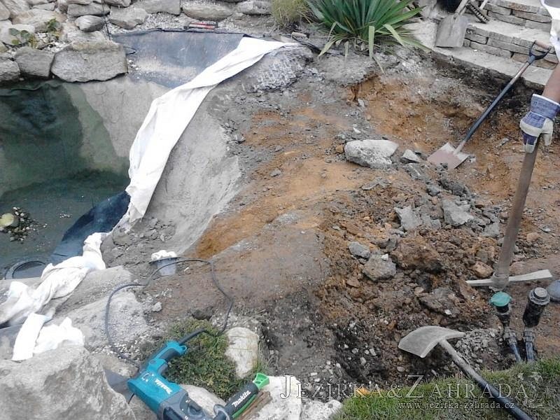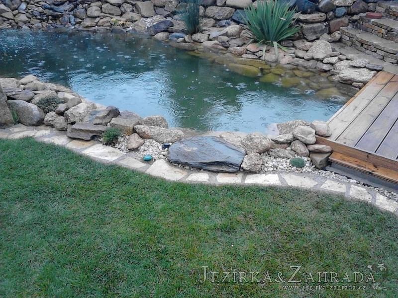 Na přání majitelů jsme provedli v září 2013 rozšíření stávajícího jezírka 6m3 na dvojnásobek. Filtrační zařízení Oase BioTec 18 ScreenMatic bylo nahrazeno filtrací Oase BioTec 36 ScreenMatic, k filtru se přidala UV lampa TMC Pro Pond Advantage 110W. Vzduchovací zařízení Hailea HAP-80, vzduchovací kámen placka 200mm. Osvětlení rozšířeno o další Oase LunAqua 3 LED set. Přes zúženou část jezírka instalována jednoduchá lávka z materiálu použitého na terase u domu. Při výkopu jezírka bylo třeba přeložit závlahový systém, zároveň s tímto bylo realizováno skryté napouštění jezírka aby odpadlo používání zahradní hadice. Z důvodu bezpečnosti bylo jezírko doplněno bambusovým plůtkem.