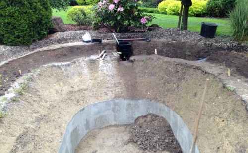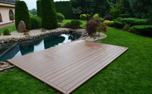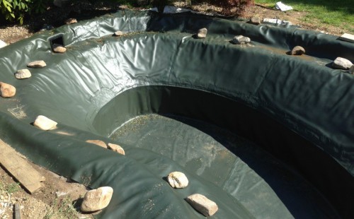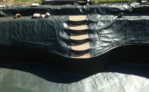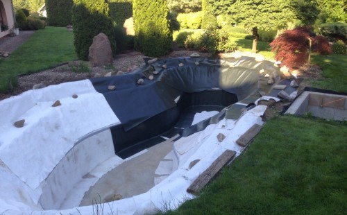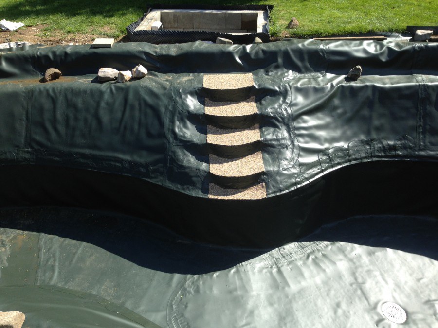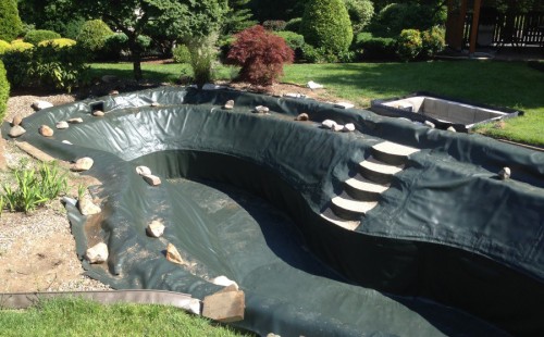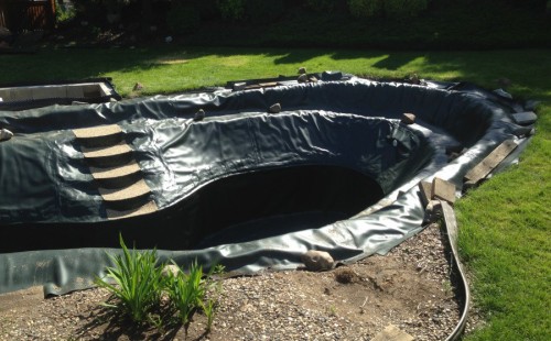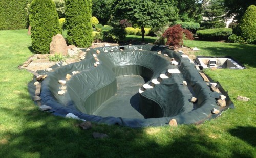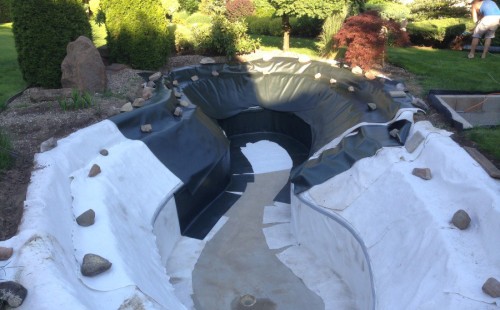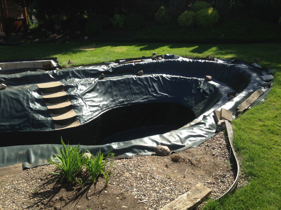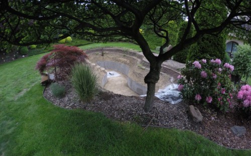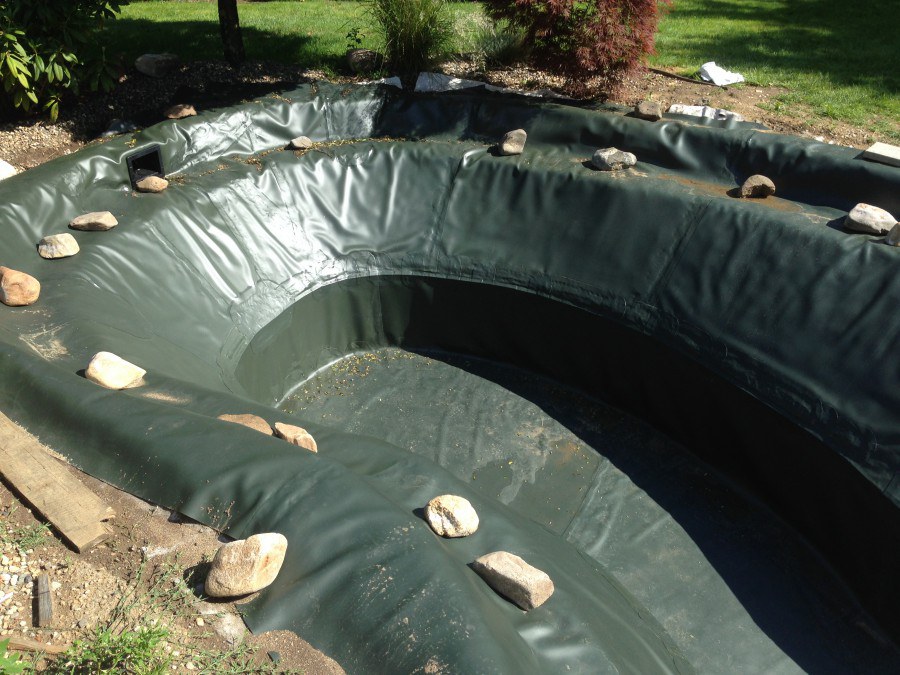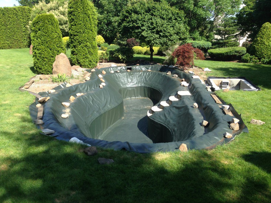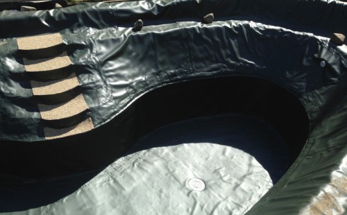 Zákazník si přál vystavět na své okrasné zahradě koupací jezírko s bazénovou technologií. Uprostřed této okrasné zahrady byl vytvořen požadovaný tvar a začalo se s výkopem jezírka + technické místnosti na bazénovou technologii. Položilo se potřebné potrubí pro technologii a zabetonovala se dno celého jezírka a spodní část stěn. Natáhla se geotextílie 500g, připevnila se speciální poplastovaná lišta a začala se svařovat fólie Fatra Aquaplast 805 1,5mm. Uprostřed jezírka byly vytvořeny schůdky, ty se po vyfóliování ještě polepily kamínkovou fólií. Pro tento systém bylo navrženo: bazénový filtr Azur Kit a čerpadlo Preva, 2x, podlahová tryska Kripsol, bazénová spodní gula a skimmer. Plastovou terasu přes technickou místnost dodávala firma NMC CZECH s.ro., kterou Vám vřele doporučujeme.
