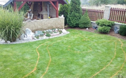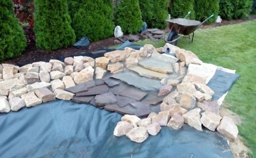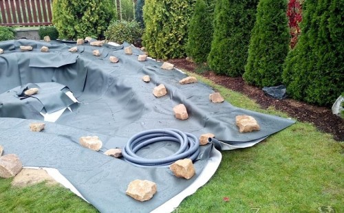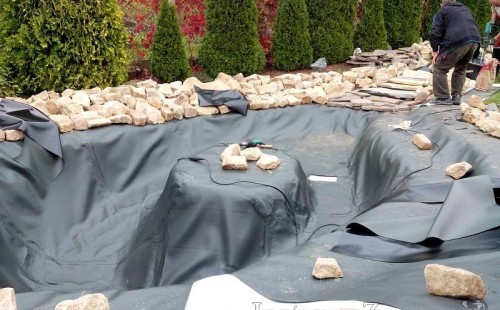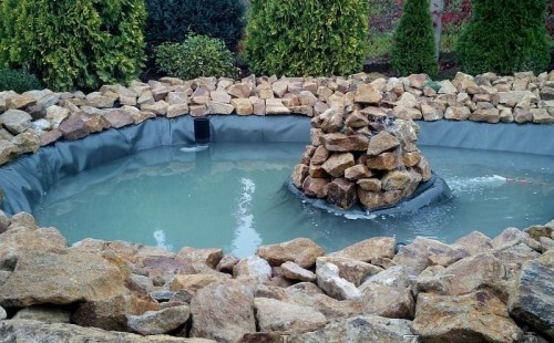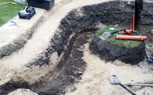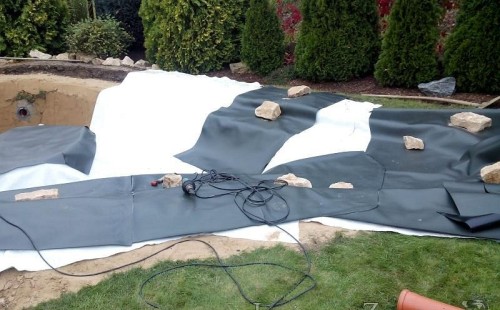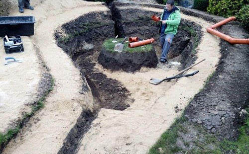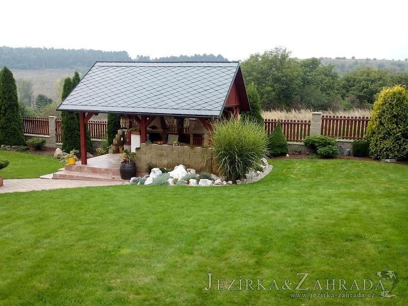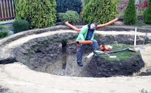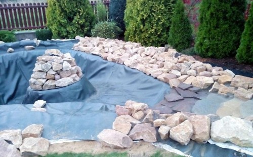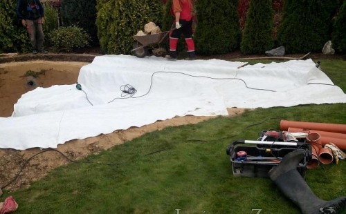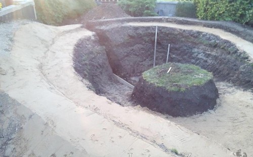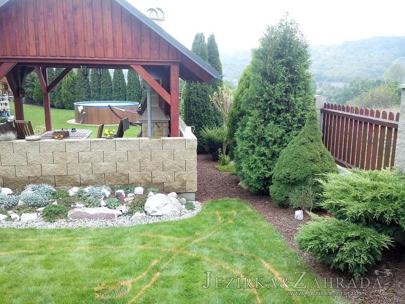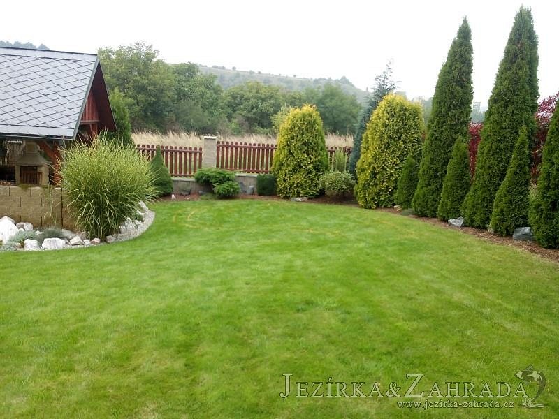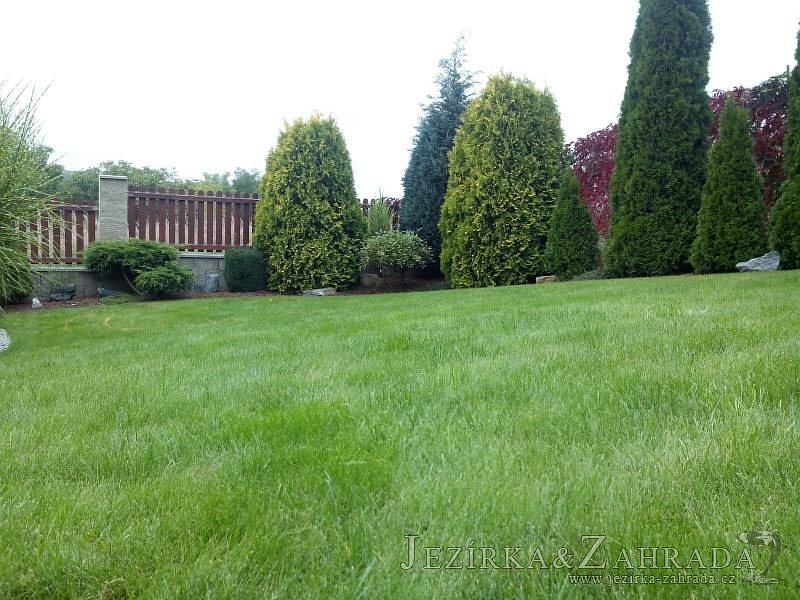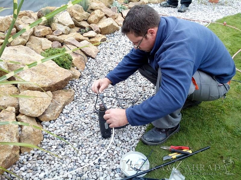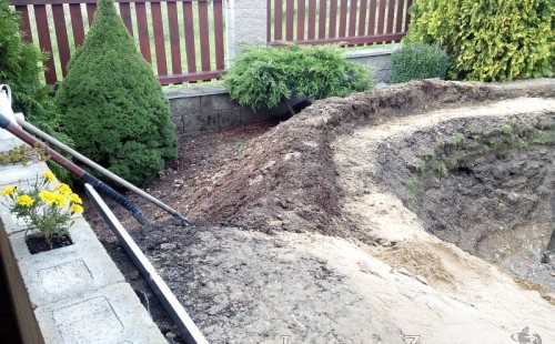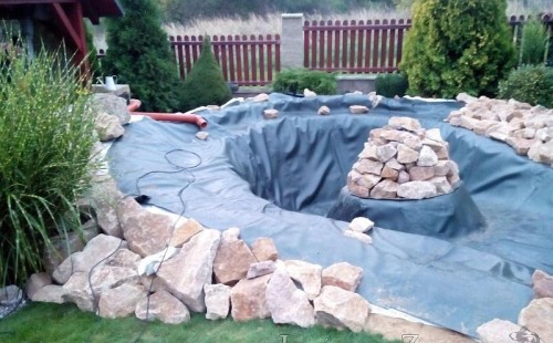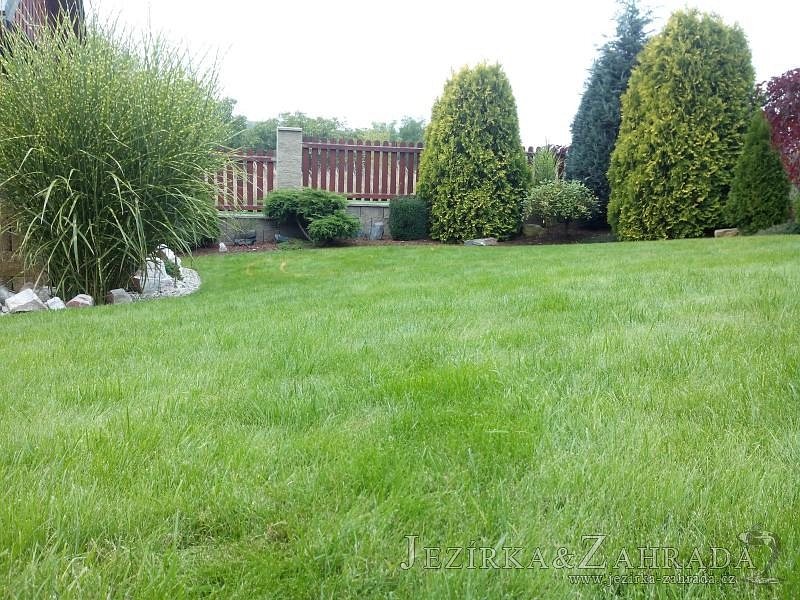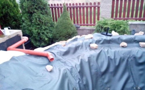 Tato realizace jezírka byla jedna z nejrychleji postavených jezírek. Zákazník se shlédl v jezírku, které máme vystavěno u naší firmy v Okružní ul. v Mostě. Ihned si sjednal schůzku s p. Studentem, kde došlo k navržení technologie a postupu prací. Odpoledne se začalo s vytíčením jezírka a následně i s výkopem. Cca. za 2 dny bylo jezírko připraveno pro položení spodní vpusti-gule, do stěny se připevnila fóliová příruba pro skimmer Oase Aquaskim Gravity. Následně se jezírko vypískovalo kopaným pískem, položila se geotextílie 500g a začalo se s pokládkou jezírkové fólie Fatra Aquaplast 805 1,5mm olivově zelené. Navržená technologie: průtokový filtr Oase BioTec 30, UV lampa Oase Bitron C 72W, čerpadlo na systém Jebao ECO-FTP 6500, čerpadlo na efekty Jebao ECO-FTP 8500, vzduchovací motor Hailea HAP-60 a osvětlovací set Oase LunAqua Classic LED set 3. Po zapojení technologie si klient dotvořil jezírko kameny a osázel květinami. Celé jezírko bylo dokončeno cca. za týden.