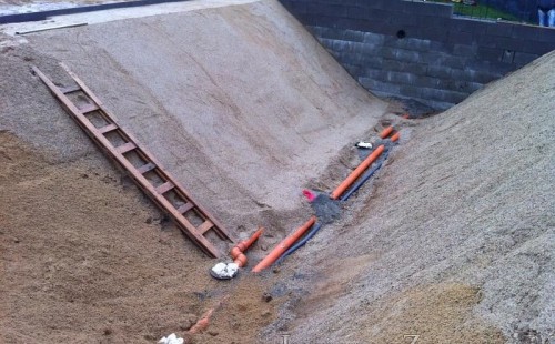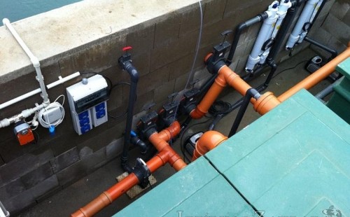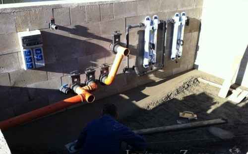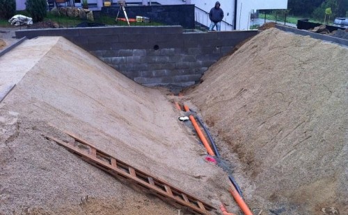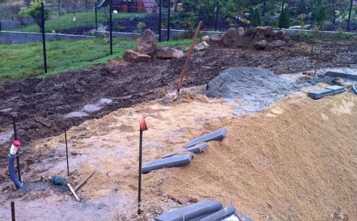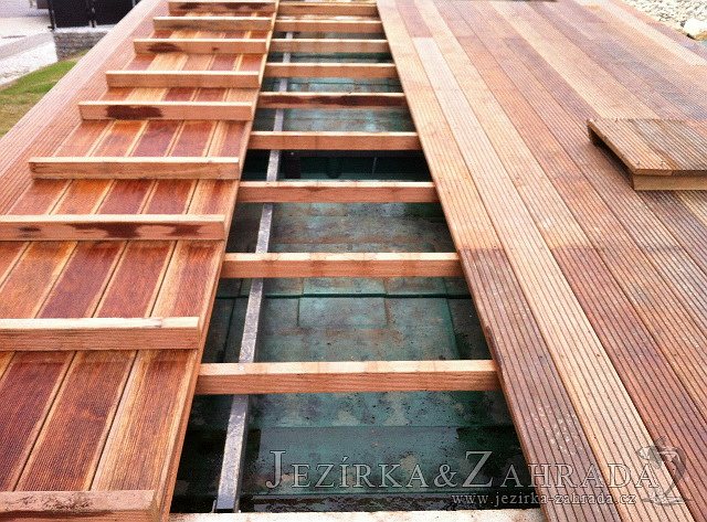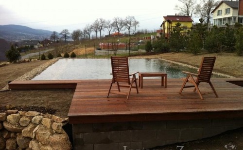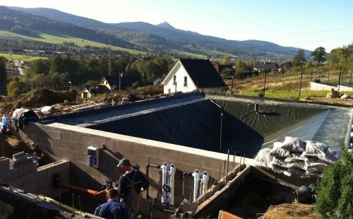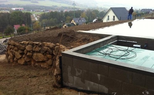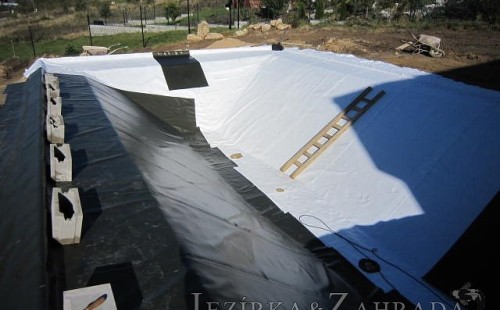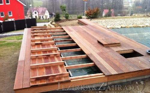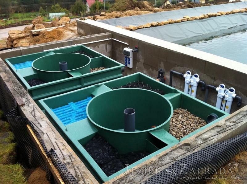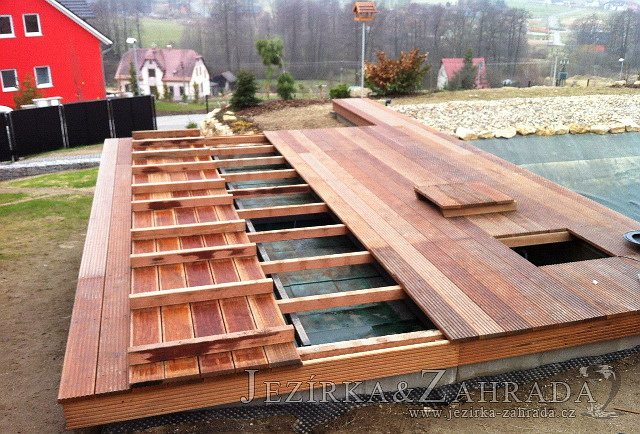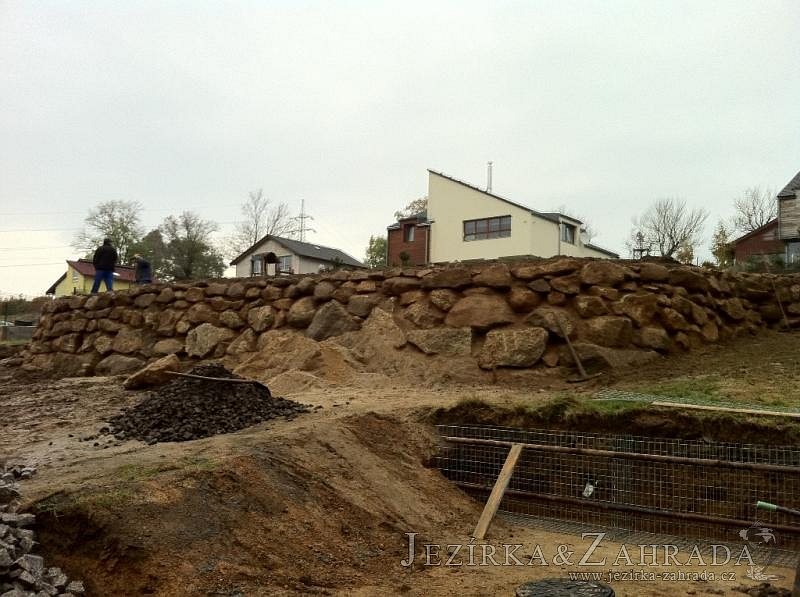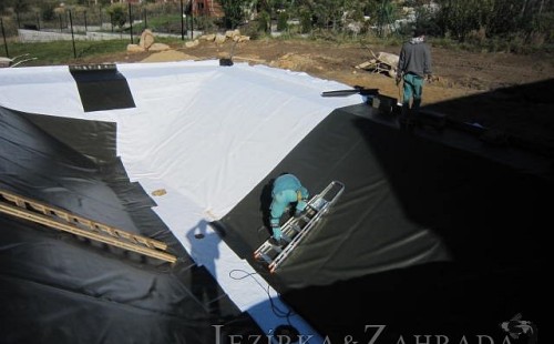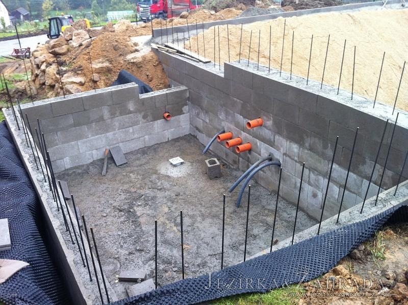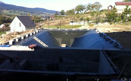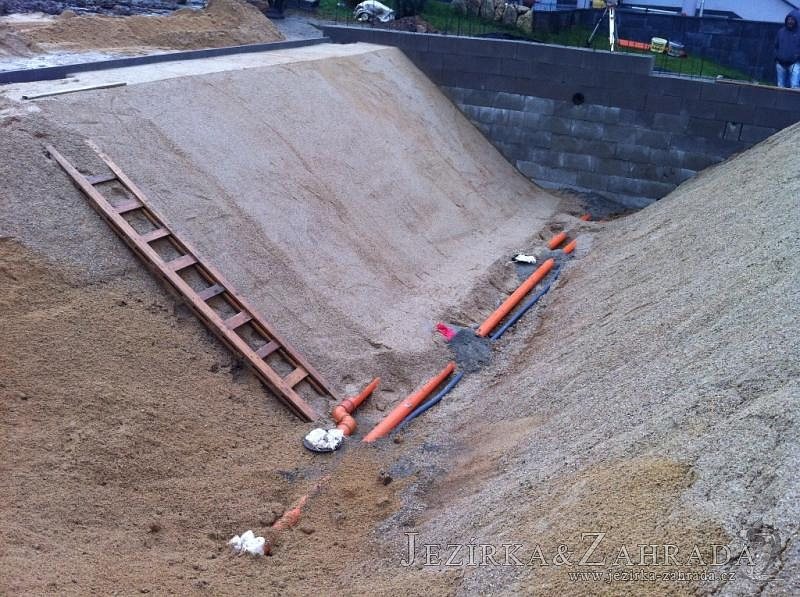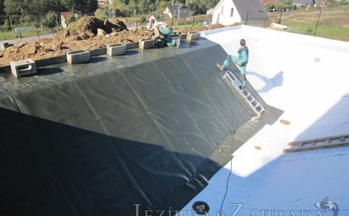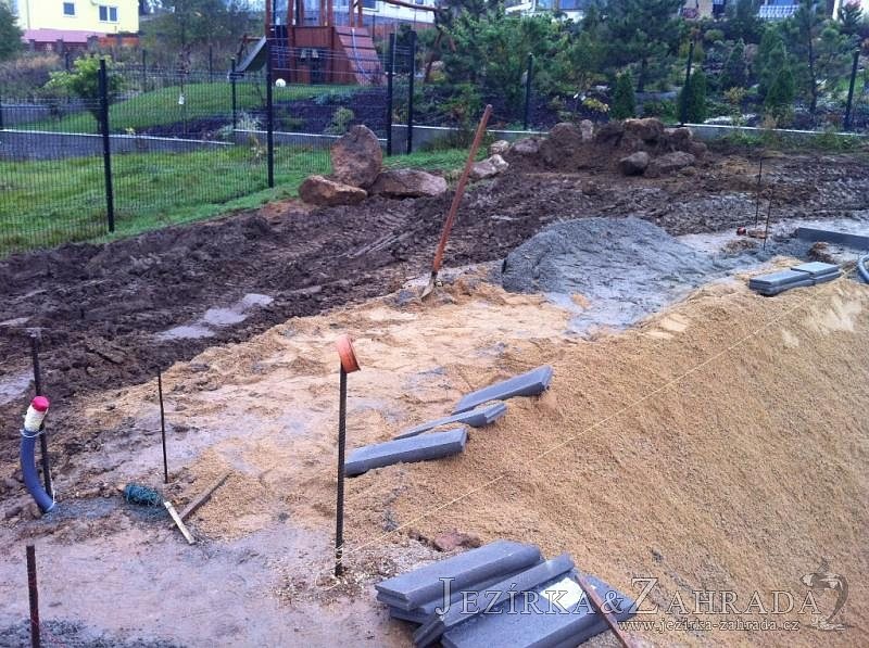 U této realizace se jednalo o kompletní stavbu moderního okrasného jezírka. Jezírko se vybagrovalo, zpevnili se stěny betonovým potěrem a ze ztraceného bednění se postavila technická místnost. Na dno jezírka se položily spodní vpusti-gule a do stěny se připevnila fóliová příruba pro skimmer Oase Aquaskim Gravity, od nich se natáhlo potrubí do technické místnosti, tam se uzavřelo šoupaty 110mm. Jezírko se pokrylo kopaným pískem, na něj se položila geotextílie 500g a následně se začala pokládat jezírková fólie Fatra Aquaplast 805/V olivově zelená. Byla zde navrhnuta technologie: 2x filtr Tripond Center-Vortex C115, 2x UV lampa TMC Pro Pond Advantage 110W, 1x čerpadlo Messner eco X-20000l/hod. a vzduchovací zařízení AquaForte V-60. Součástí jezírka je vodotrysk se samostatným čerpadlem Oase Nautilus 450 s tryskou Oase 35-10E. Technická místnost je ukryta v těsné blízkosti jezírka pod dřevěným molem. Na přání klienta bylo do systému namontováno zařízení pro automatické dopouštění vody, hladinový spínač Belimo. Osvětlení jezírka: 2x Oase LunAqua Led set 3.