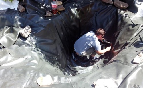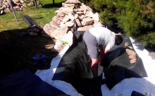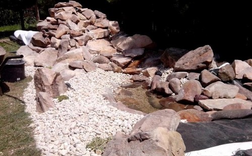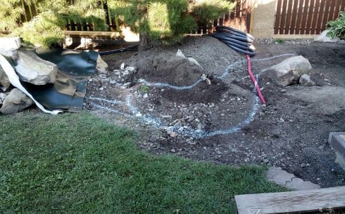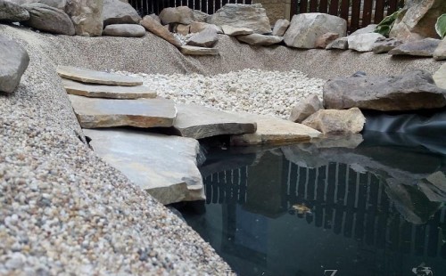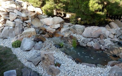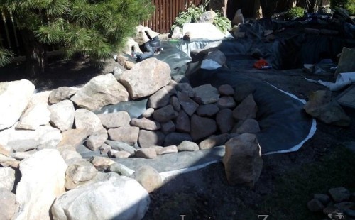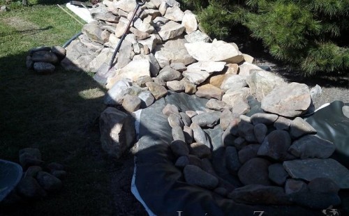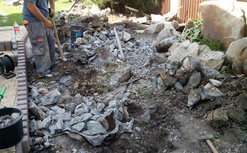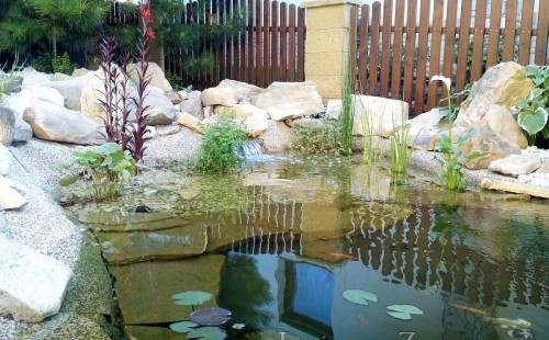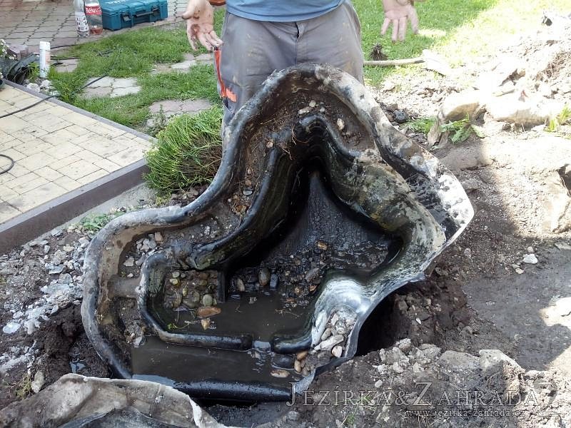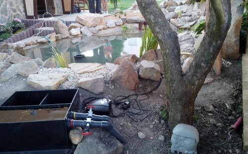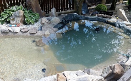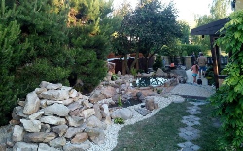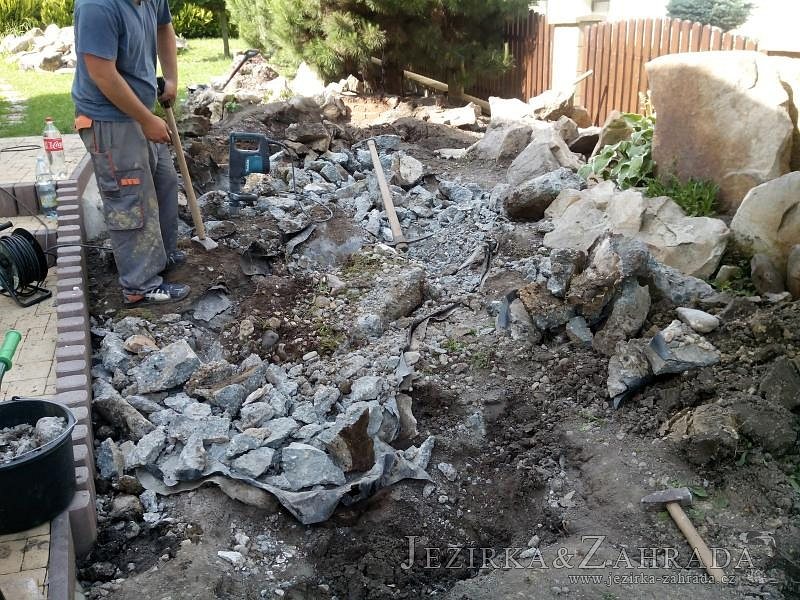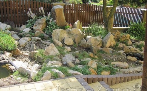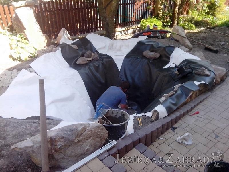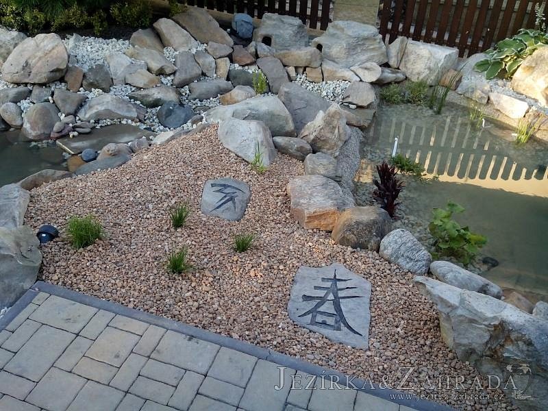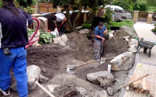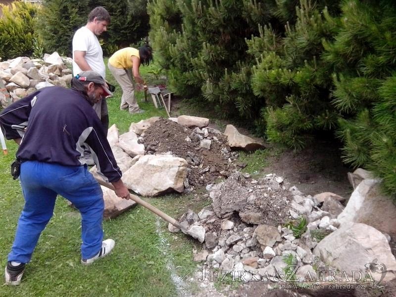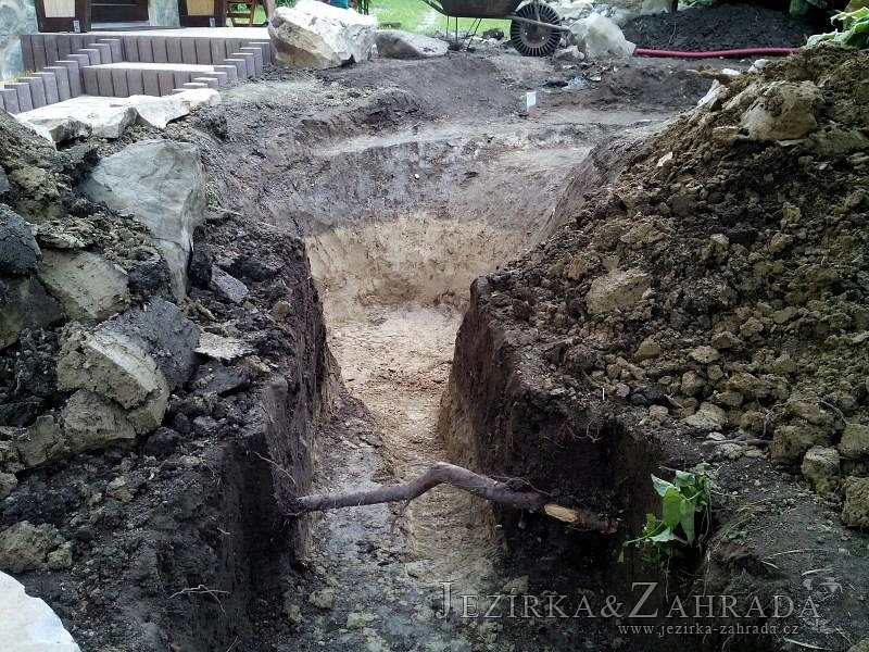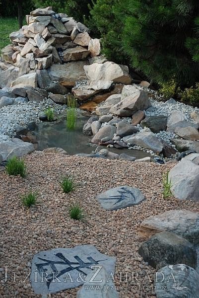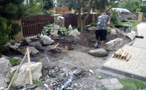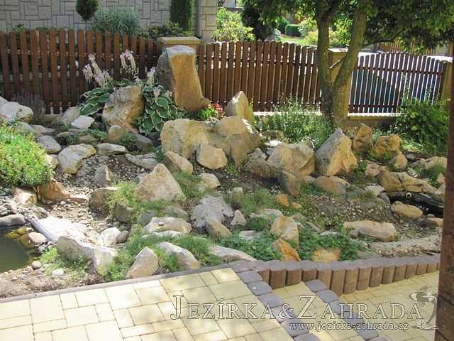 Tato výstavba je perfektní ukázkou toho, že i v menším prostoru se dá vybudovat okrasné jezírko s vodopádem a potůčkem, které rozhodně stojí za pohled. Celý prostor byl jen hrubě vyznačen, ale po doladění terénu a usazení čerpadlové šachty, dnové vpusti a potrubí byl vidět každý kus práce. Vodopád je rozdělen na dvě části. Vrchní proud skrze flexi hadici pohání čerpadlo Aquaking ECO-FTP 6500 a spodní Aquaking ECO-FTP 10000, které jsou uložena v čerpadlové šachtě. Přes potok s tůňkou teče voda až na terasy jezírka u kterého se o filtraci starají tlakové filtry Oase FiltoClear 30000, které velmi dobře schová krycí kámen Oase Filtocap. Čistou hladinu udržuje trubkový skimmer Oase AquaSkim Gravity a celý prostor světelně doplňují dvě sady světel Oase LunAqua LED set 3. Pro vzduchování byl použit set Oase AquaOxy 1000. Na přání zákazníka jsme dodali okrasný kačírek, ve kterém se vyjímají nášlapné kameny s ornamenty, které pocházejí z vlastní výroby. Z naší nabídky si vybrali i jezírkové rostliny a okrasné kameny, které lemují břeh jezírka. Po vsypání startovacích bakterií do filtrace se jen čekalo na správné uzrání a v současné době jsou ve vodě i první ryby.