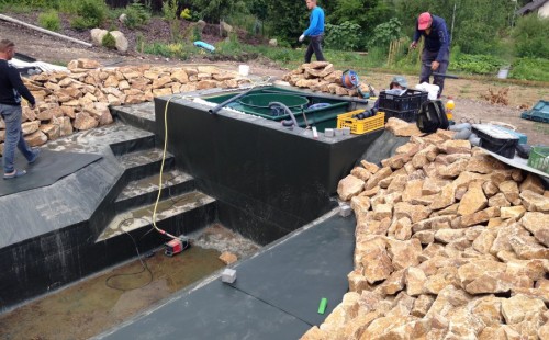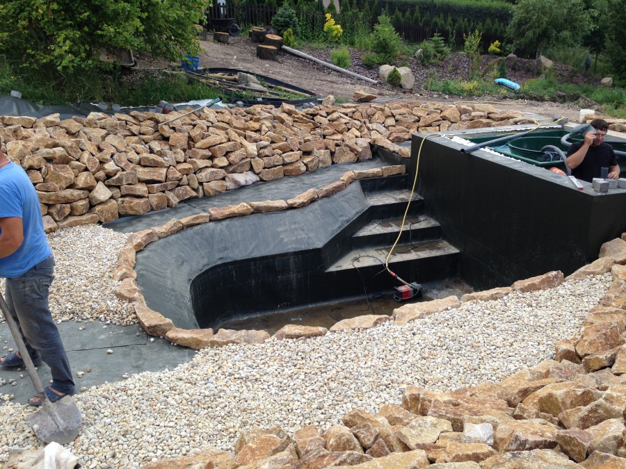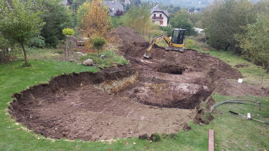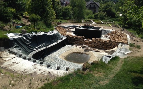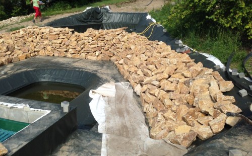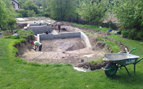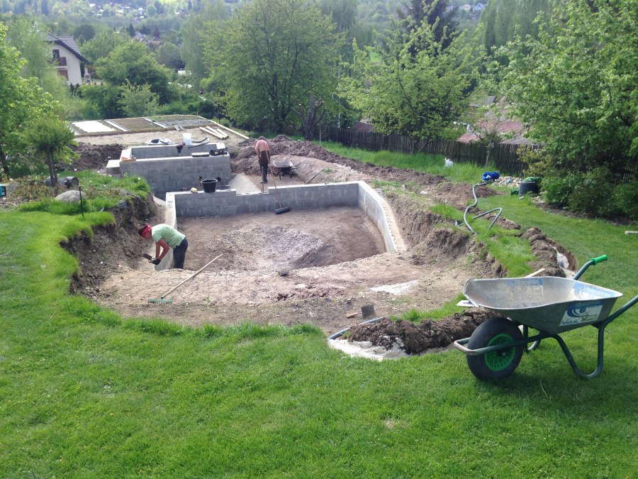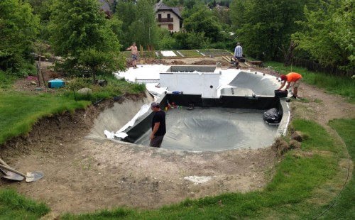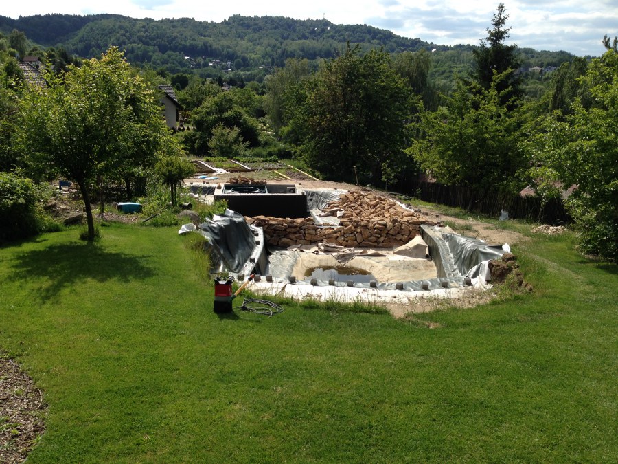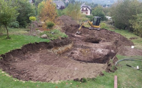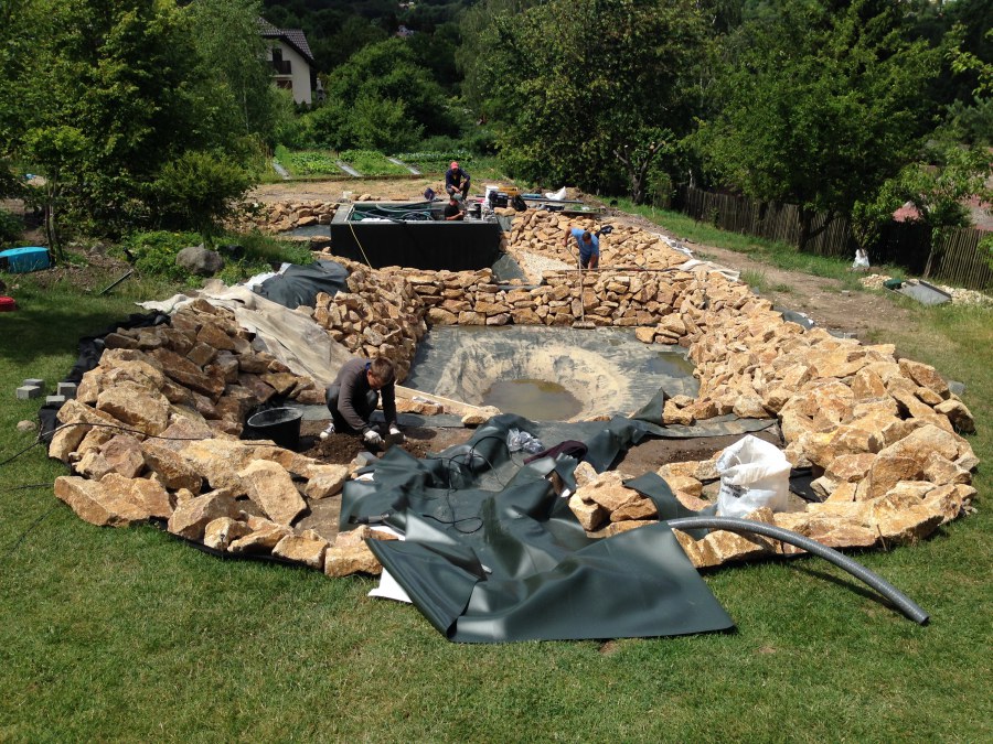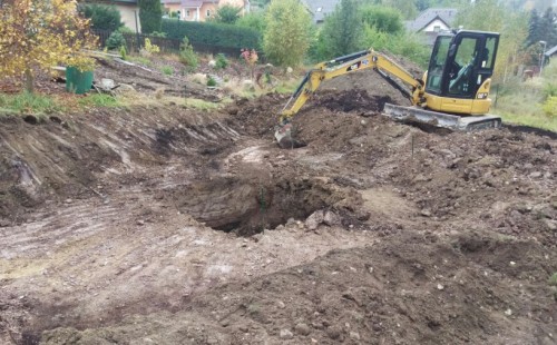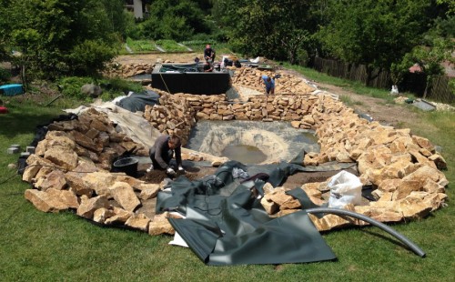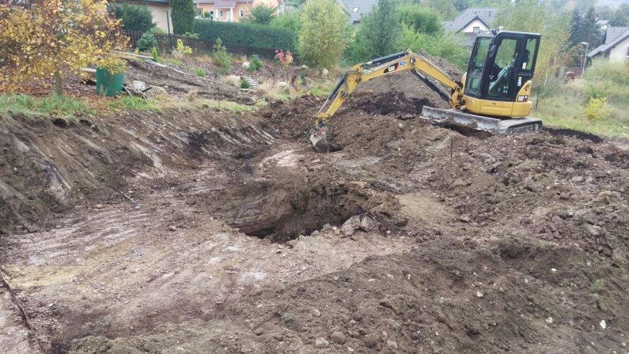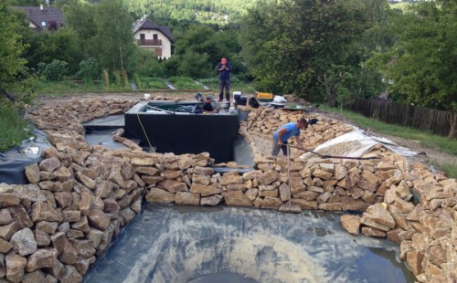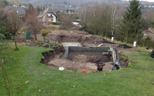 - Stavba jezírka v Karlových Varech.