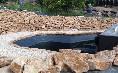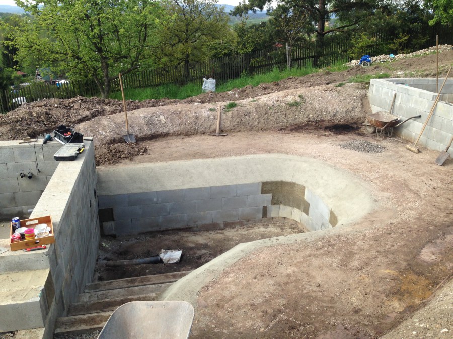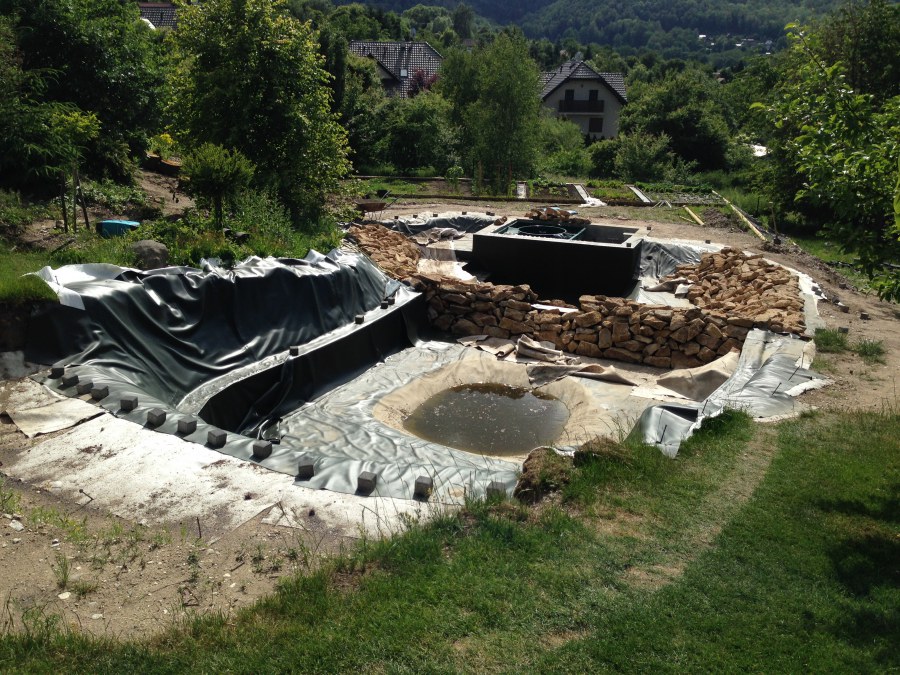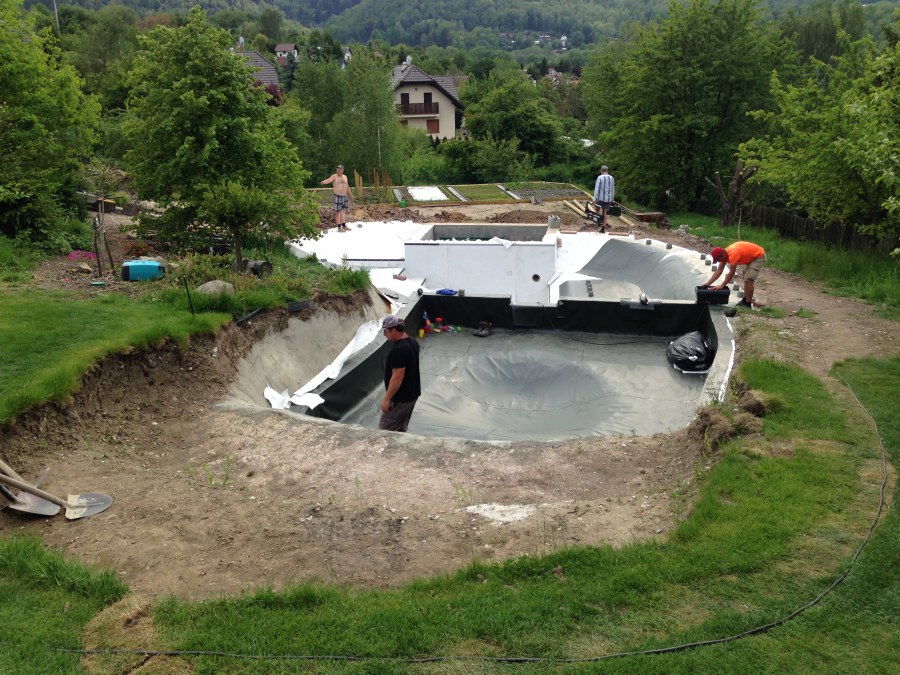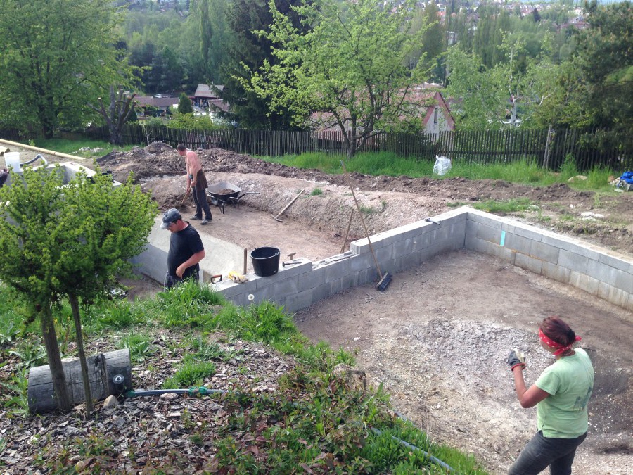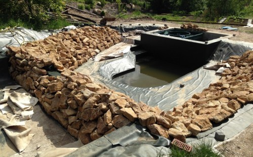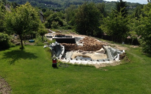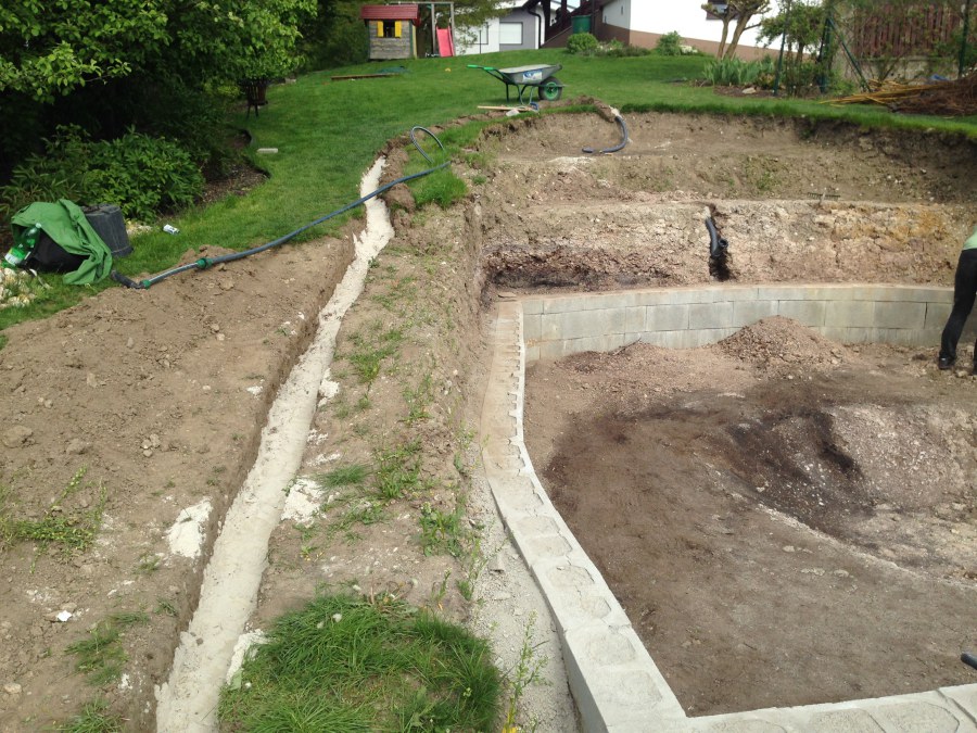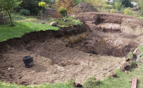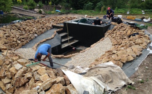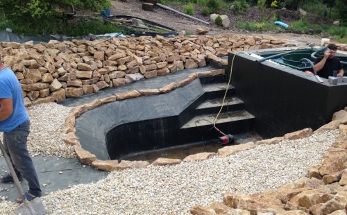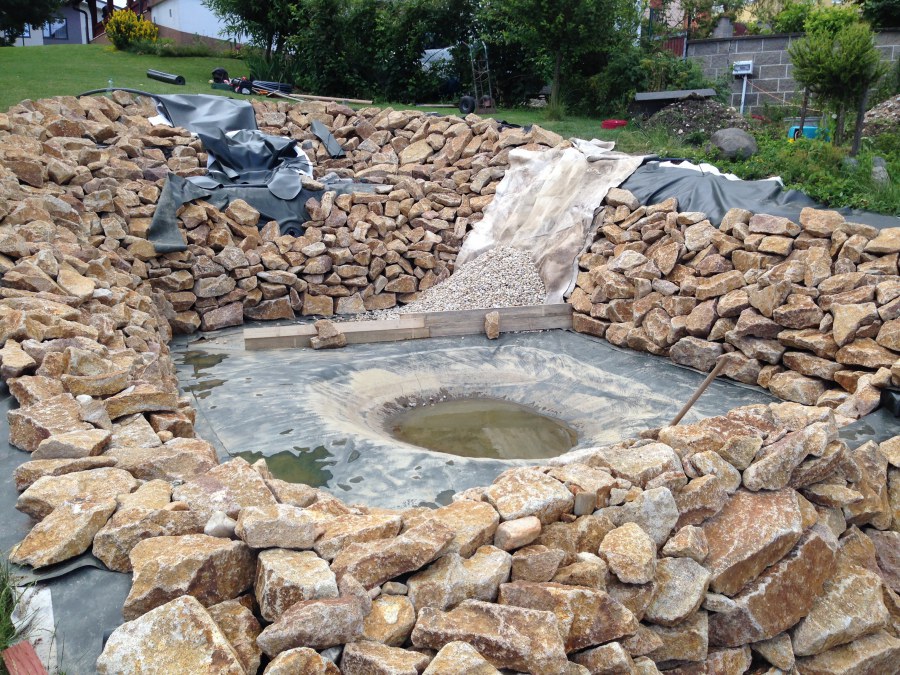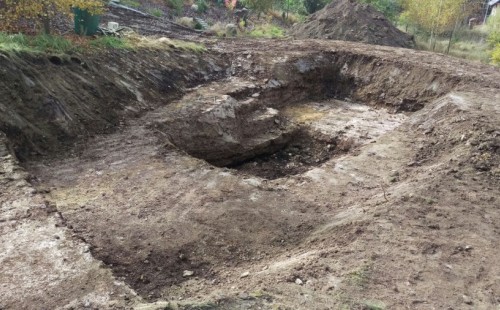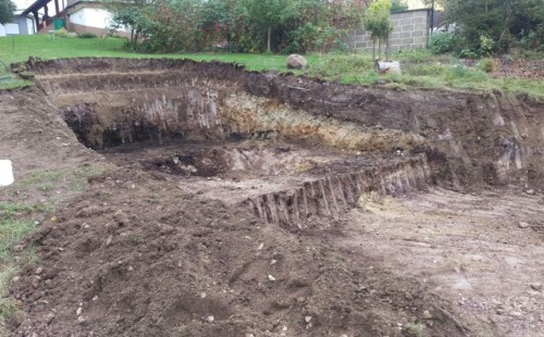 - Stavba jezírka v Karlových Varech.