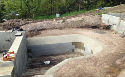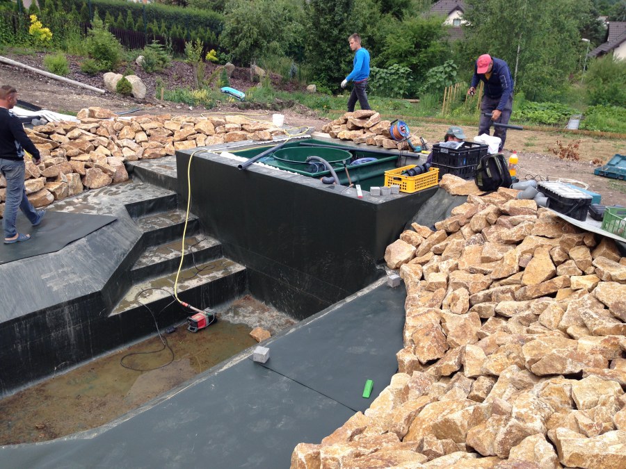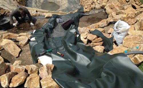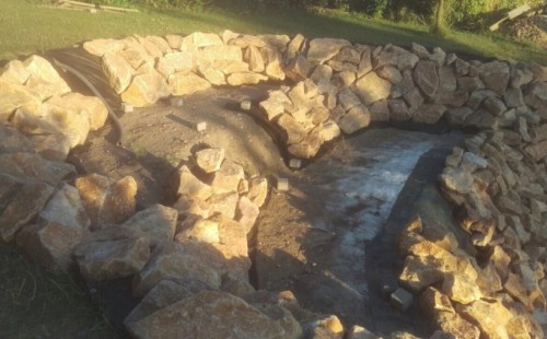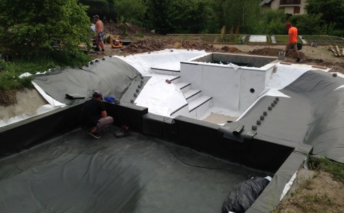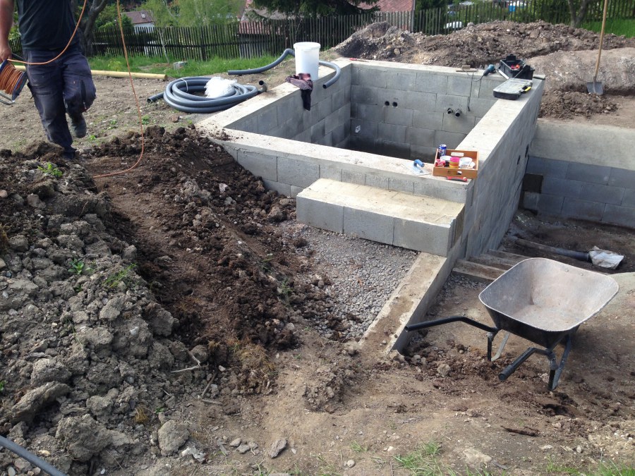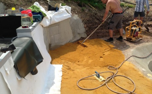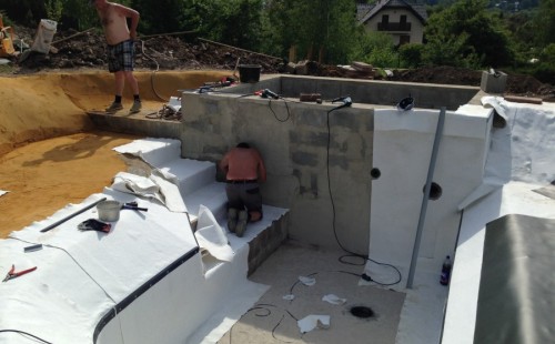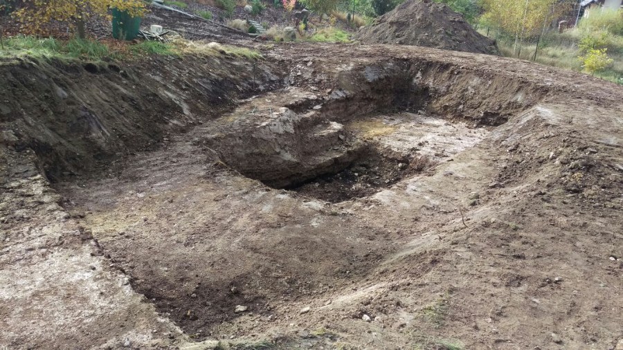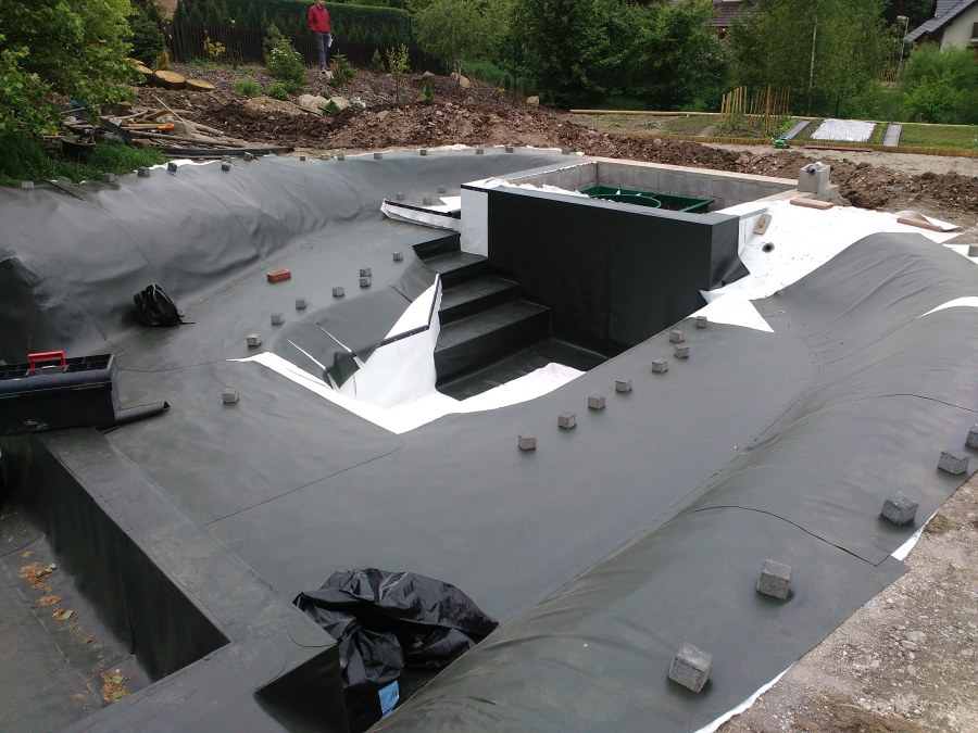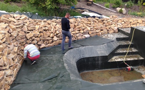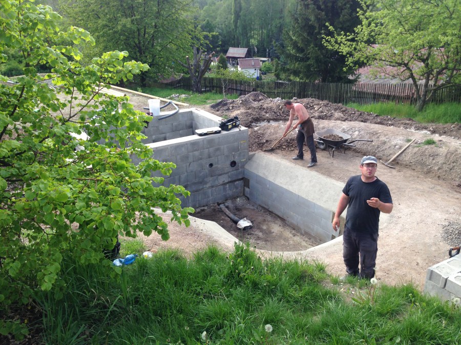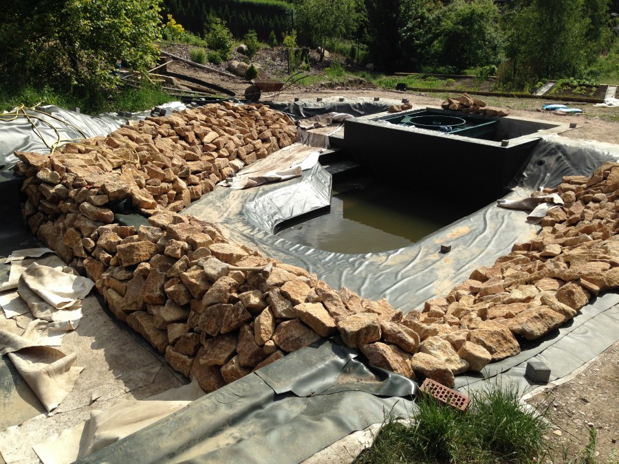 - Stavba jezírka v Karlových Varech.