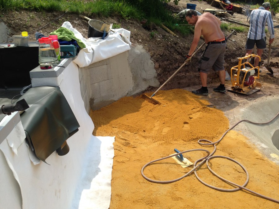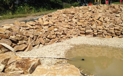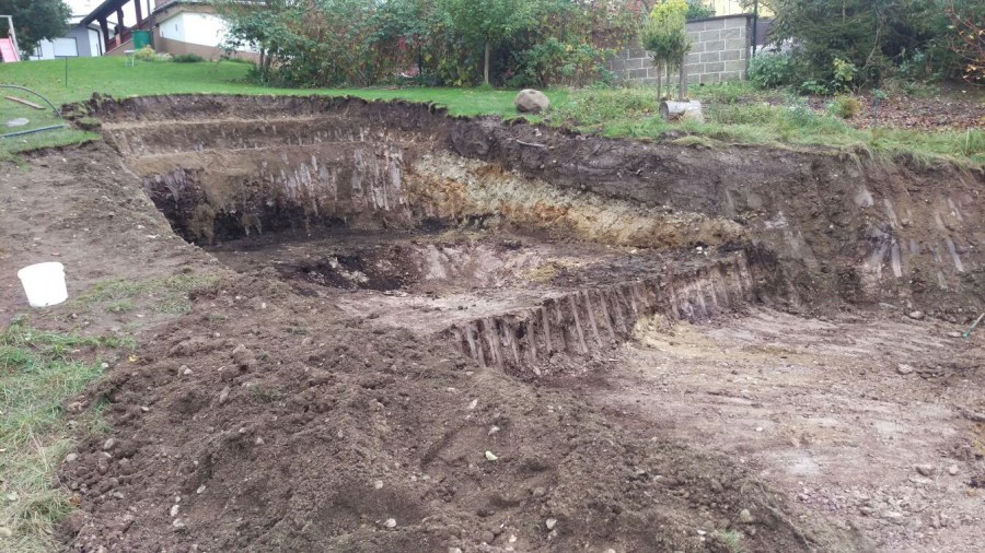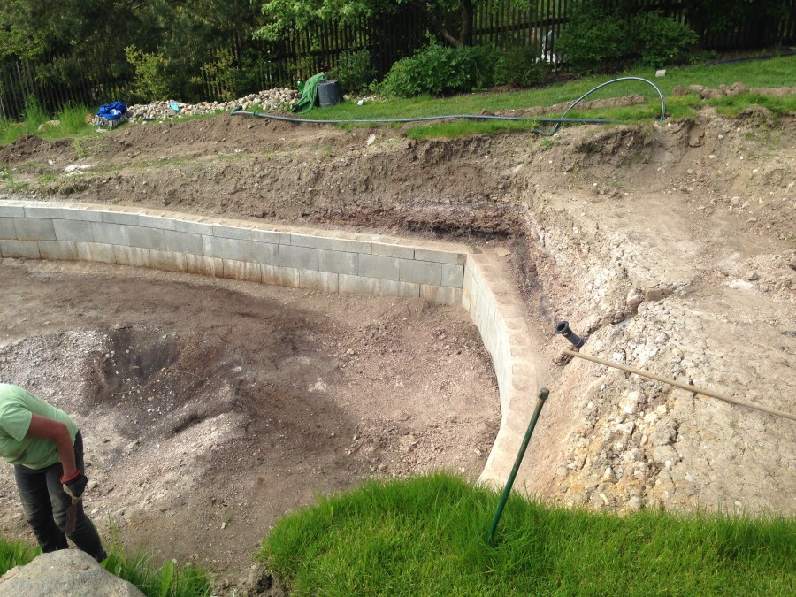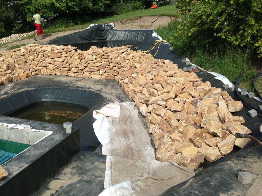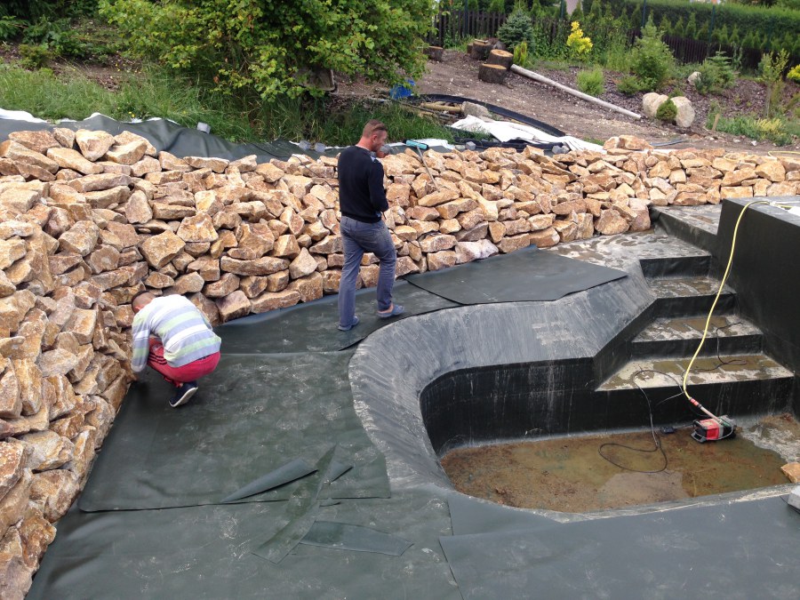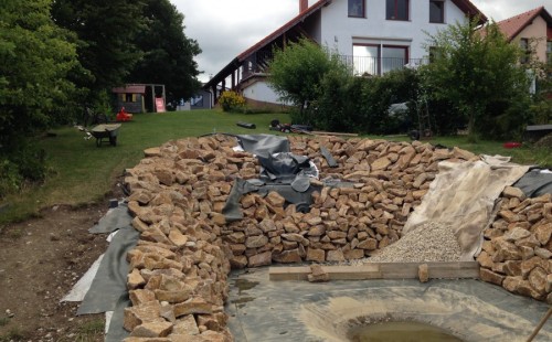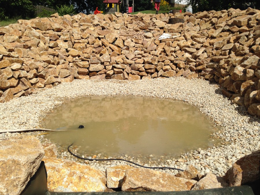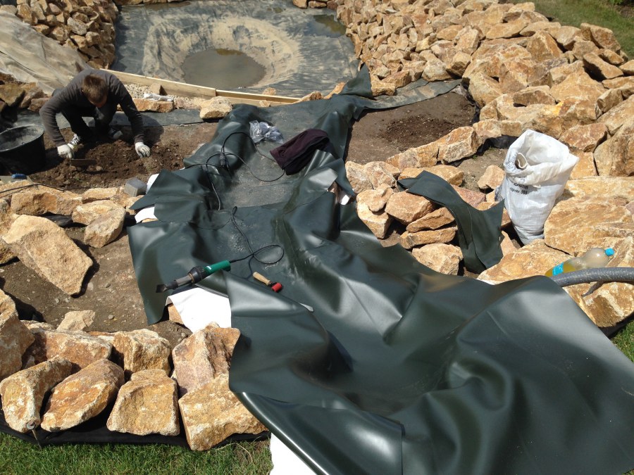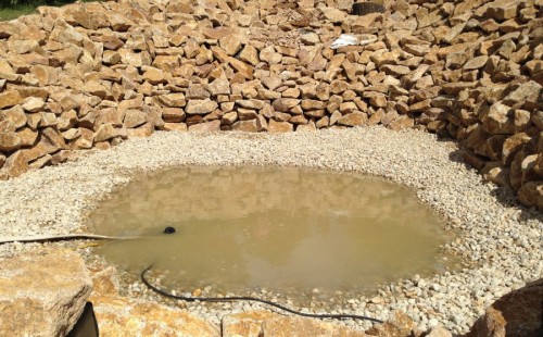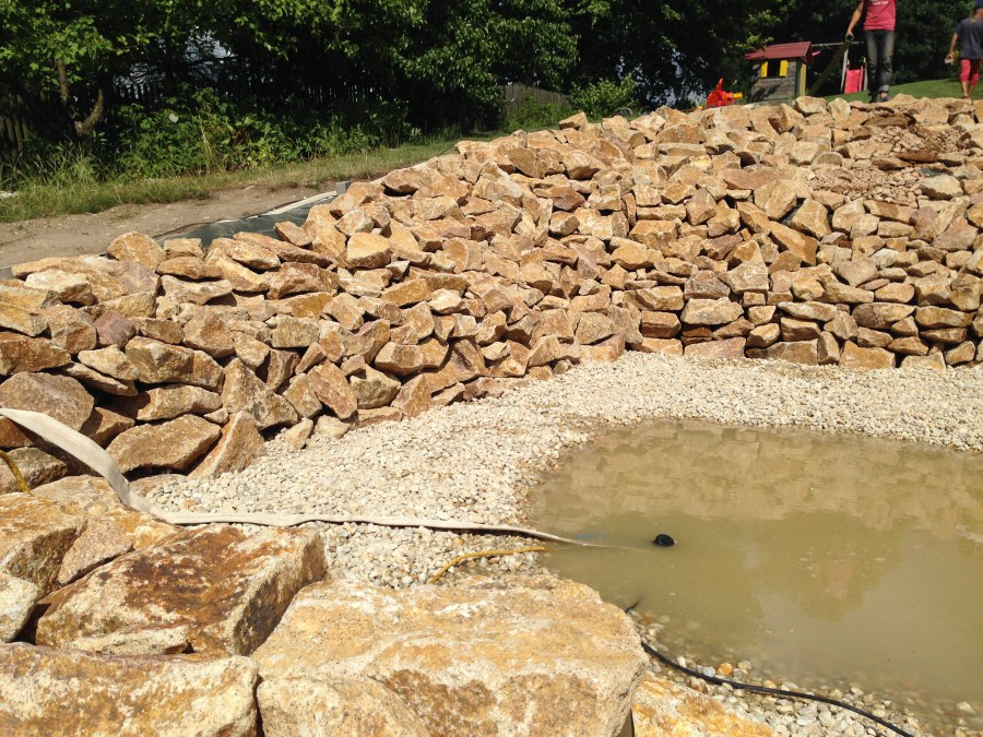 - Stavba jezírka v Karlových Varech.