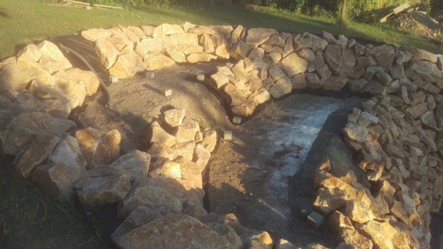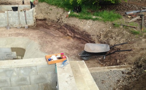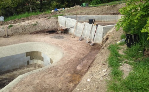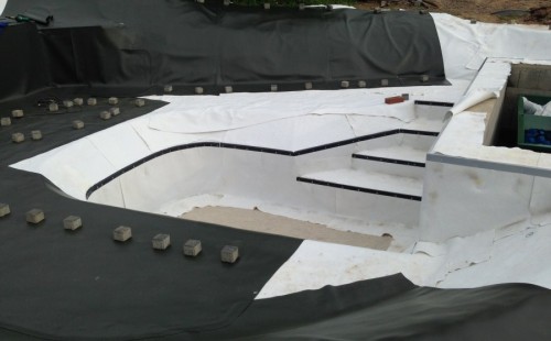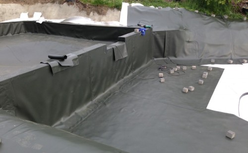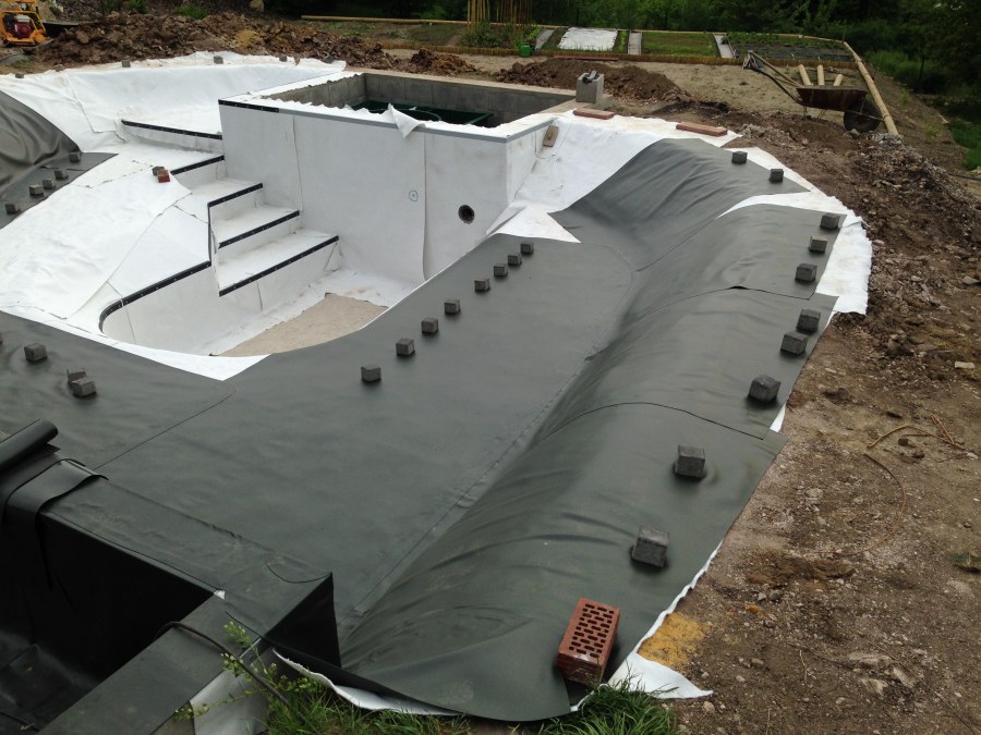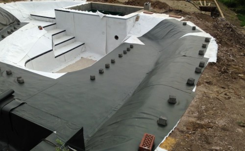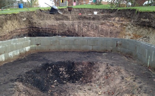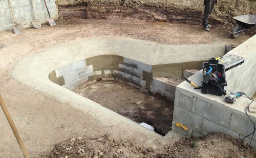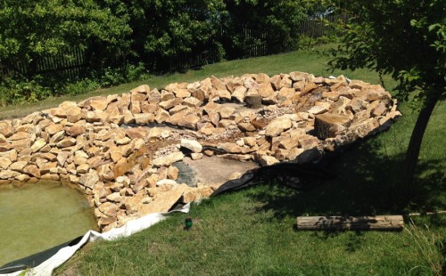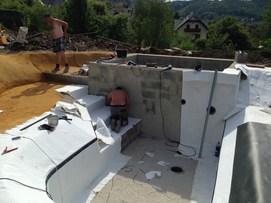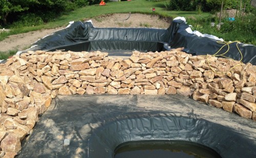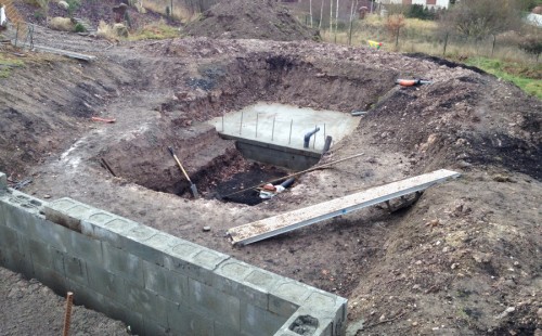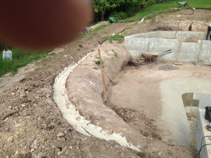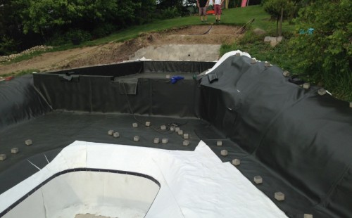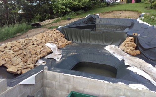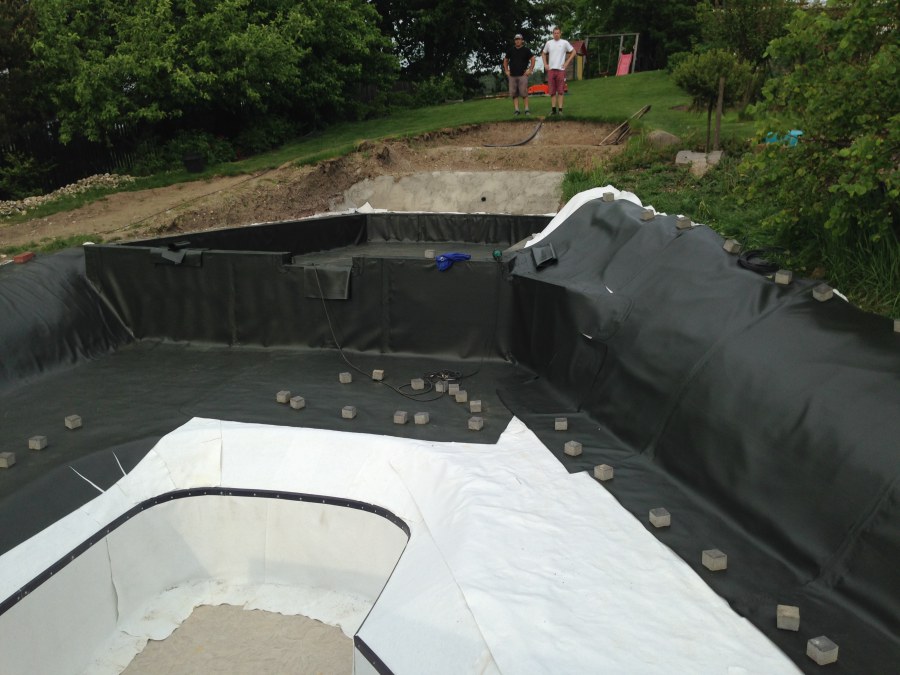 - Stavba jezírka v Karlových Varech.