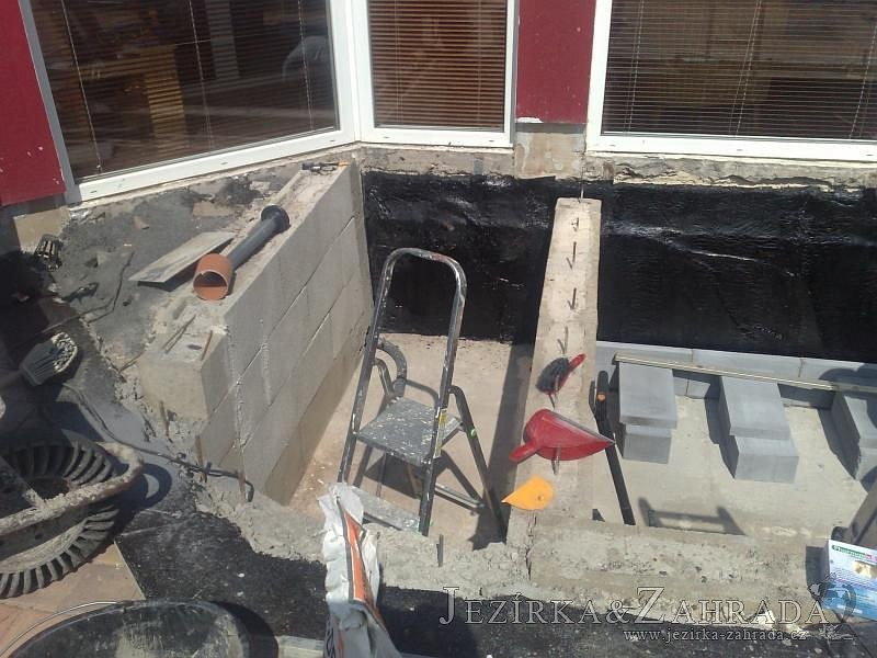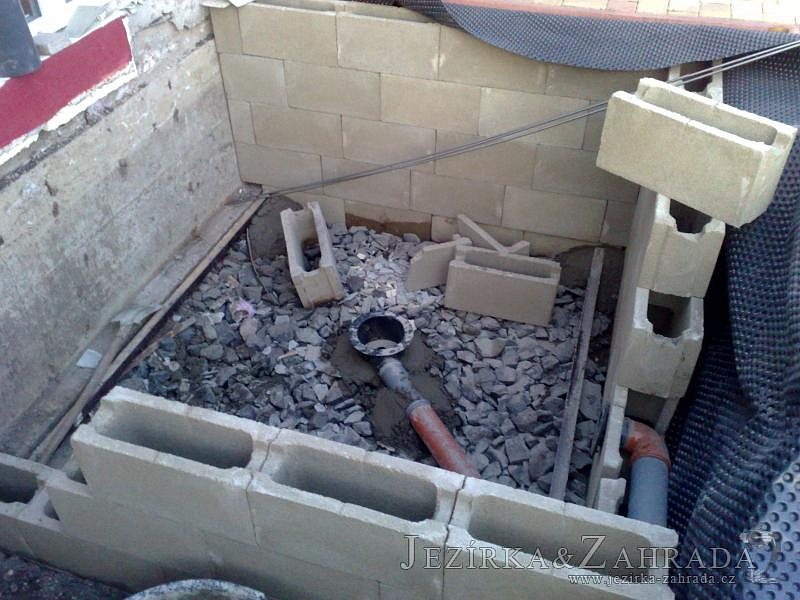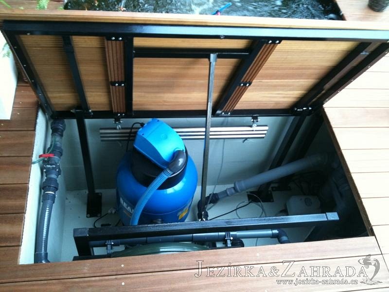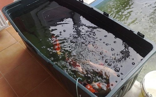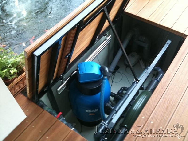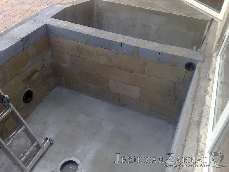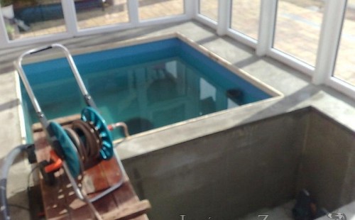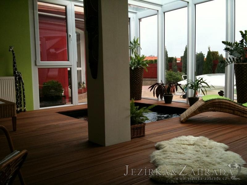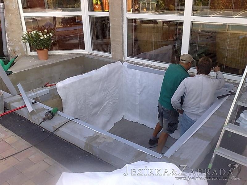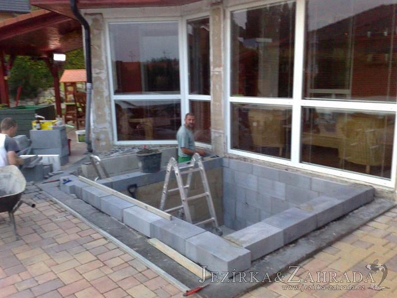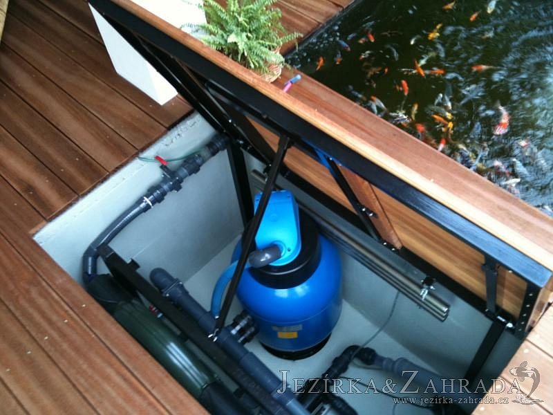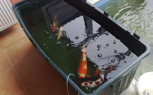 Výstavba zimní odchovny pro japonské KOI kapry v zimní zahradě rodinného domu. Rozměr jezírka 2200x2200x1300mm - 6,3m3. Navržená technologie: filtrace Bead filtr 500, 100l Kaldnes K1, čerpadlo 20 000l/hod, UV lampa TMC Pro Clear Ultima 30W, vzduchovací zařízení Resun LP 60, difuzér, gula dnová výpusť 110mm a trubkový skimmer Oase AquaSkim Gravity. Teplota vody přes zimu bez vytápění od 19 stupňů C a více. Nasazené ryby: pouze japonští KOI.