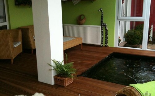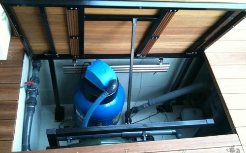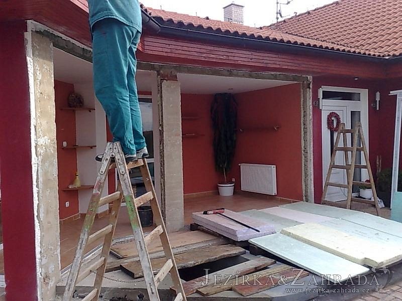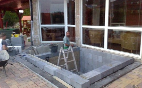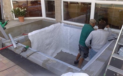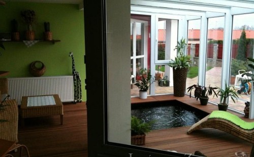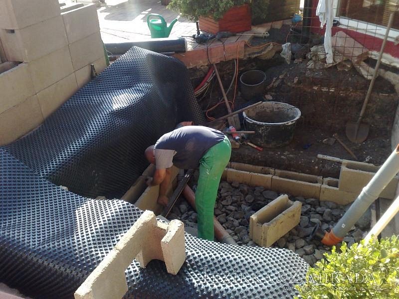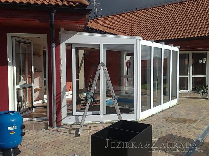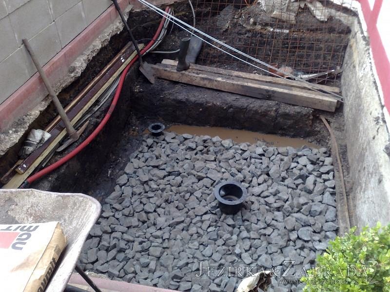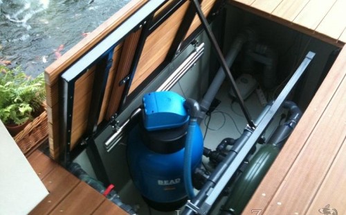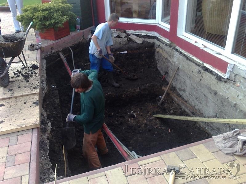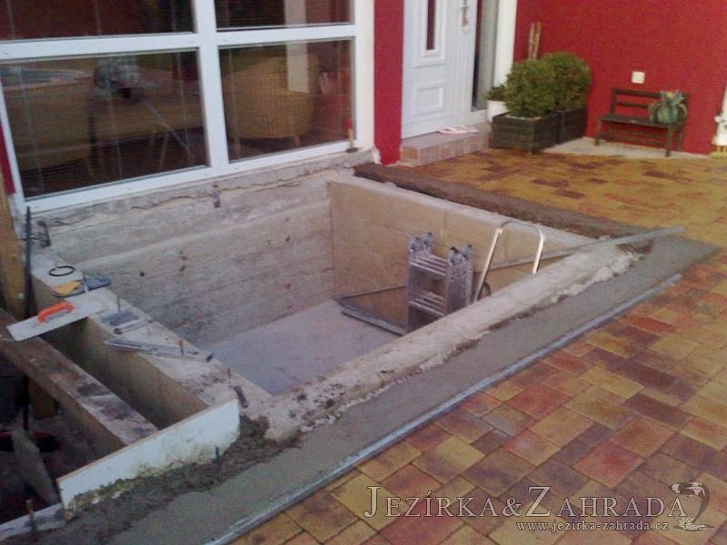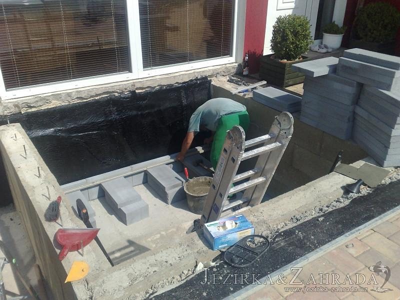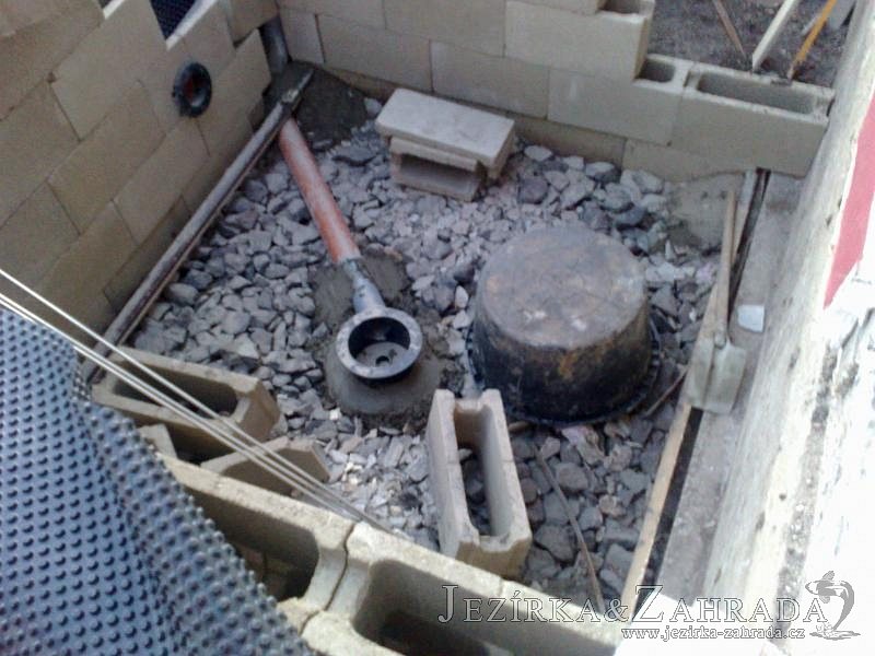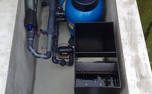 Výstavba zimní odchovny pro japonské KOI kapry v zimní zahradě rodinného domu. Rozměr jezírka 2200x2200x1300mm - 6,3m3. Navržená technologie: filtrace Bead filtr 500, 100l Kaldnes K1, čerpadlo 20 000l/hod, UV lampa TMC Pro Clear Ultima 30W, vzduchovací zařízení Resun LP 60, difuzér, gula dnová výpusť 110mm a trubkový skimmer Oase AquaSkim Gravity. Teplota vody přes zimu bez vytápění od 19 stupňů C a více. Nasazené ryby: pouze japonští KOI.