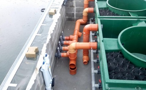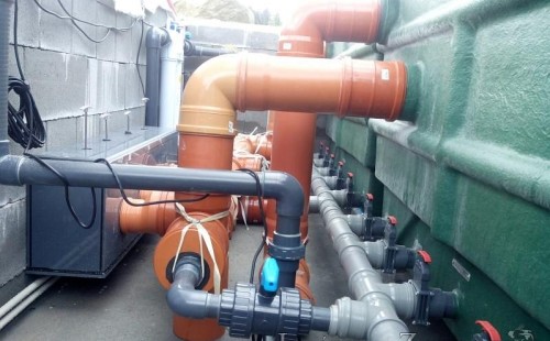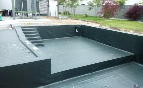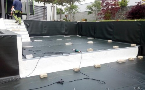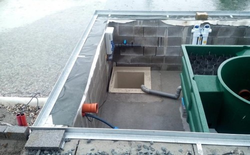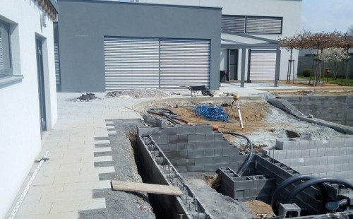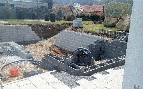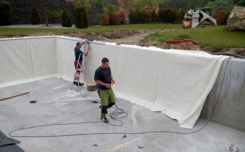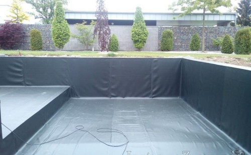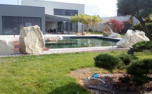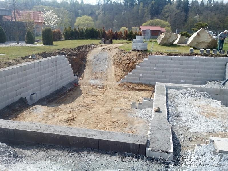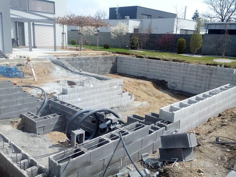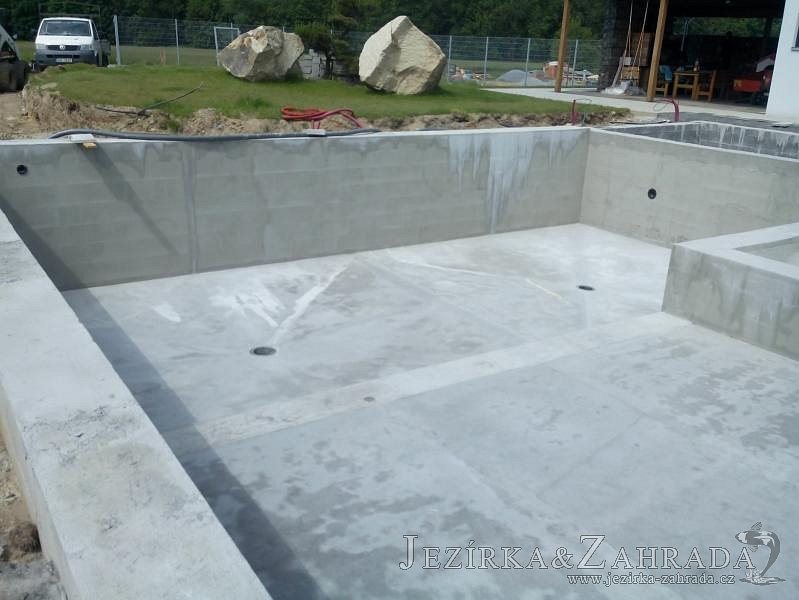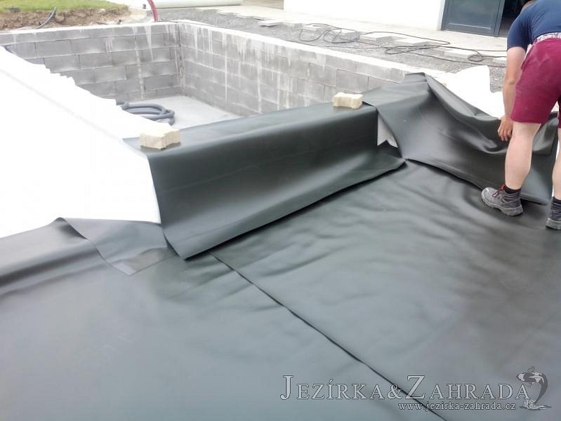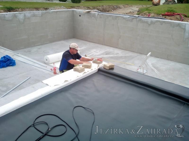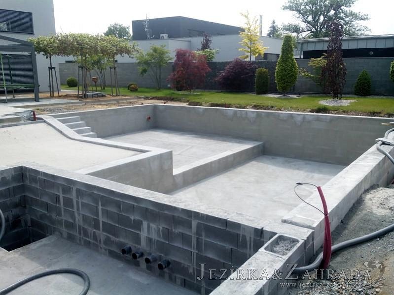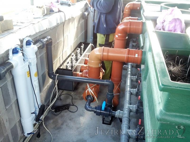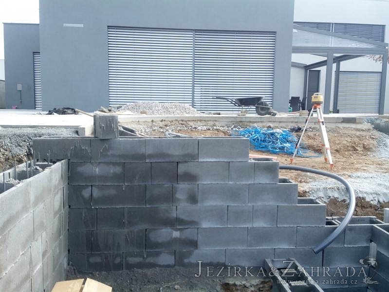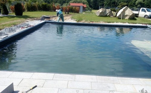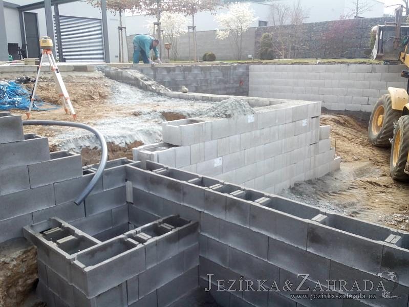 Moderní koupací jezírko v podobném stylu jako jsme již realizovali v loňském roce také v Plzni. Koupací jezírko ideálně zapadá k moderní stavbě a je zakomponováno do velmi rozlehlé zahrady. Po vykopání jezírka, postavení obvodových stěn ze ztraceného bednění se položilo potrubí, zapískovalo, zabetonovalo, položila se geotextílie 500g a svařila na míru fólie Fatra Aquaplast 805 1,5mm olivově zelená. Pro tento systém byla navržená technologie: 2x mechanicko-biologický filtr Tripond Center-Vortex C115 zapojený gravitačně a každý filtr je osazen UV lampou TMC Pro Pond Advantage 110W dále pak úsporným čerpadlem Oase Aquamax Gravity Eco 20000. Byla zde použita 2x gula dnová vpusť 110mm, 2x skimmer Oase AquaSkim Gravity a vzduchovací motor Hailea HAP-100 zásobuje přes rozvod vzduchu z PP jezírko tak i obě filtrace. Do jezírka byly nainstalovány velké okrasné kameny, které se poté opakují i na zahradě. Břeh jezírka byl obložen okrasnými dlaždicemi a kačírkem a technická místnost byla zakryta podlahou z exotického dřeva.