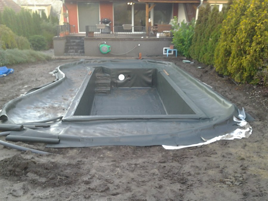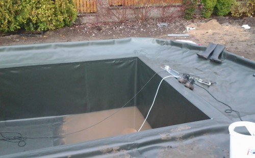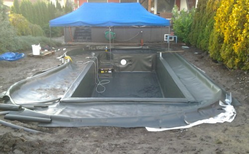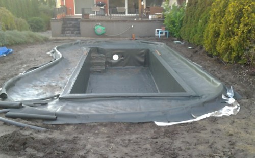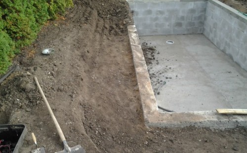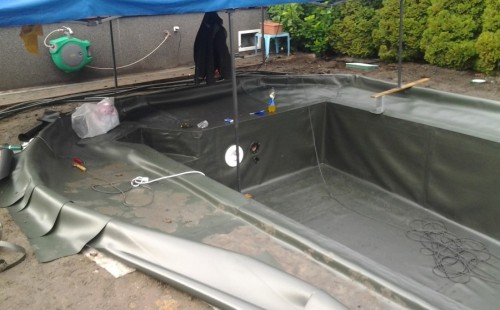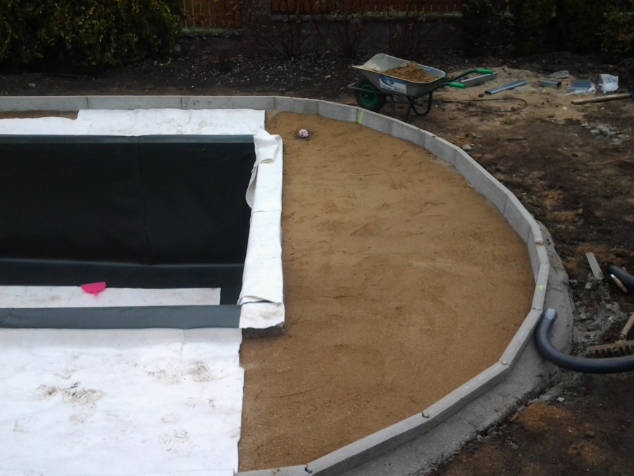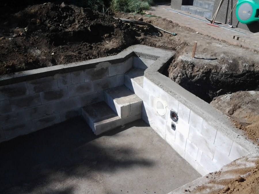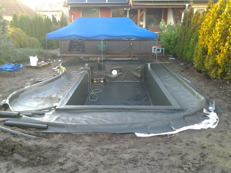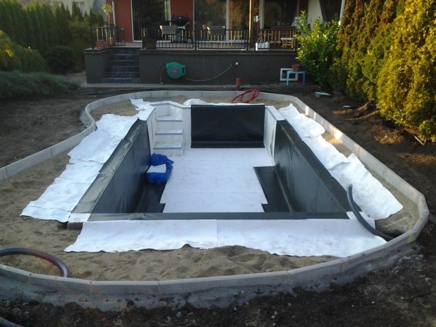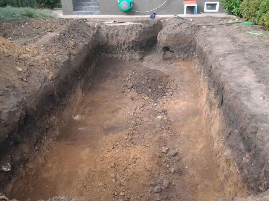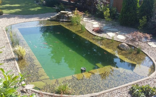 Na přání zákazníka byl nejprve zpracován grafický návrh zahrady. Koncem září započala realizace koupacího jezírka při které zároveň došlo i k celkové úpravě zahrady. Bylo nutné předělat (přeložit) závlahu z důvodu výstavby koupacího jezírka. Vytvořil se tvar jezírka a začala se bagrovat koupací část malým bagříkem. Technická místnost vznikla ve sklepě uvnitř obytného domu, proto bylo nutné vytvořit prostupy pro potrubí. Obvod koupací části byl postaven ze ztraceného bednění, položila se technologie a vytvořily se mělké zóny. Po vystavění odvodu jezírka došlo k protažení potřebných trubek a hadic k technologii. Mělké zóny se vypískovaly a začalo se s pokládkou geotextílie 500g a fólie Fatra Aquaplast 805/V 1,5mm olivově zelené. K foliování se použily speciální lišty na připevnění fólie a přidělalo se bazénové světlo. Následně začala úprava zbytku zahrady, odstranili se a prořezali staré keře. Skrytým obrubníkem se oddělila tráva a zóny kde budou vysázeny nové okrasné keře a rostliny. Zároveň se zapojila závlaha, tak aby správně zalévala co bude potřeba. Byly dosázeny okrasné stromky, keře a byla položena mulčovací textílie proti prorůstání trávy. Na přání zákazníka se položil okrasný kačírek a mulčovací kůra do těchto zón. Z pískovcového kamene se vytvořili pochozí šlapáky kolem jezírka a dále se pak obložil obvod jezírka a obložily se z nich schody v koupacím jezírku. Z pískovce se tvořil i vodopád, který bude napájen extra čerpadlem, aby bylo možno ho zapínat dle potřeby. Mezi šlapáky a do mělkých zón byl naaranžován okrasný kačírek. Pro tento systém bylo navrženo: biologicko-mechanický filtr Tripond Center-Vortex C115, úsporné čerpadlo Oase Aquamax Gravity Eco 15000, UV lampa TMC Pro Pond Advantage 110W, na vodopád bylo použito úsporné čerpadlo AquaForte O-series 10000 + nasávání pro efekt vodopádu, gula dnová spodní 110mm a skimmer Oase AquaSkim Gravity.