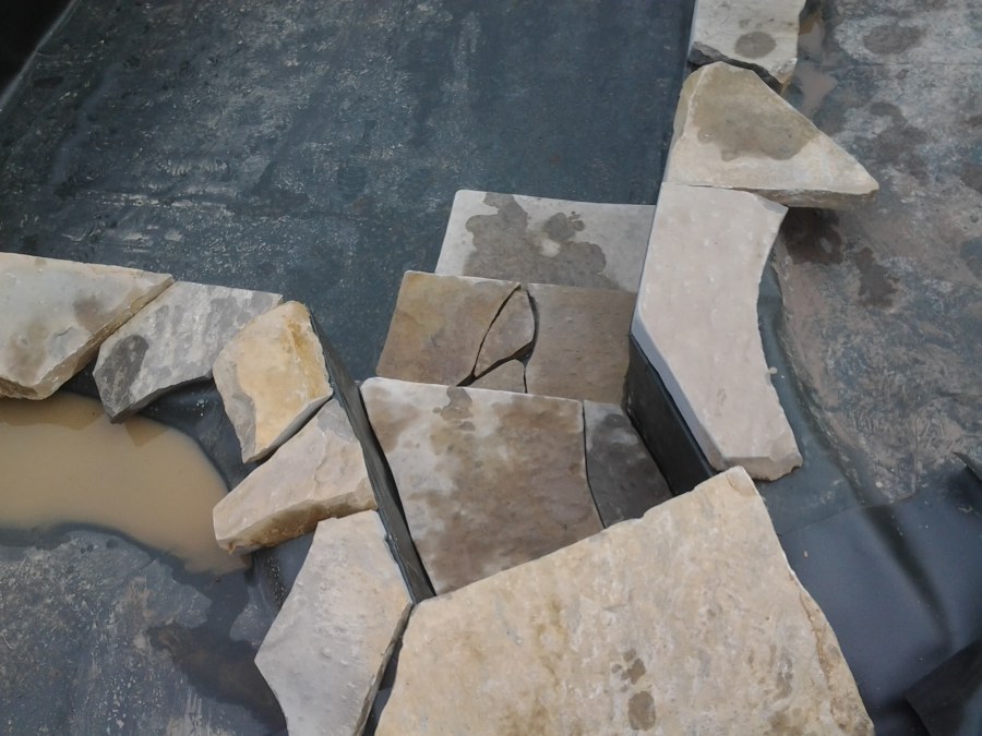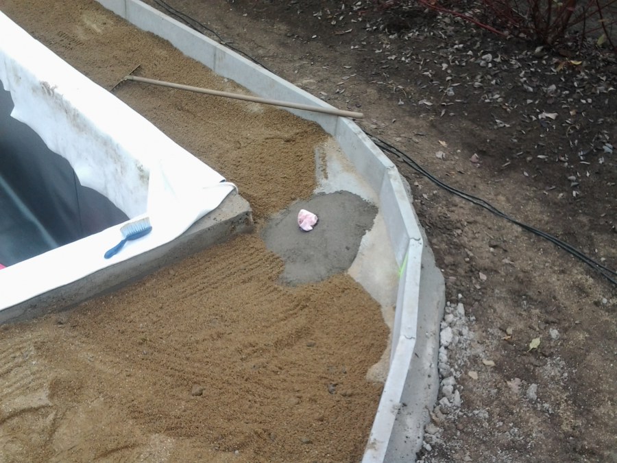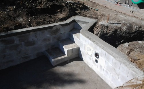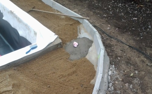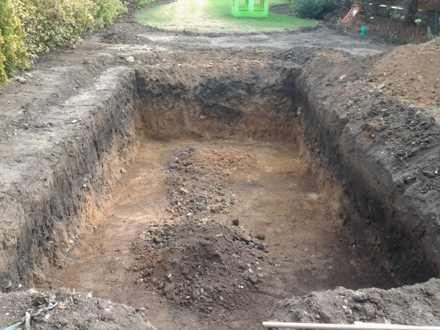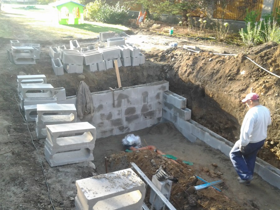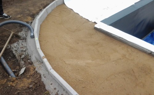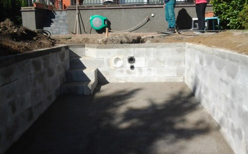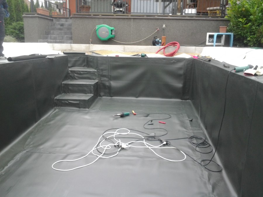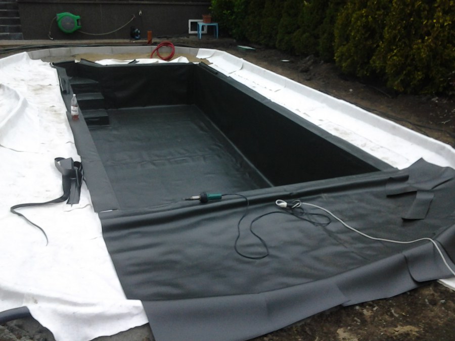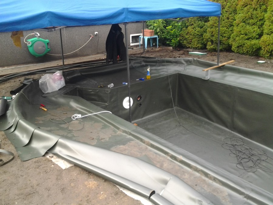 Na přání zákazníka byl nejprve zpracován grafický návrh zahrady. Koncem září započala realizace koupacího jezírka při které zároveň došlo i k celkové úpravě zahrady. Bylo nutné předělat (přeložit) závlahu z důvodu výstavby koupacího jezírka. Vytvořil se tvar jezírka a začala se bagrovat koupací část malým bagříkem. Technická místnost vznikla ve sklepě uvnitř obytného domu, proto bylo nutné vytvořit prostupy pro potrubí. Obvod koupací části byl postaven ze ztraceného bednění, položila se technologie a vytvořily se mělké zóny. Po vystavění odvodu jezírka došlo k protažení potřebných trubek a hadic k technologii. Mělké zóny se vypískovaly a začalo se s pokládkou geotextílie 500g a fólie Fatra Aquaplast 805/V 1,5mm olivově zelené. K foliování se použily speciální lišty na připevnění fólie a přidělalo se bazénové světlo. Následně začala úprava zbytku zahrady, odstranili se a prořezali staré keře. Skrytým obrubníkem se oddělila tráva a zóny kde budou vysázeny nové okrasné keře a rostliny. Zároveň se zapojila závlaha, tak aby správně zalévala co bude potřeba. Byly dosázeny okrasné stromky, keře a byla položena mulčovací textílie proti prorůstání trávy. Na přání zákazníka se položil okrasný kačírek a mulčovací kůra do těchto zón. Z pískovcového kamene se vytvořili pochozí šlapáky kolem jezírka a dále se pak obložil obvod jezírka a obložily se z nich schody v koupacím jezírku. Z pískovce se tvořil i vodopád, který bude napájen extra čerpadlem, aby bylo možno ho zapínat dle potřeby. Mezi šlapáky a do mělkých zón byl naaranžován okrasný kačírek. Pro tento systém bylo navrženo: biologicko-mechanický filtr Tripond Center-Vortex C115, úsporné čerpadlo Oase Aquamax Gravity Eco 15000, UV lampa TMC Pro Pond Advantage 110W, na vodopád bylo použito úsporné čerpadlo AquaForte O-series 10000 + nasávání pro efekt vodopádu, gula dnová spodní 110mm a skimmer Oase AquaSkim Gravity.