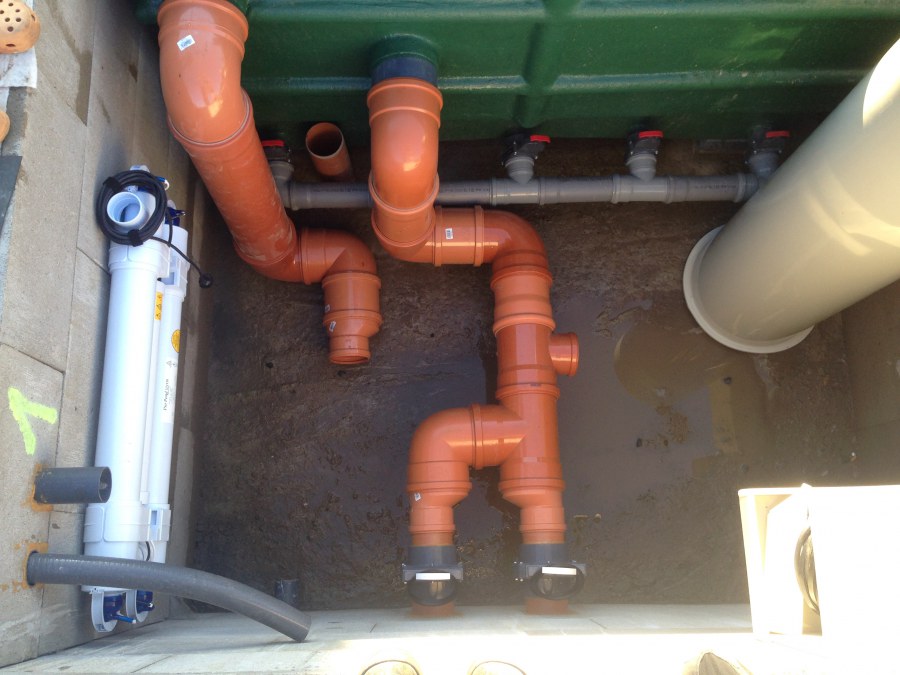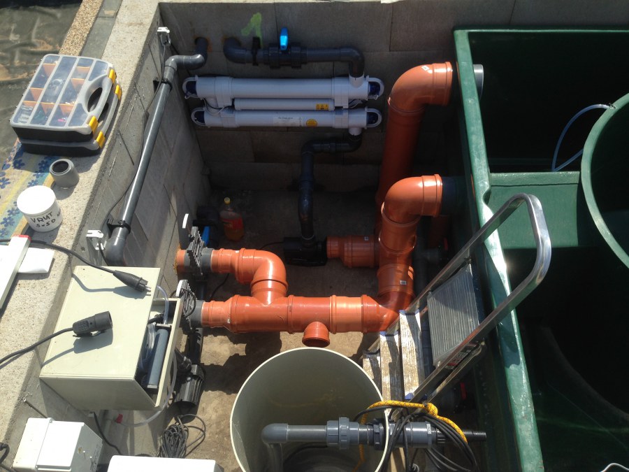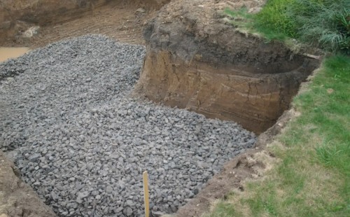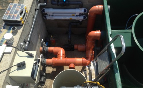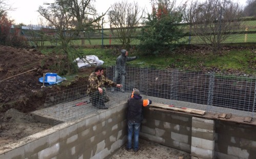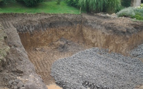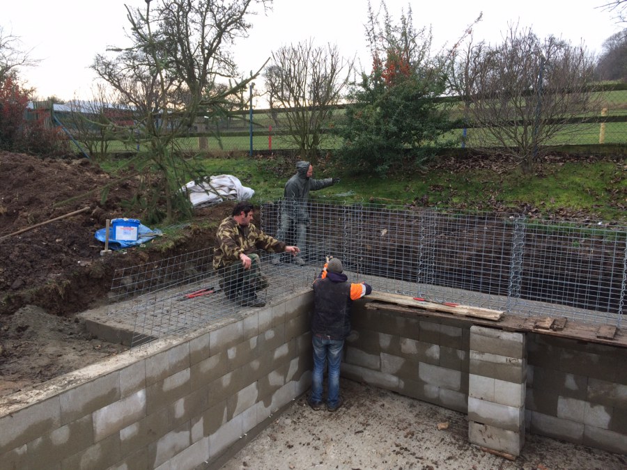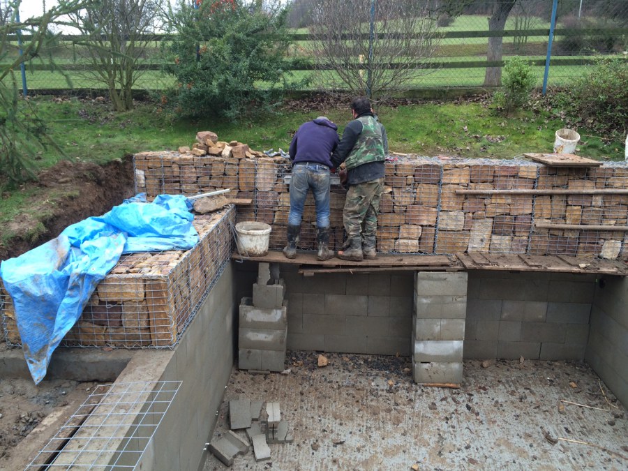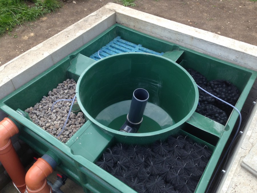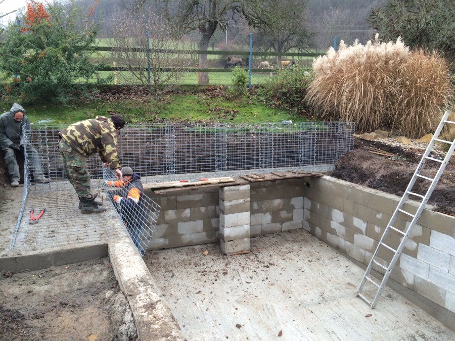 V záři 2015 započala výstavba koupacího jezírka v Drahkově u Teplic. Po vytýčení tvaru jezírka došlo k vyhrabání jezírka bagříkem. Poté bylo dno vysypáno štěrkem pro jeho zpevnění. Koupací část a technická místnost byla vystavěna ze ztraceného bednění. Na fotografiích jsou detaily postupů přípravy na protažení technologie a pro umístění bazénového světla 300W. Jezírko se vybetonovalo a byla položena geotextílie 500 g, na hrany se připevnily speciální lišty pro upevnění fólie a svařila se na míru jezírková fólie Aquaplast 805/V 1,5 mm olivově zelená. Dominantou tohoto koupacího jezírka je gabion s vestavěným nerezovým chrličem Oase Waterfall 60. Pro toto jezírko o velikosti 37 m3 byla použita technologie: bilogicko-mechanický filtr Tripond Center-Vortex C115, UV lampa TMC Pro Pond Advantage 110W, čerpadlo Oase Aquamax Gravity Eco 20000, efektové čerpadlo pro vodopád Aquaking ECO-FTP 13000, vzduchovací motor Hailea HAP-80, elektrický rozvaděč na 7 zásuvek a zásuvky na dálkové ovládání Oase Inscenio FM Master 3. Pro odvod kalů byla použita odkalovací jímka včetně kalového čerpadla.