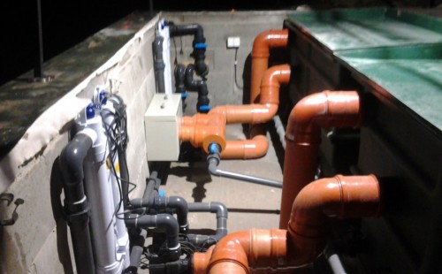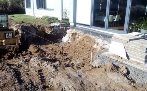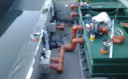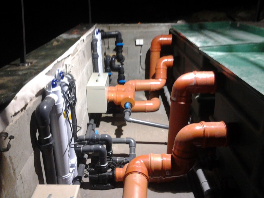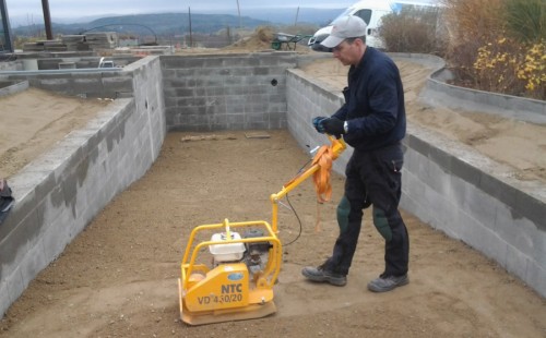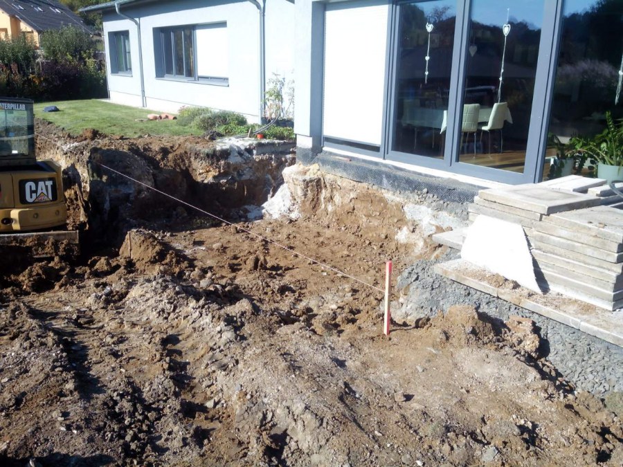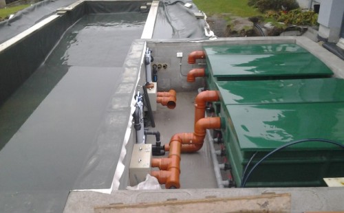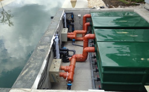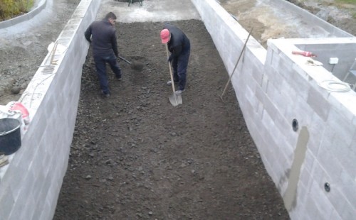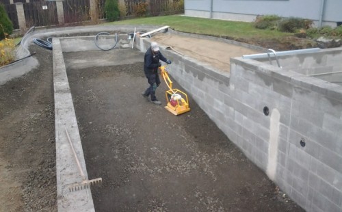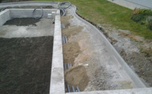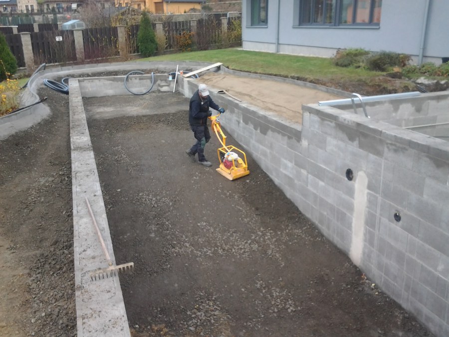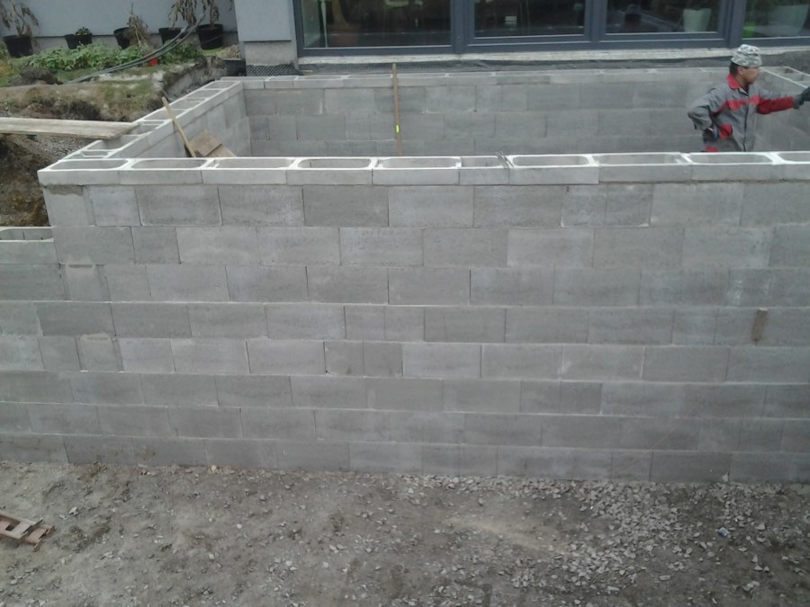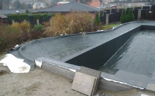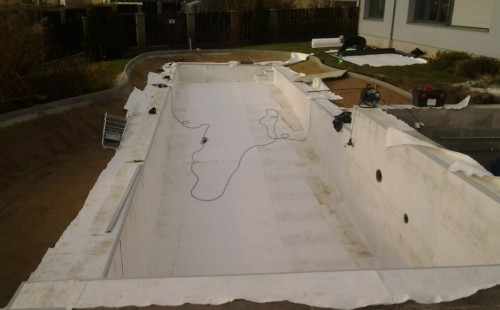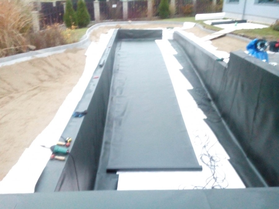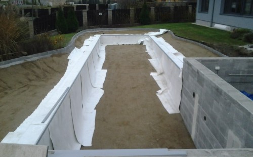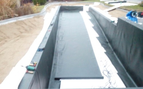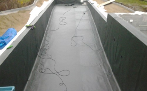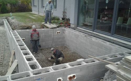 Tato stavba se poměrně dlouho plánovala a začalo se začátkem října letošního roku. Nejprve se vytýčil tvar jezírka, poté se začalo bagříkem vykopávat koupací jezírko. Poté se dno vysypalo štěrkem a začal se stavět obvod koupací části a technické místnosti ze ztraceného bednění. Protáhlo se potřebné potrubí k technologii, začalo se pokládkou kari sítí v technické místnosti. Dorazil mixovací vůz s betonem a začalo se vyléváním betonu do ztraceného bednění a do podlahy. Vytvořila se pobřežní zóna, kde se dno zhutnilo vibrační deskou. Poté se pokračovalo se instalací technologie a potřebného propojení. Koupací zóna se vysypala pískem a také zhutnila vibrační deskou. Speciální poplastovanou lištou se přidělala geotextílie 500g a začala se svařovat fólie Fatra Aquaplast 805 1,5mm. Pro tento systém bylo navrženo: 2x filtr Tripond Center Vortex C-115, 2x UV lampa TMC Pro Clear Advantage 110W, 2x úsporné čerpadlo Oase AquaMax Eco Gravity 15000, vzduchovací motor Hailea HAP-100 + vzduchovací kameny. Na přání zákazníka bude u jezírka nerezový chrlič Oase Waterfall set 60 a osvětlení vodopádu Oase Waterfall Illumination 60.