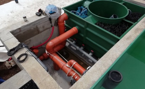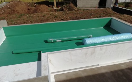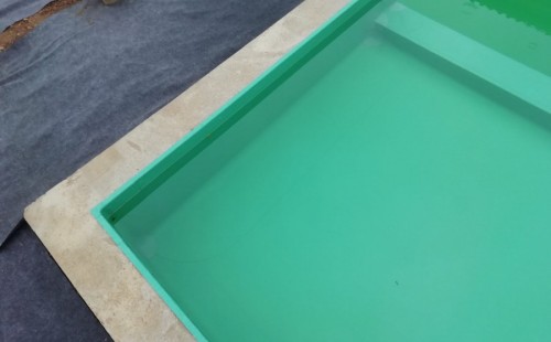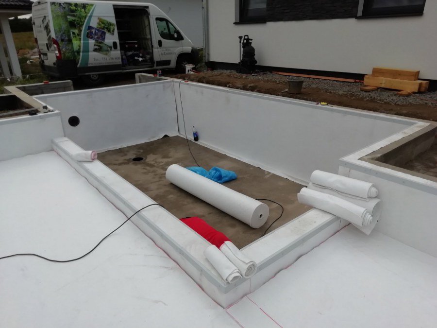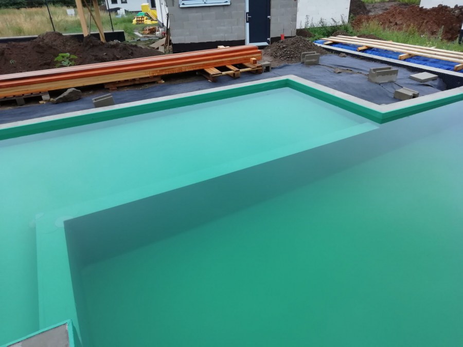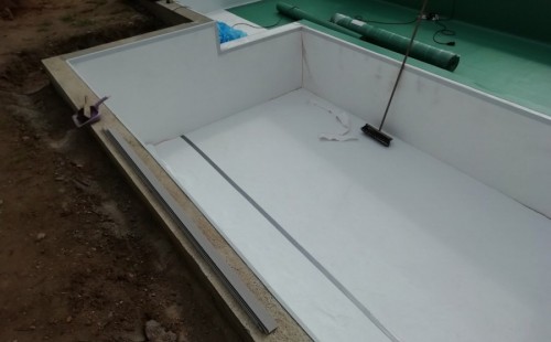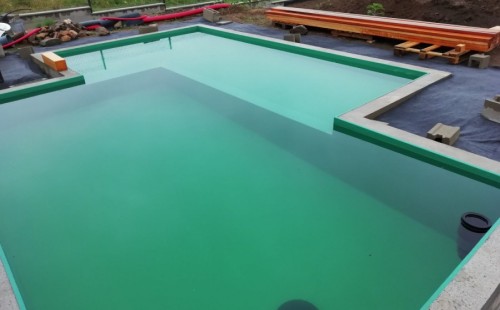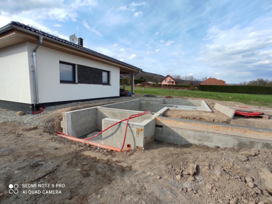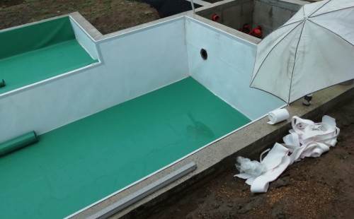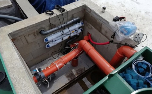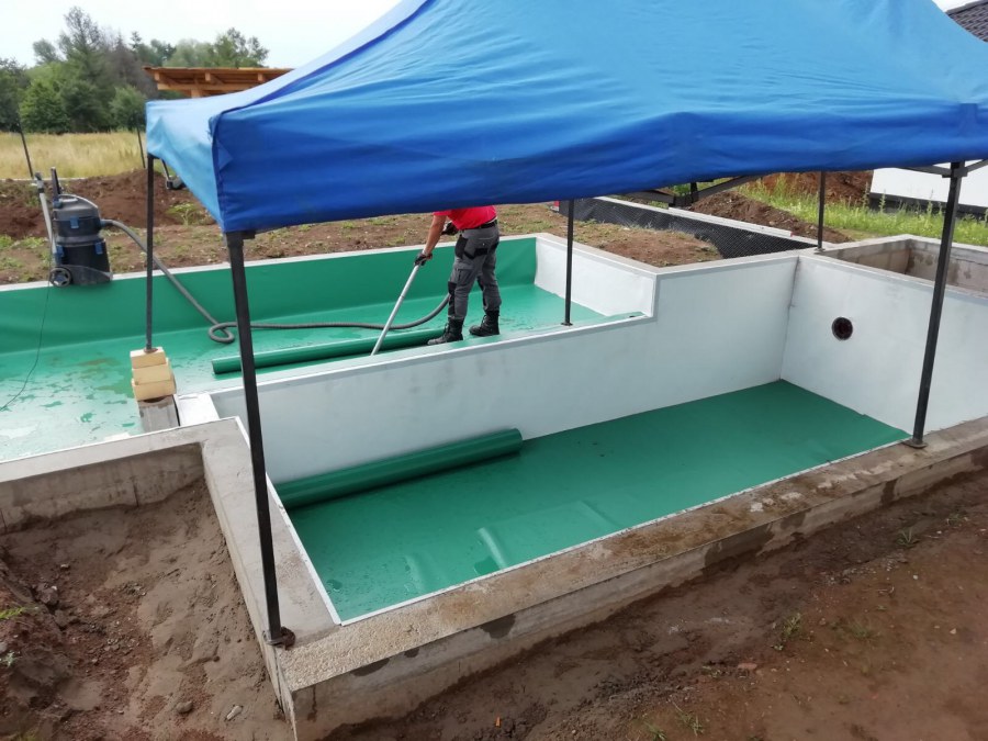 Od jara jsme připravovali stavbu koupacího jezírka v Přestanově. Klient si pod naším stavebním dozorem vystavěl základy koupacího jezírka a technické místnosti ze ztraceného bednění. Položil guly, fóliovou přírubu pro skimmer Oase AquaSkim Gravity a na dno položil potrubí k technické místnosti. Poté vybetonoval dno a vše zpevnil. Po dokončení těchto prací začali naši technici s pokládkou jezírkové fólie. Nejdřív položili geotextílii 500g, přes ní na všechny hrany navrtali koutové lišty a ně potom navařili jezírkovou fólii Fatra Aquaplast 805/V světle zelenou. Po napuštění má jezírko cca 30m3, proto jsme doporučili biologicko-mechanický filtr Tripond Center-Vortex C80, UV lampu TMC Pro Clear 110W a čerpadlo Oase AquaMax Gravity Eco 15000.
