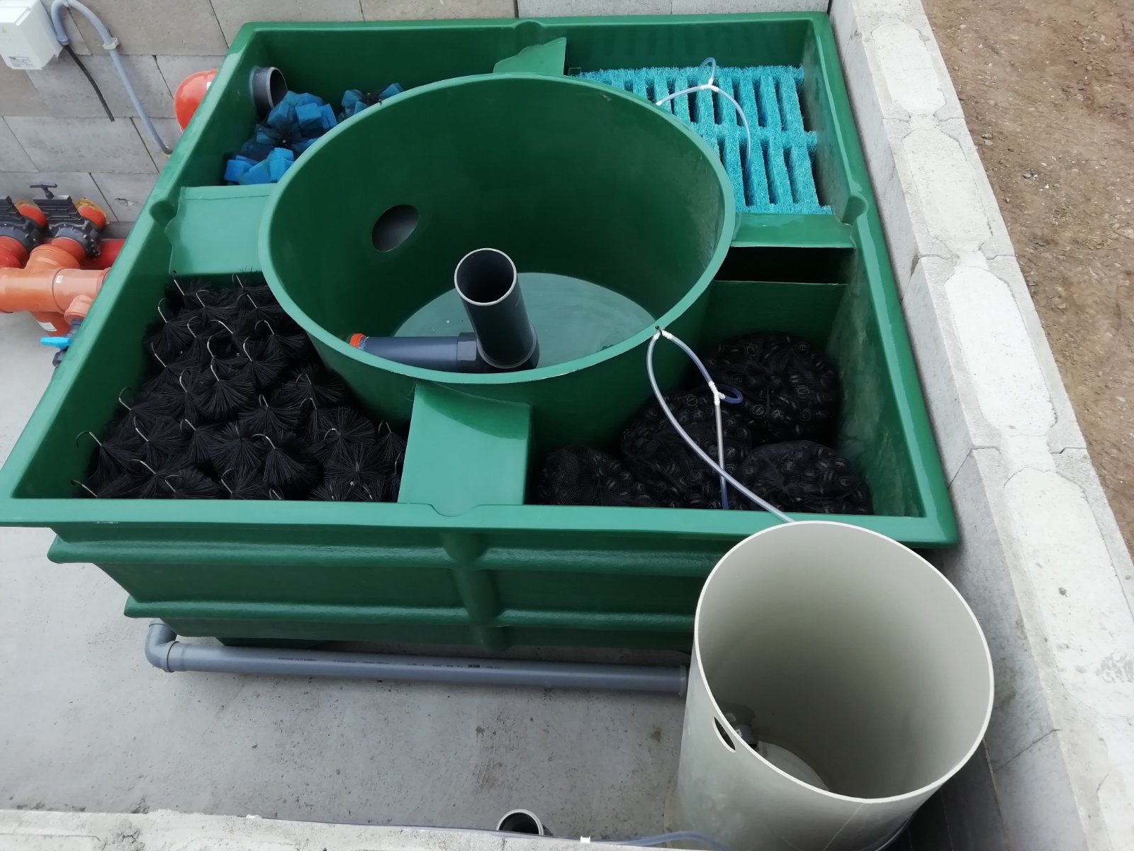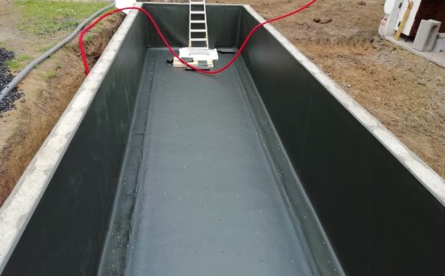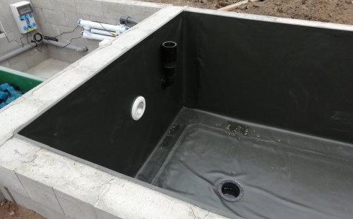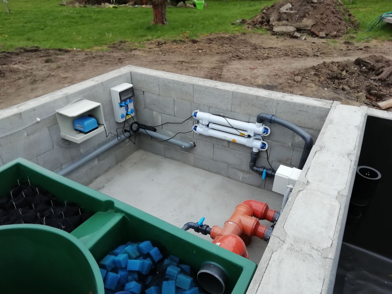 V poslední době se na nás obrací stále více klientů s žádostí o stavbu koupacího bazénu/jezírka, ve kterém je ale místo chlorované vody voda živá. Takové jezírko jsme pomáhali budovat v květnu. Oslovili nás klienti s žádostí o stavbu obdélníkového jezírka, plánovaného bez ryb a květin a bez chemické údržby. Po konzultaci u nás na firmě se klienti nakonec rozhodli si výkopové a stavební práce realizovat sami, pod naším technickým dozorem. Dle našich instrukcí nechali vykopat tvar jezírka a technické místnosti, ty poté nechali obezdít ztraceným bedněním. Na dno položili gulu, od ní natáhli potrubí do technické místnosti kde ho uzavřeli šoupaty 110mm, do zdi vložili fóliovou přírubu pro skimmer Oase AquaSkim Gravity. Po dokončení těchto prací mohli přijet naši technici začít pokládat fólii. Nejprve vypískovali dno kopaným pískem, pak začali s pokládkou geotextílie 500g, na hrany jezírka připevnili speciální koutové lišty, na které začali navařovat jezírkovou olivově zelenou fólii Fatra Aquaplast 805/V. Tu svařili dle tvaru jezírka. Do technické místnosti položili biologicko-mechanický filtr Tripond Center-Vortex C115, UV lampu TMC Pro Pond Advantage 110W a čerpadlo Oase AquaMax Gravity Eco 20000.