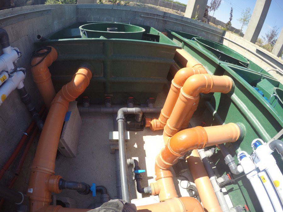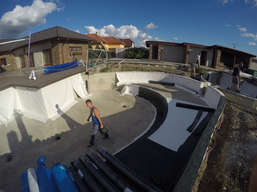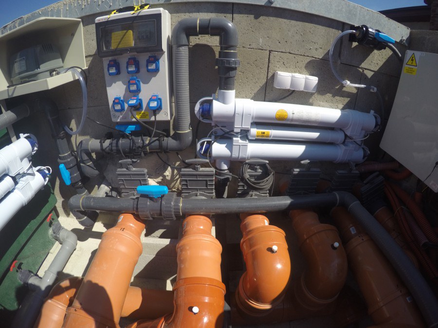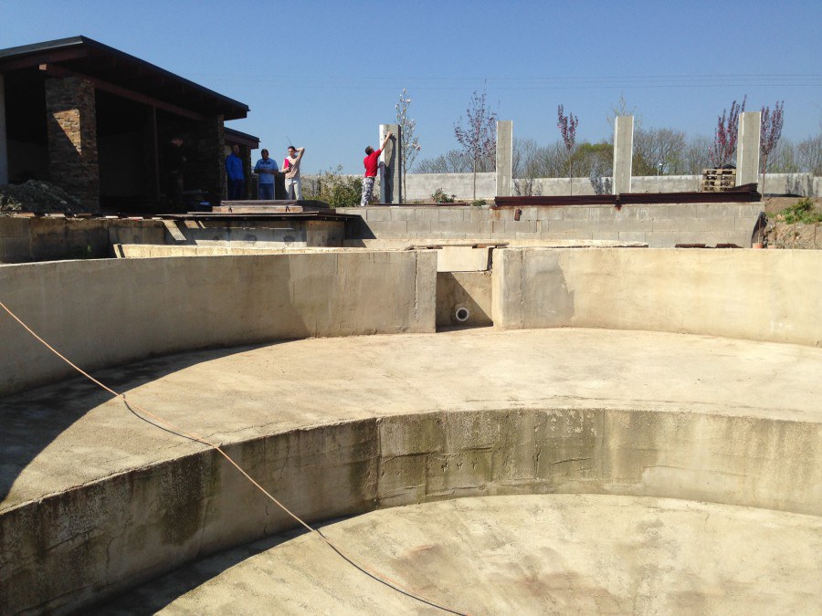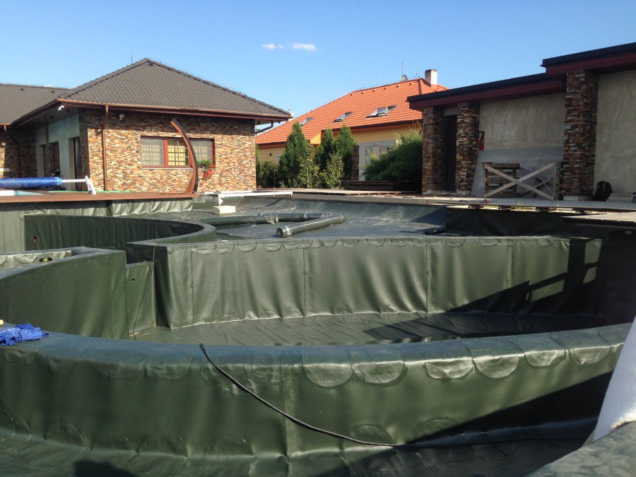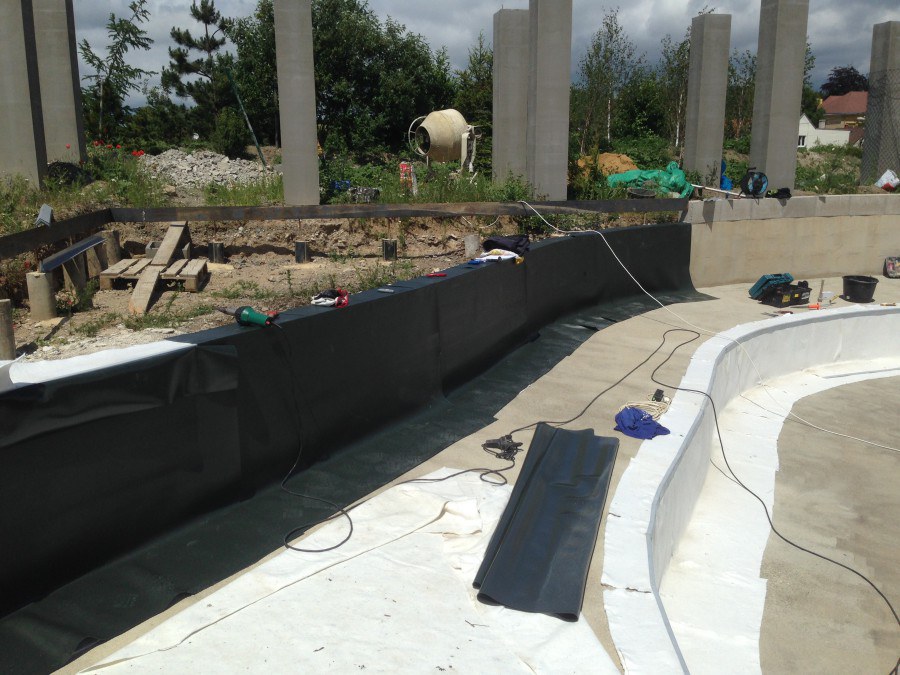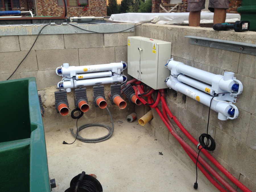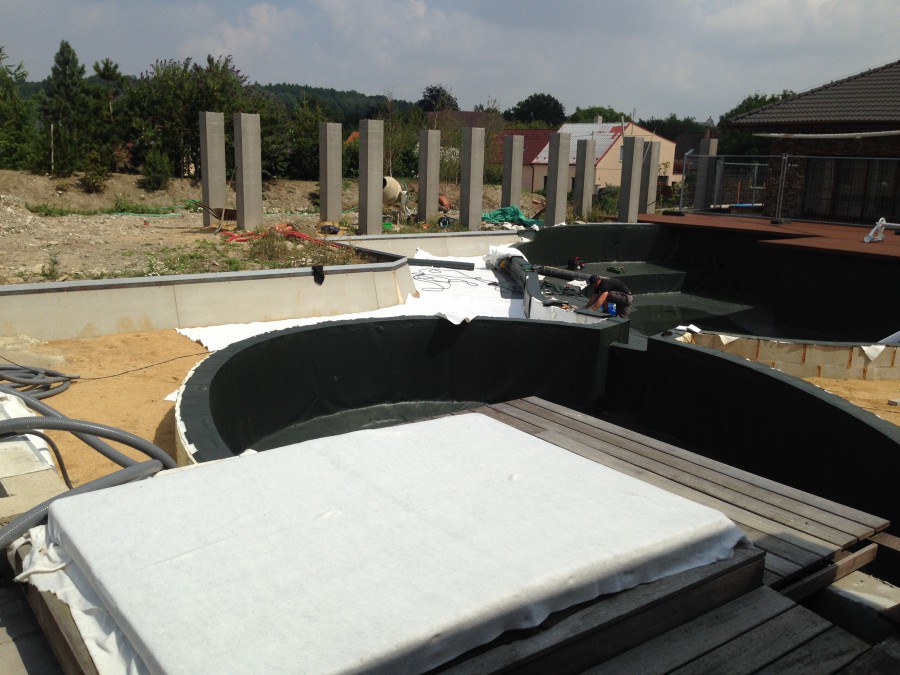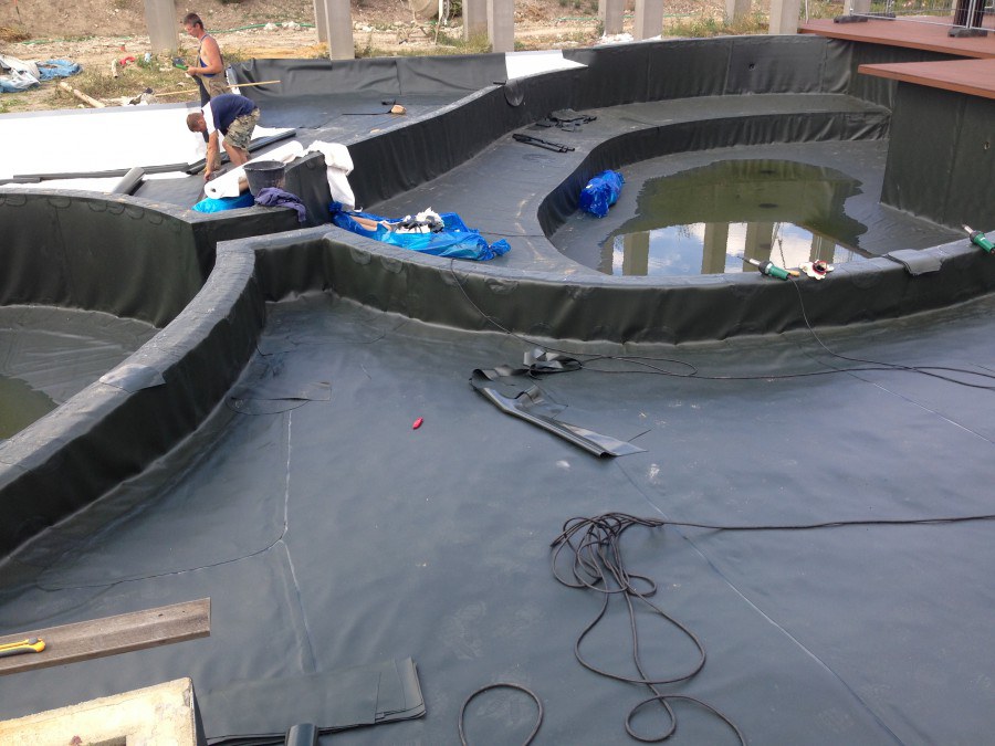 Po nezbytných úpravách se začalo s pokládkou geotextílie 500g, přiděláním speciální poplastované lišty na uchycení fólie a svařením fólie Fatra Aquaplast 805 1,5 mm. Pro tento systém byla navržena technologie: filtry 4x Tripond Center Vortex C-115 a 2x Tripond Center Vortex C-80, čerpadla 4x Oase AquaMax Eco Gravity 20000, 2x Oase AquaMax Eco Premium 16000, 2x regulátor výkonu Messner, 6x UV lampa TMC Pro Clear Advantage 110W, 3x vzduchovací motor Hailea HAP 100, rozvod vzduchu v PPR, 2x velký elektrický rozvaděč, 4x trubkový skimmer Oase Aquaskim Gravity a 4x vzduchovací gula.