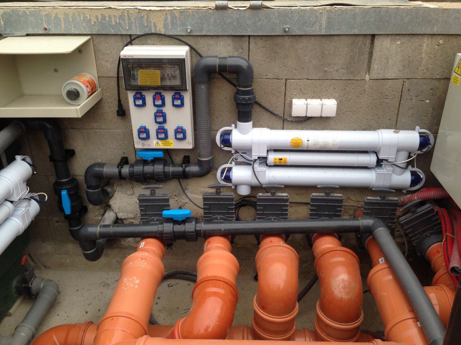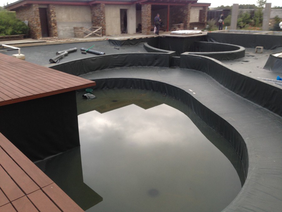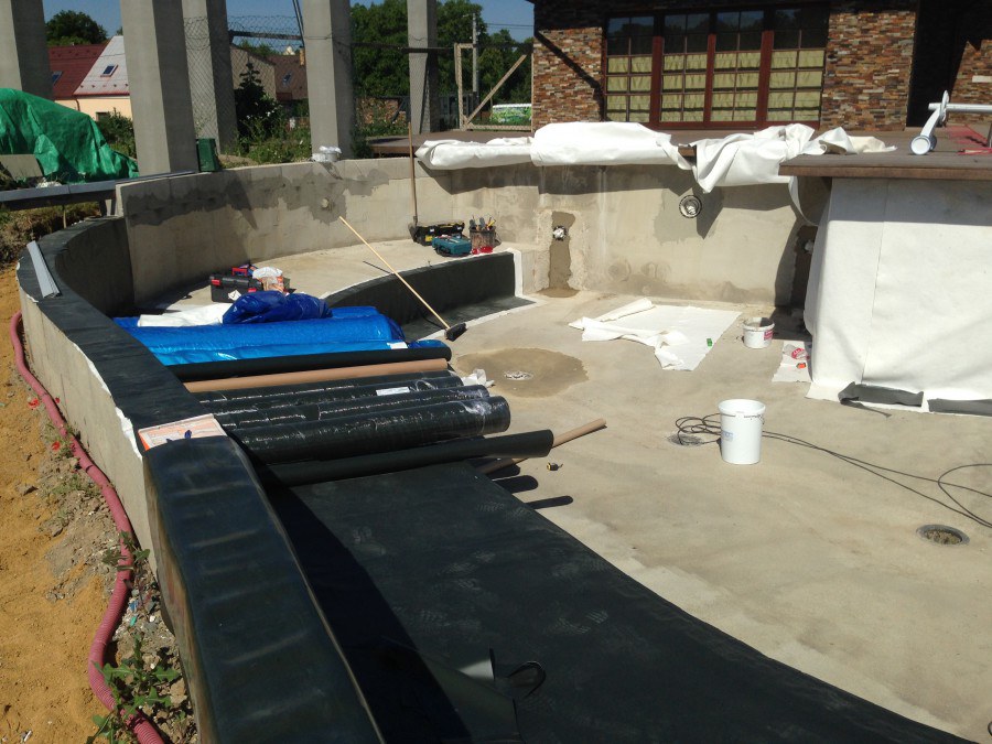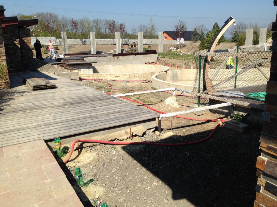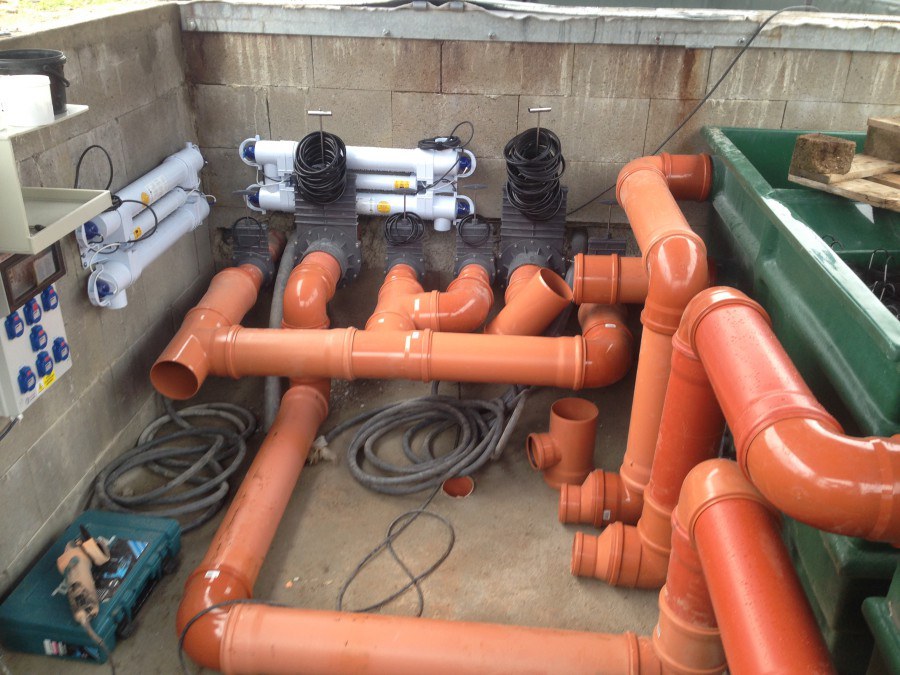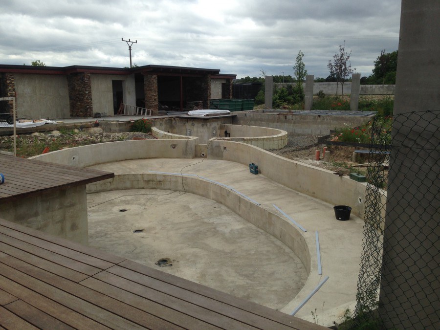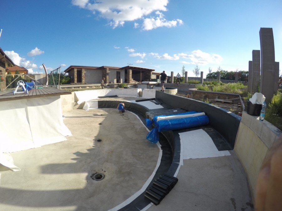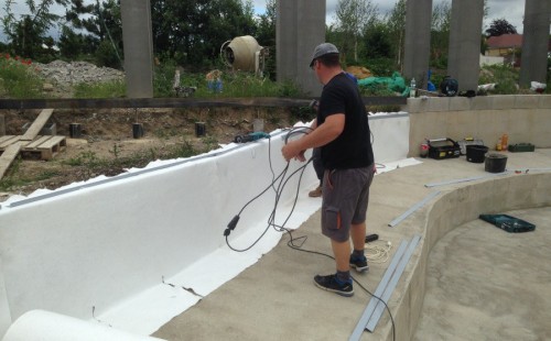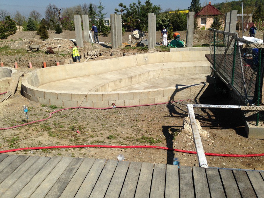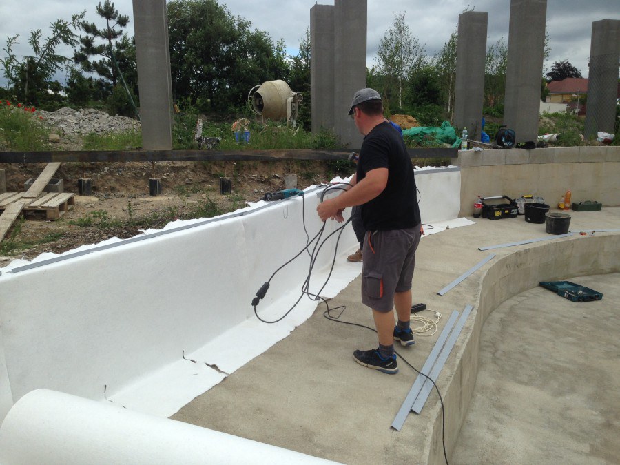 Po nezbytných úpravách se začalo s pokládkou geotextílie 500g, přiděláním speciální poplastované lišty na uchycení fólie a svařením fólie Fatra Aquaplast 805 1,5 mm. Pro tento systém byla navržena technologie: filtry 4x Tripond Center Vortex C-115 a 2x Tripond Center Vortex C-80, čerpadla 4x Oase AquaMax Eco Gravity 20000, 2x Oase AquaMax Eco Premium 16000, 2x regulátor výkonu Messner, 6x UV lampa TMC Pro Clear Advantage 110W, 3x vzduchovací motor Hailea HAP 100, rozvod vzduchu v PPR, 2x velký elektrický rozvaděč, 4x trubkový skimmer Oase Aquaskim Gravity a 4x vzduchovací gula.