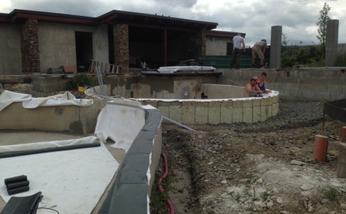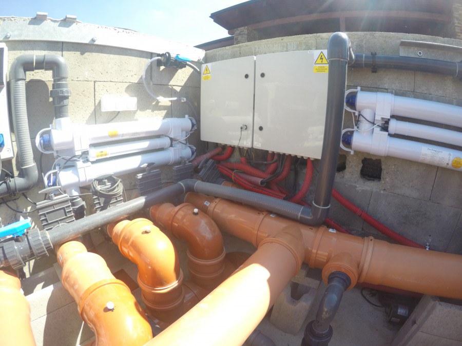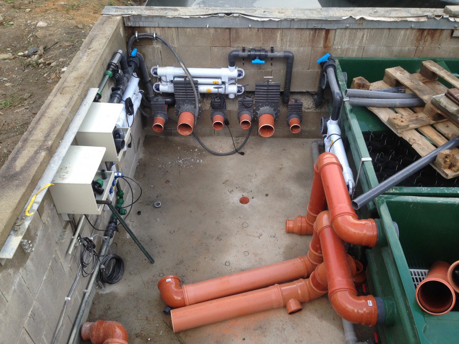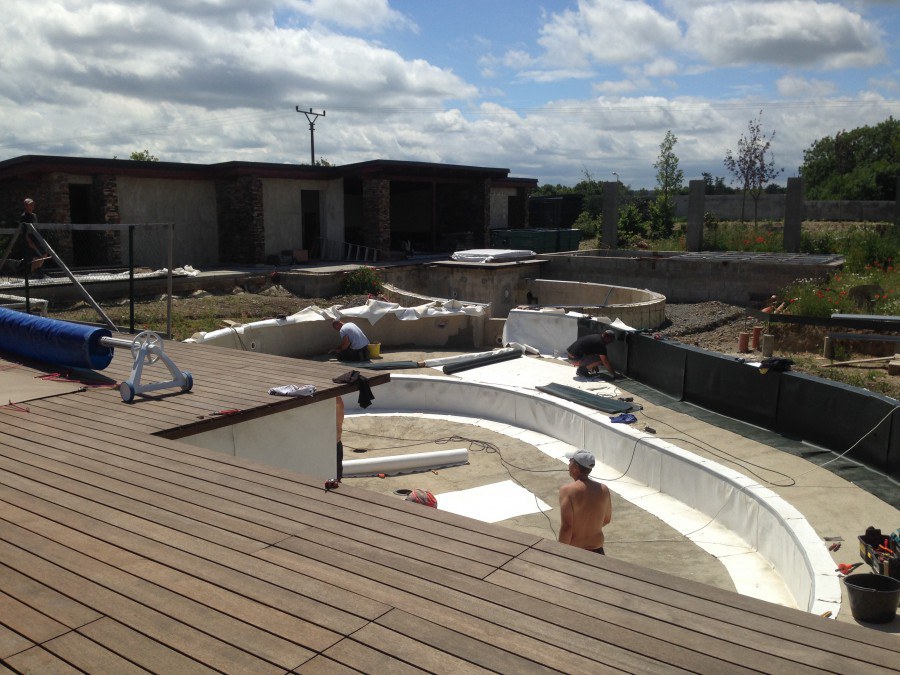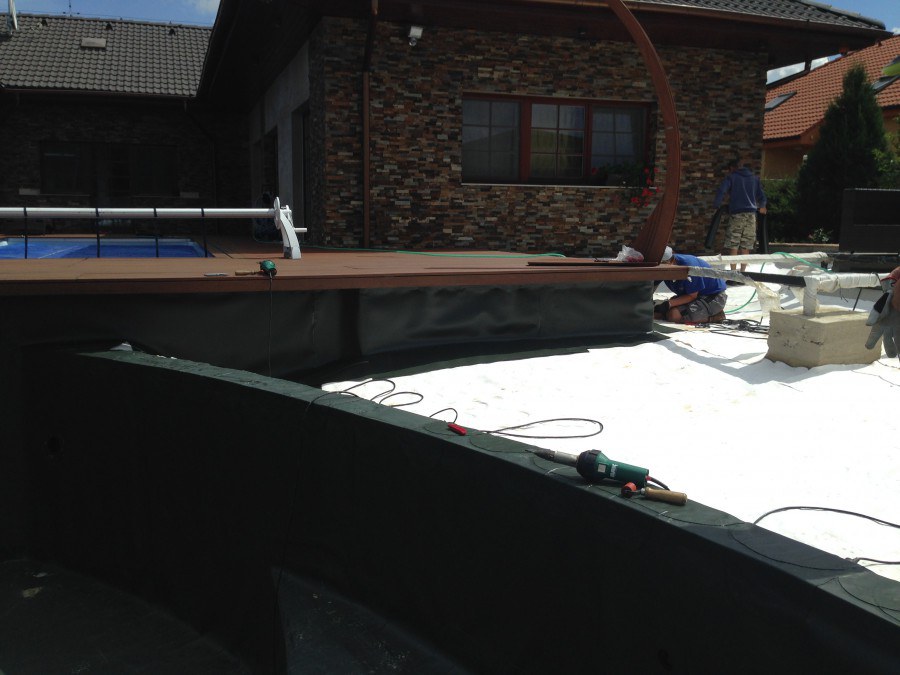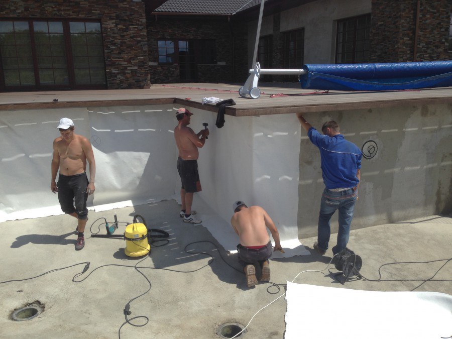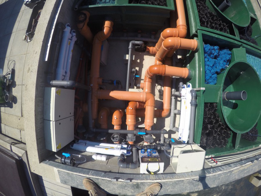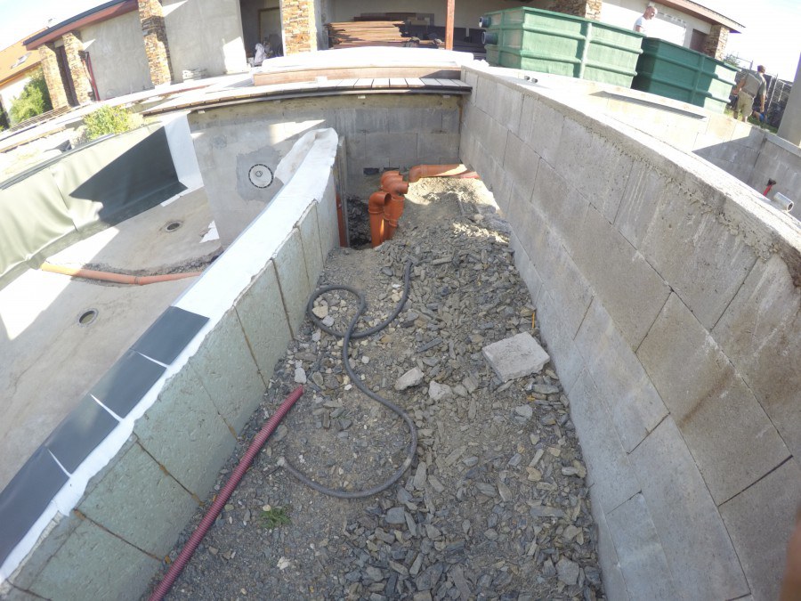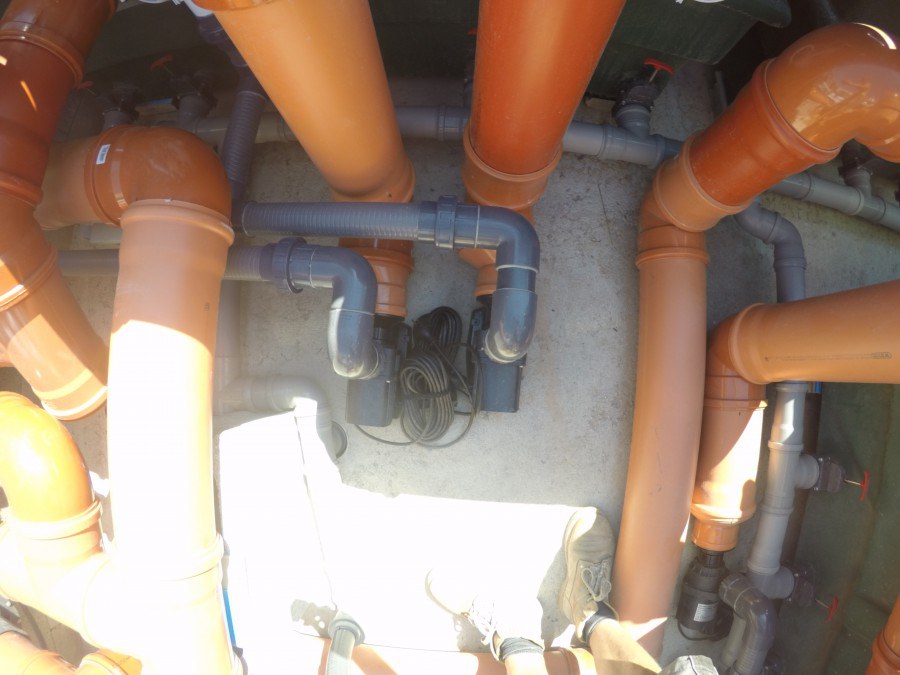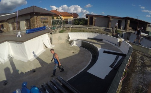 Po nezbytných úpravách se začalo s pokládkou geotextílie 500g, přiděláním speciální poplastované lišty na uchycení fólie a svařením fólie Fatra Aquaplast 805 1,5 mm. Pro tento systém byla navržena technologie: filtry 4x Tripond Center Vortex C-115 a 2x Tripond Center Vortex C-80, čerpadla 4x Oase AquaMax Eco Gravity 20000, 2x Oase AquaMax Eco Premium 16000, 2x regulátor výkonu Messner, 6x UV lampa TMC Pro Clear Advantage 110W, 3x vzduchovací motor Hailea HAP 100, rozvod vzduchu v PPR, 2x velký elektrický rozvaděč, 4x trubkový skimmer Oase Aquaskim Gravity a 4x vzduchovací gula.