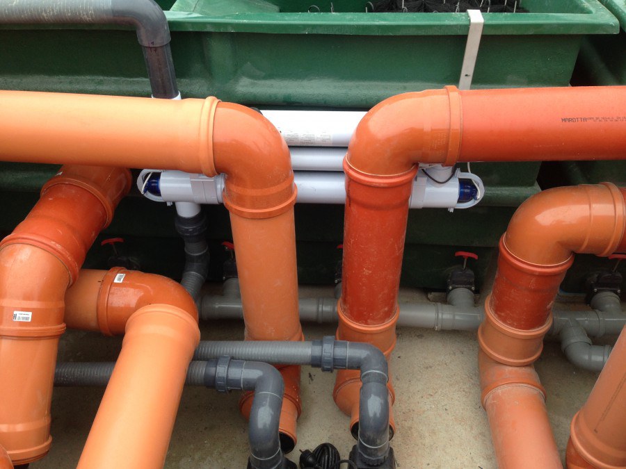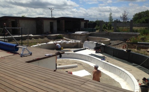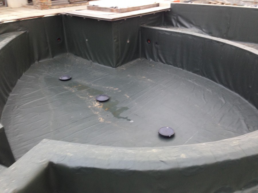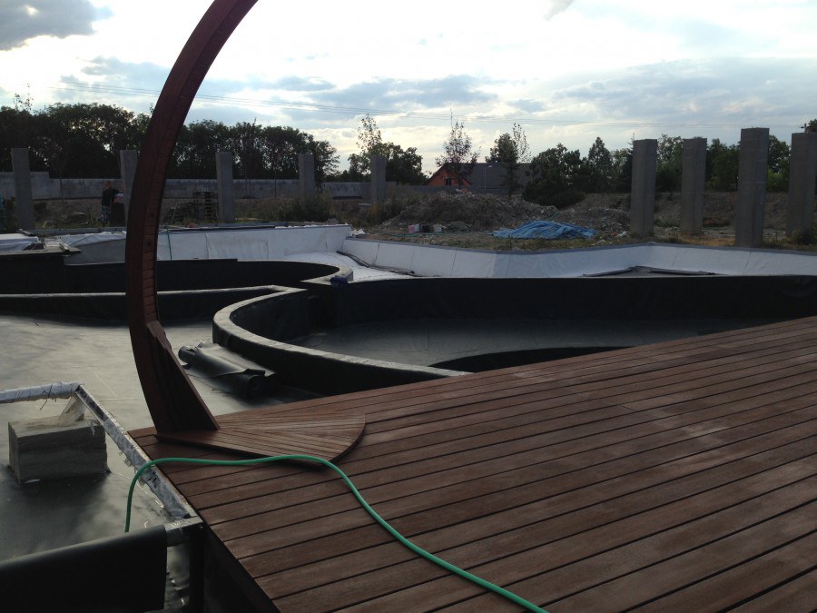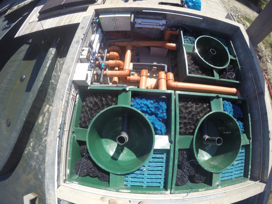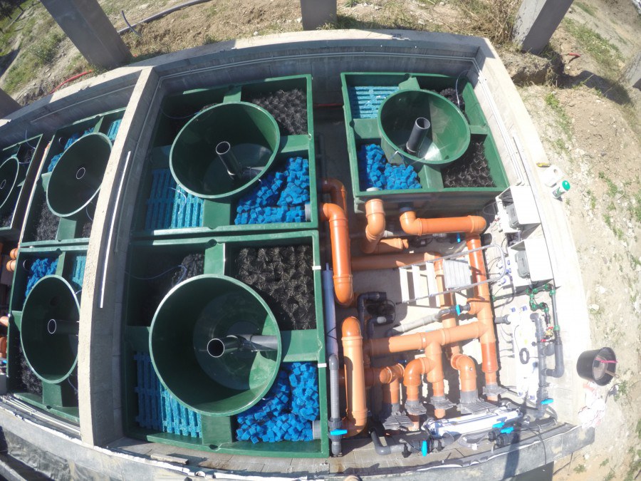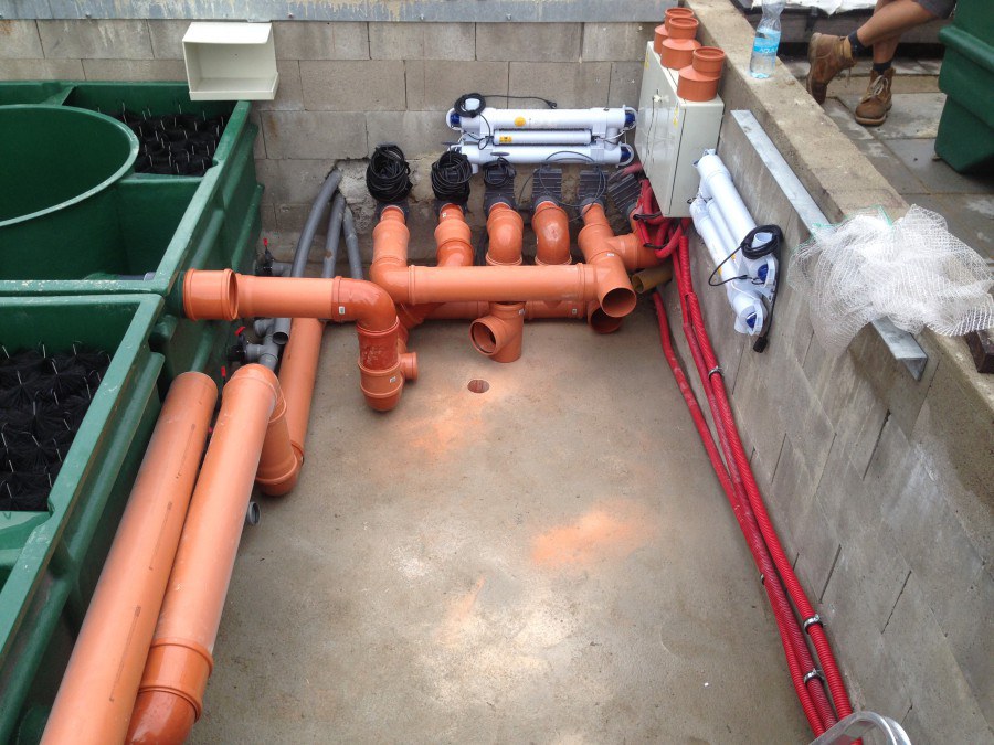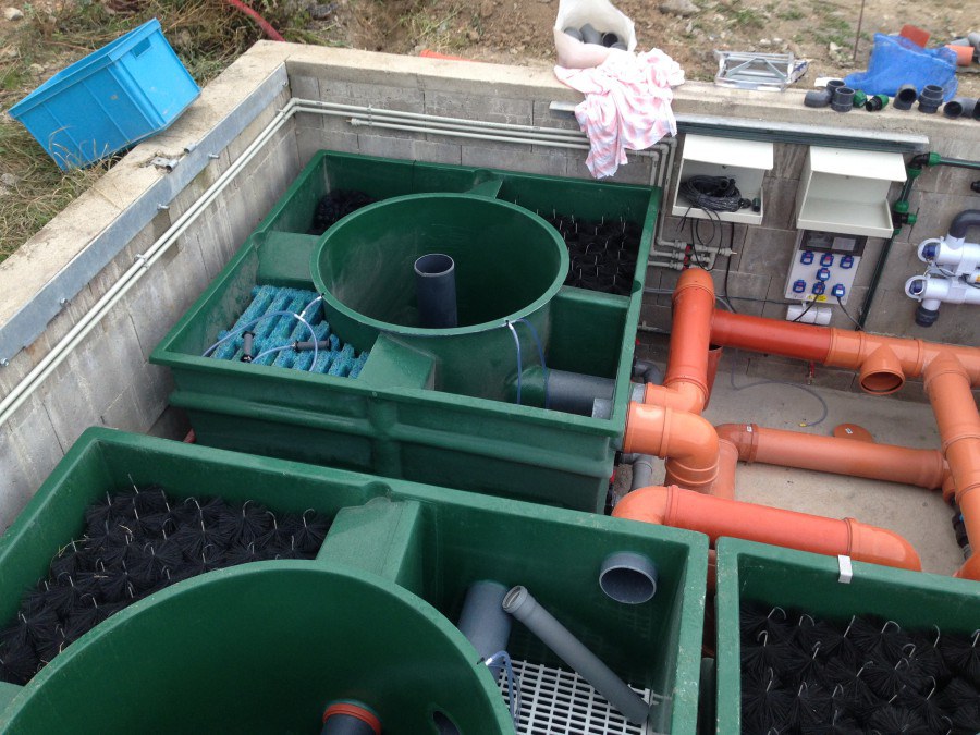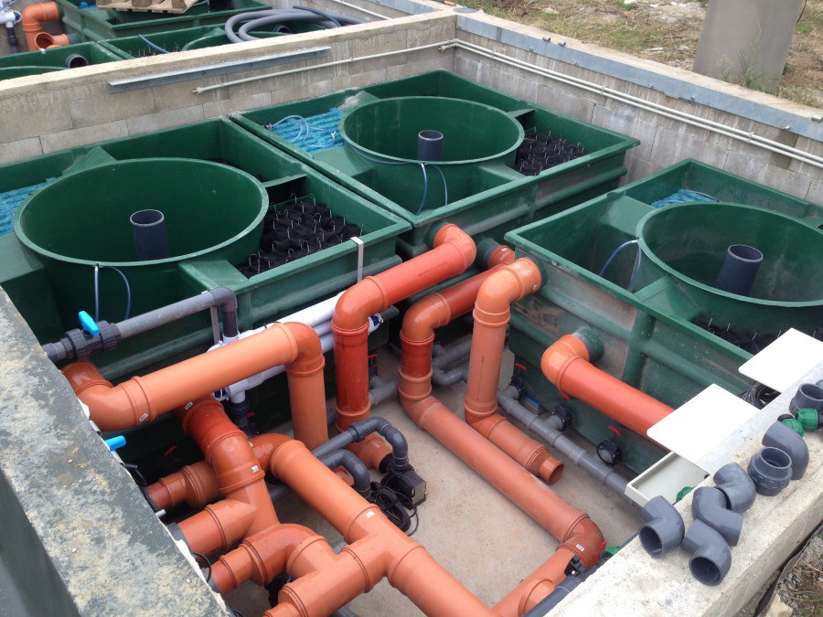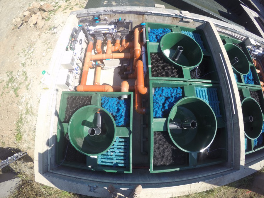 Po nezbytných úpravách se začalo s pokládkou geotextílie 500g, přiděláním speciální poplastované lišty na uchycení fólie a svařením fólie Fatra Aquaplast 805 1,5 mm. Pro tento systém byla navržena technologie: filtry 4x Tripond Center Vortex C-115 a 2x Tripond Center Vortex C-80, čerpadla 4x Oase AquaMax Eco Gravity 20000, 2x Oase AquaMax Eco Premium 16000, 2x regulátor výkonu Messner, 6x UV lampa TMC Pro Clear Advantage 110W, 3x vzduchovací motor Hailea HAP 100, rozvod vzduchu v PPR, 2x velký elektrický rozvaděč, 4x trubkový skimmer Oase Aquaskim Gravity a 4x vzduchovací gula.