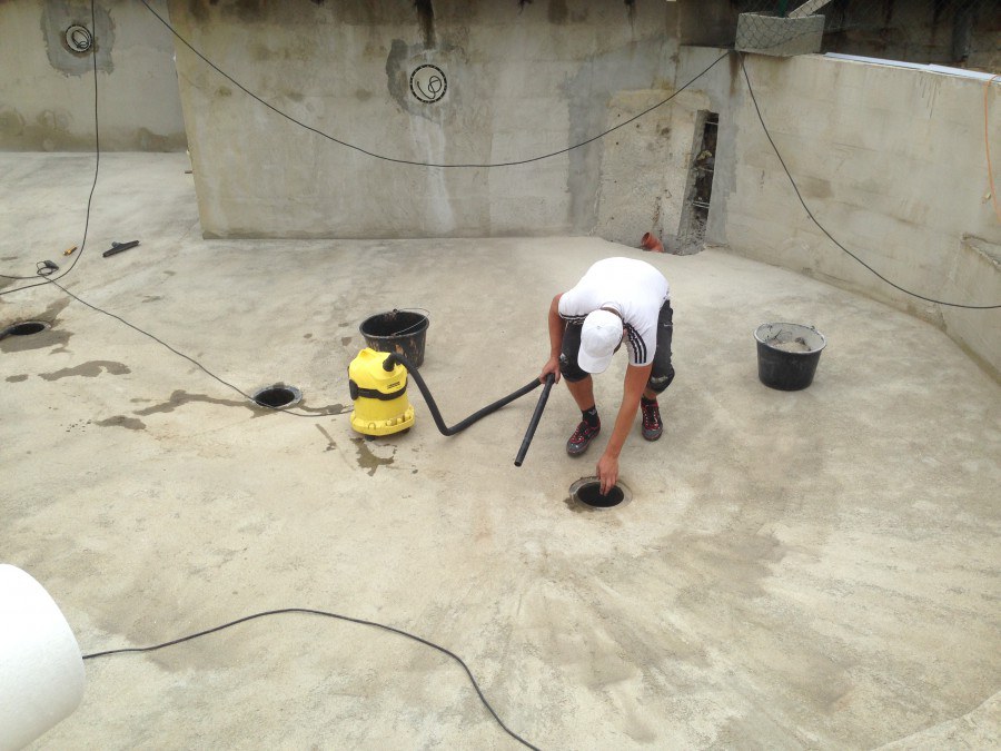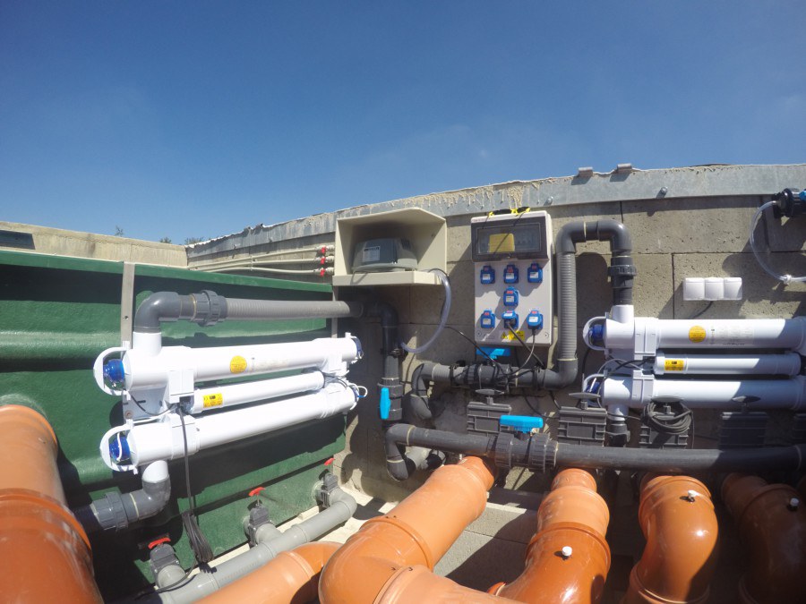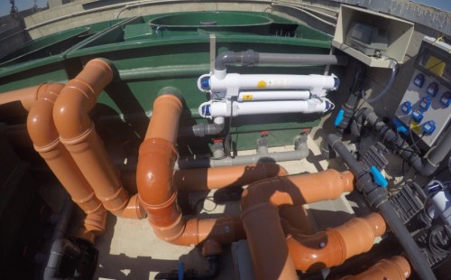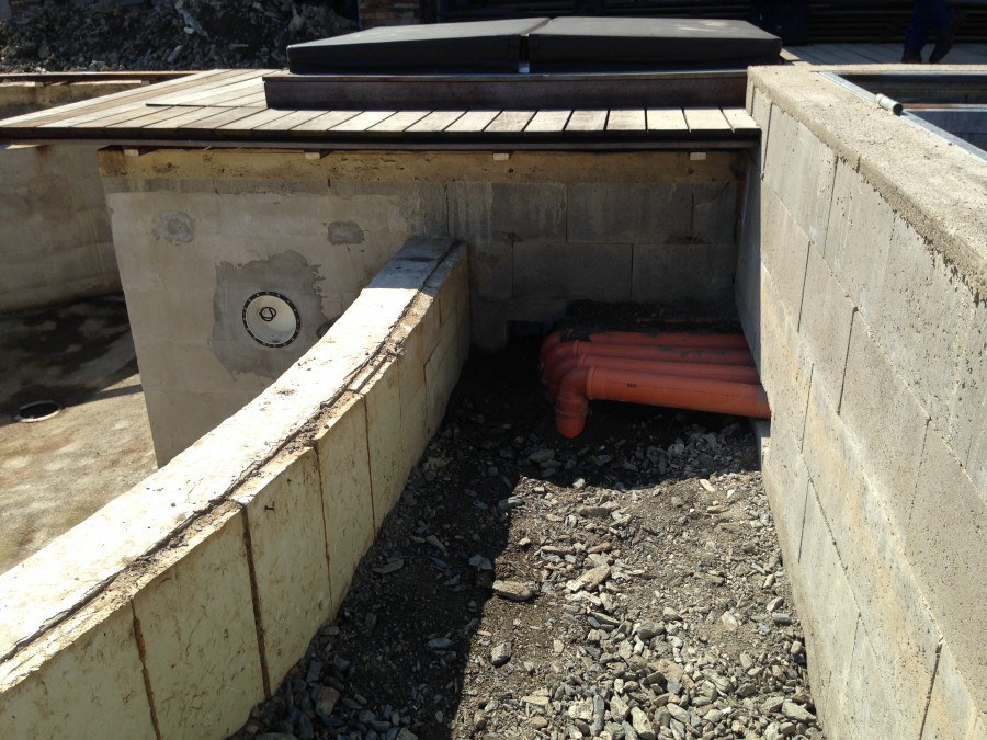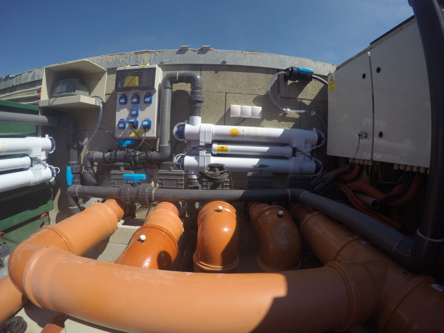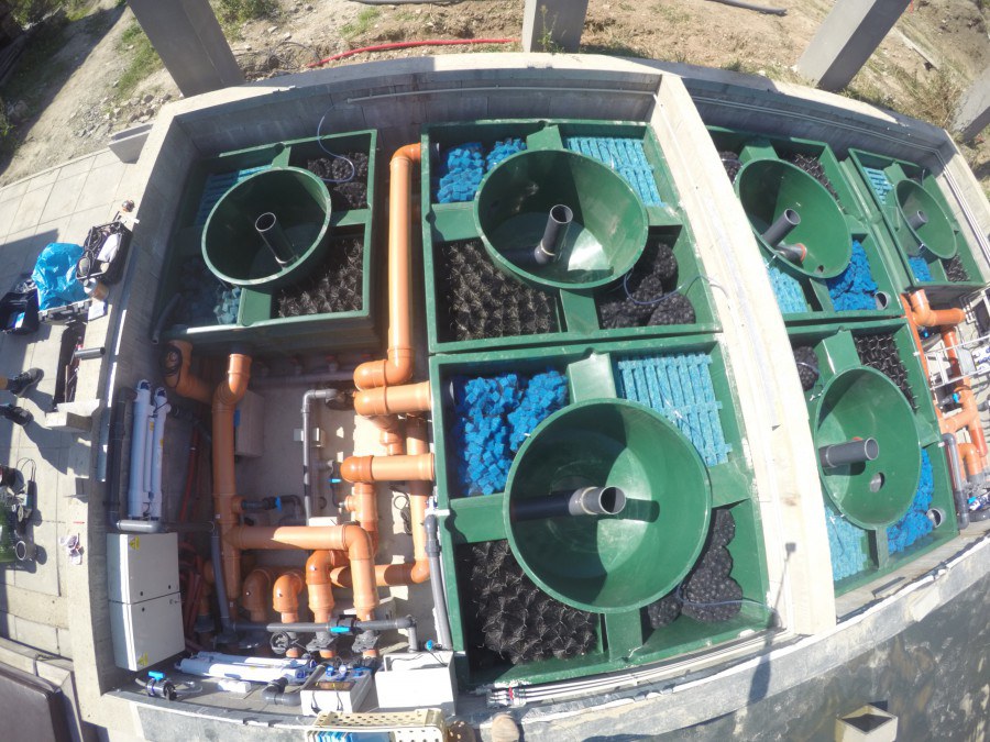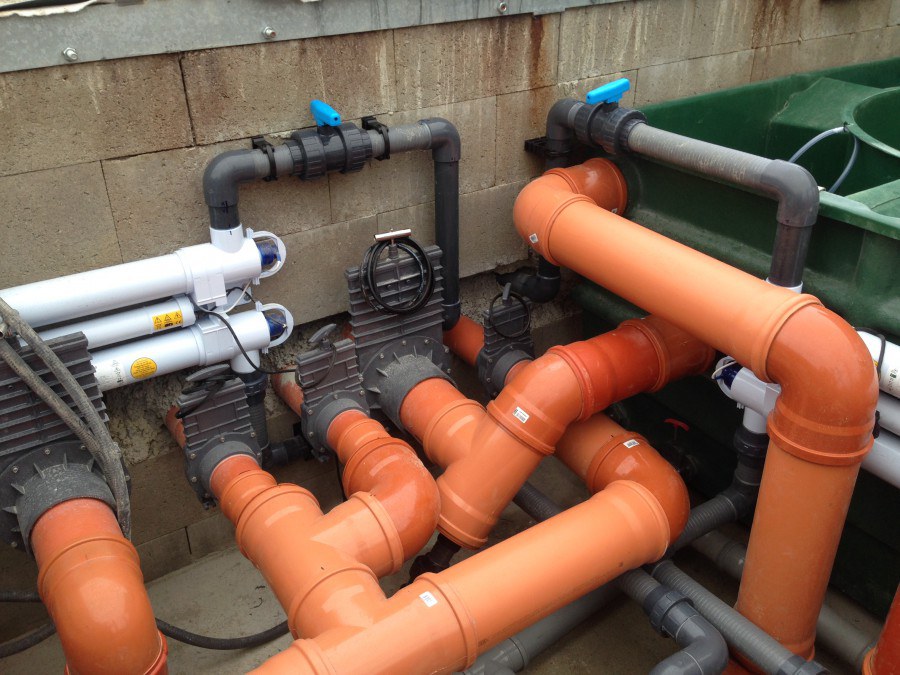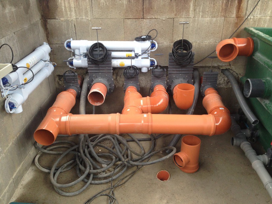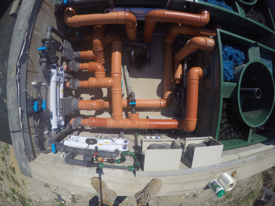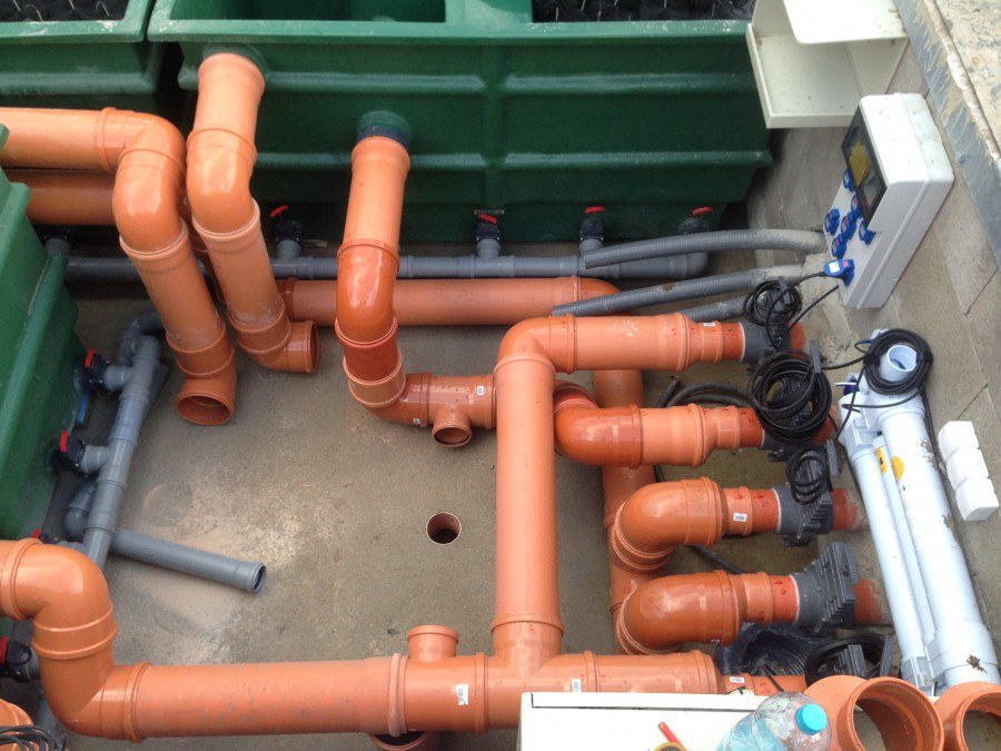 Po nezbytných úpravách se začalo s pokládkou geotextílie 500g, přiděláním speciální poplastované lišty na uchycení fólie a svařením fólie Fatra Aquaplast 805 1,5 mm. Pro tento systém byla navržena technologie: filtry 4x Tripond Center Vortex C-115 a 2x Tripond Center Vortex C-80, čerpadla 4x Oase AquaMax Eco Gravity 20000, 2x Oase AquaMax Eco Premium 16000, 2x regulátor výkonu Messner, 6x UV lampa TMC Pro Clear Advantage 110W, 3x vzduchovací motor Hailea HAP 100, rozvod vzduchu v PPR, 2x velký elektrický rozvaděč, 4x trubkový skimmer Oase Aquaskim Gravity a 4x vzduchovací gula.
