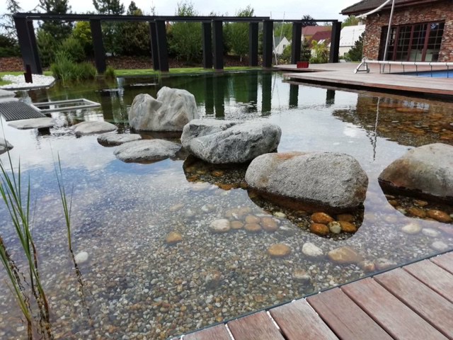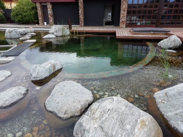 Obrátil se na nás klient s prosbou o pomoc s doděláním již rozestavěného jezírka. Jedná se o velké jezírko, které se skládá ze dvou částí a mělčin o celkovém objemu 276 m3. Po předchozích nemilých zkušenostech s předešlými firmami, byl klient nadmíru spokojen z přístupu naší firmy. Po schůzce na místě realizace, byla jako vždy zpracována cenová nabídka. Bohužel původní technologie nebyla správně nadimenzovaná, a proto byla již hotová technická místnost nedostačující. I přestože je situace s přebíráním již započaté realizace téměř vždy komplikovaná, nebáli jsme se této výzvy a neobrátili jsme se ke klientovi zády. Bylo provedeno několik potřebných úprav: u technické místnosti se snižovala podlaha, musely se vytvořit nové prostupy, předělávaly se příruby na skimmery, upravoval se odpad......