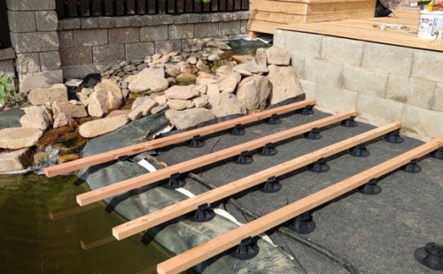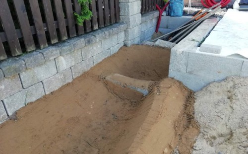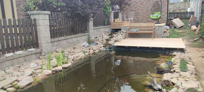Dokončení jezírka jako je pokládka kamenů, osázení květinami si klienti již udělali sami.