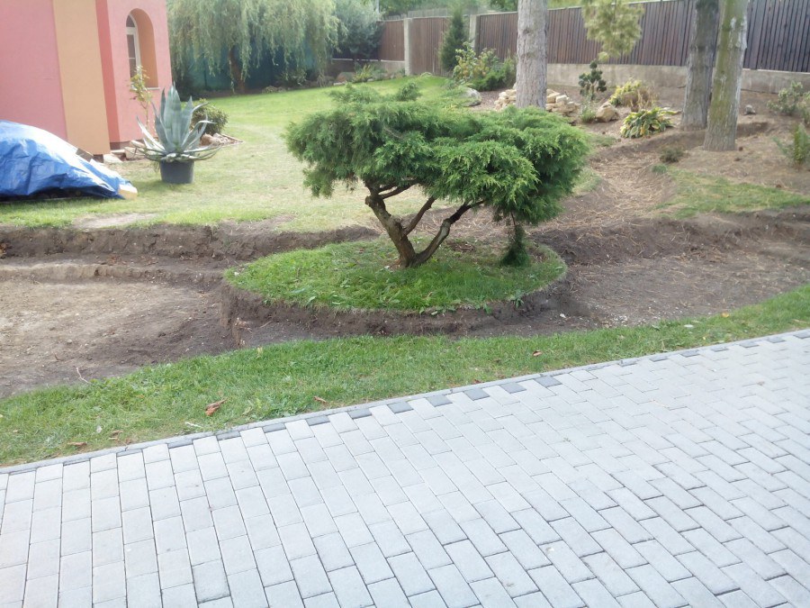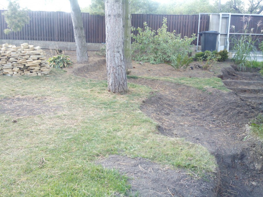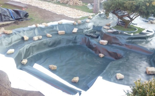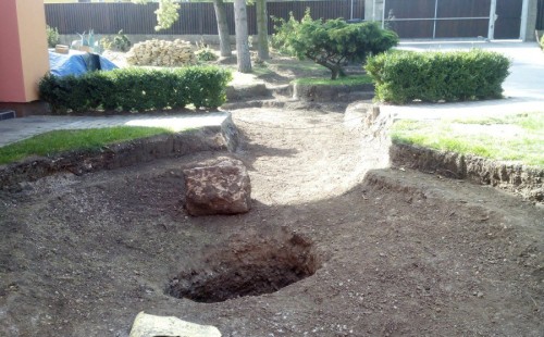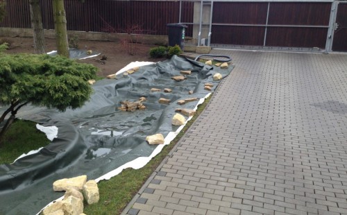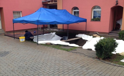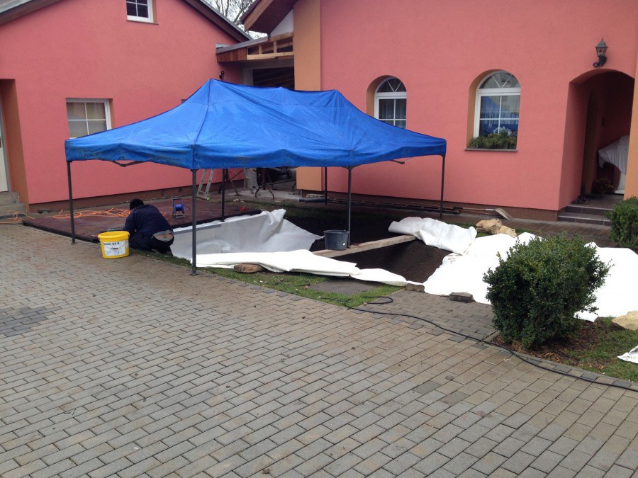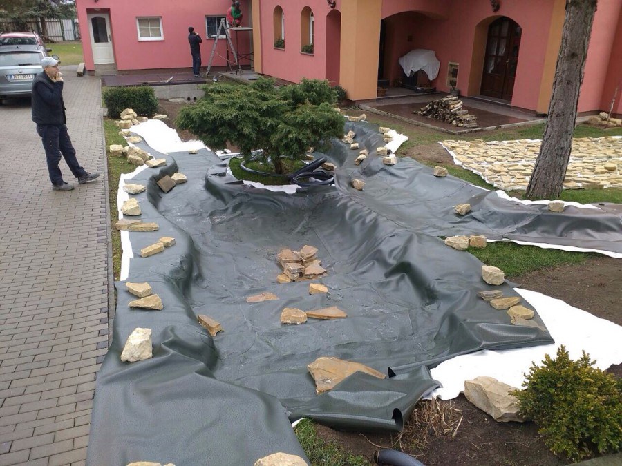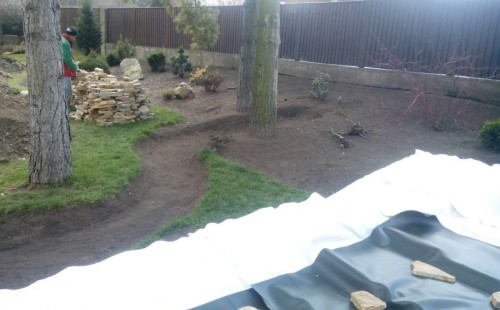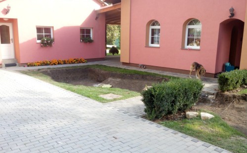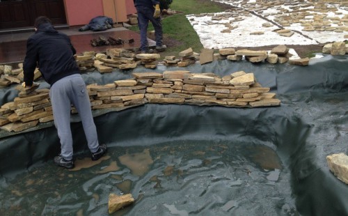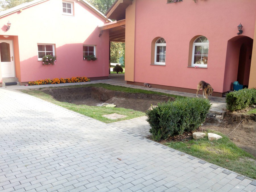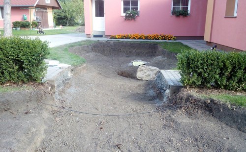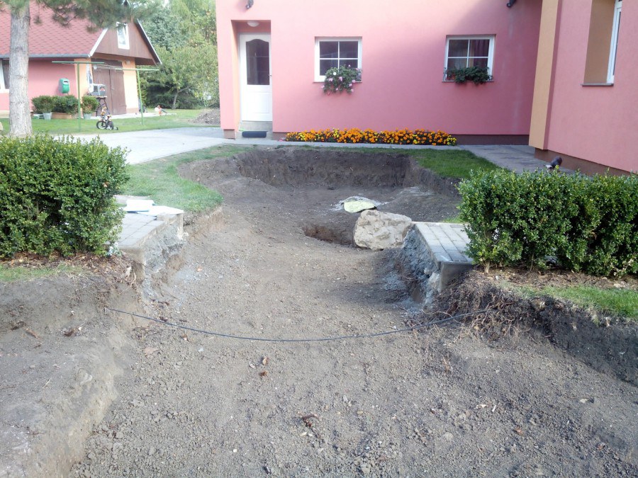 Stavba okrasného jezírka v Lahošti